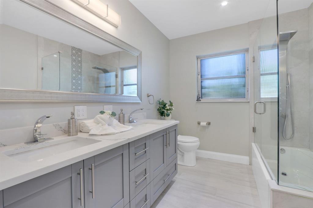 Beautifully renovated from top to bottom. Quality designer touches that reflect from the moment you walk in the door. Large spacious living room as well as Family room and open dining area. A kitchen that the gourmet chef will be right at home in. Both baths have high end touches with European shower and fixtures. The large corner lot gives way for room for a side pool and enhanced outdoor living. This is one you don't want to miss. Just a five minute walk to the intracoastal and positioned in the path of City Place and high end dining destinations. Close to both I95 for commute and Palm Beach airport.