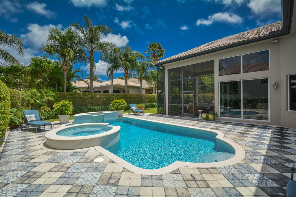 This charming 4 Bedroom single level home has vaulted ceilings and dark hardwood floors in all main living areas. A foyer opens to a great room with views of the pool, patio and a tropically landscaped backyard. The updated kitchen is an absolute chef's dream complete with 6 burner gas stove, double wall oven, with custom built cabinets to display china, black soap stone countertops, Carrera marble back splash and walls, opening up to the family room. A flowing floor plan features a full dining room off the entry great room area, leading to the spacious kitchen, dining area and family room. A screen enclosed covered patio overlooks the pool, patio and circular spa. more...