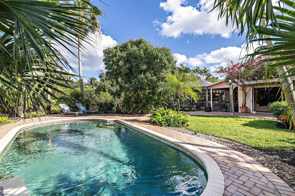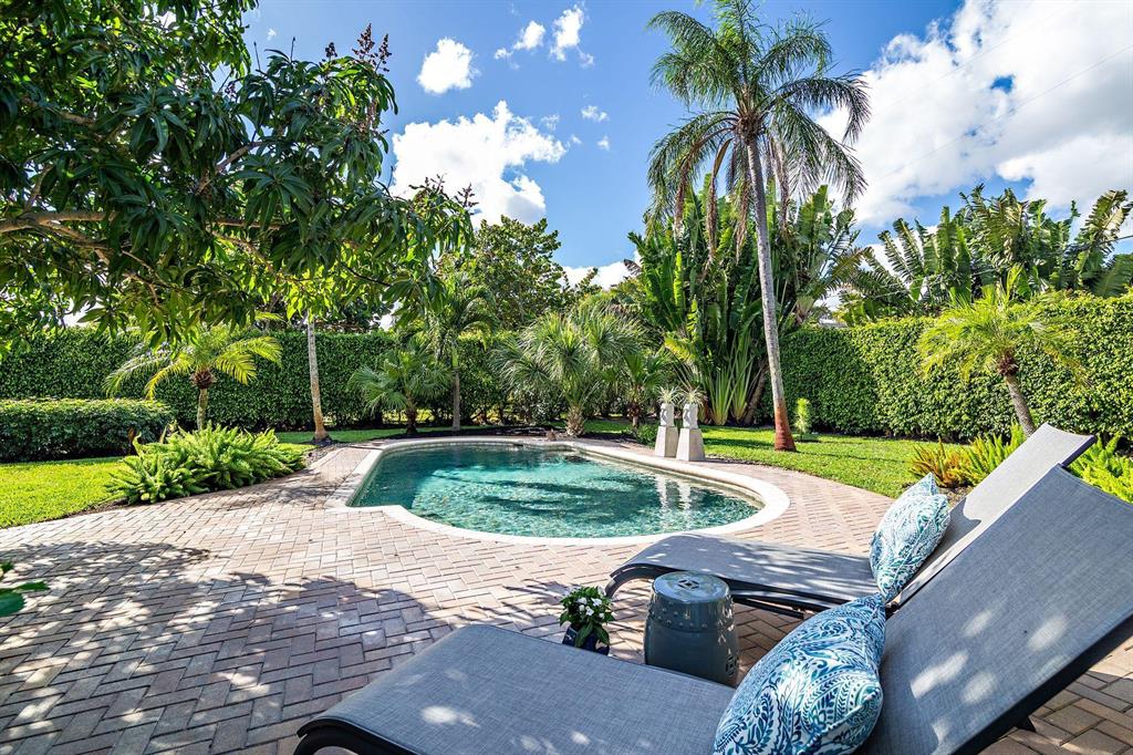 Southend street leading to the only sandy beach on South Flagler Dr. Beautiful example of true South Florida lifestyle in this 3/2 pool home situated on rare 13,350 sq. ft. estate sized lot. French doors throughout opening to private pool, patios & tropical gardens. Indoor/outdoor lines blurred in this open floor plan spilling out to the outdoor living & entertaining areas. Spacious & bright interiors with private guest quarters enjoying direct access from the pool to private cabana bath. Custom kitchen with double ovens, stainless steel appliances, spacious granite counters, center island & abundant solid wood cabinetry. Luxurious master suite with generous walk-in closet and spa bath. Priced for quick sale.Open Saturday 2-5 & Sunday 1-4. All offers will be reviewed by seller on Monday.