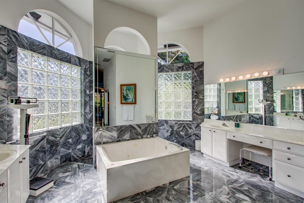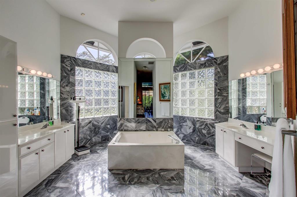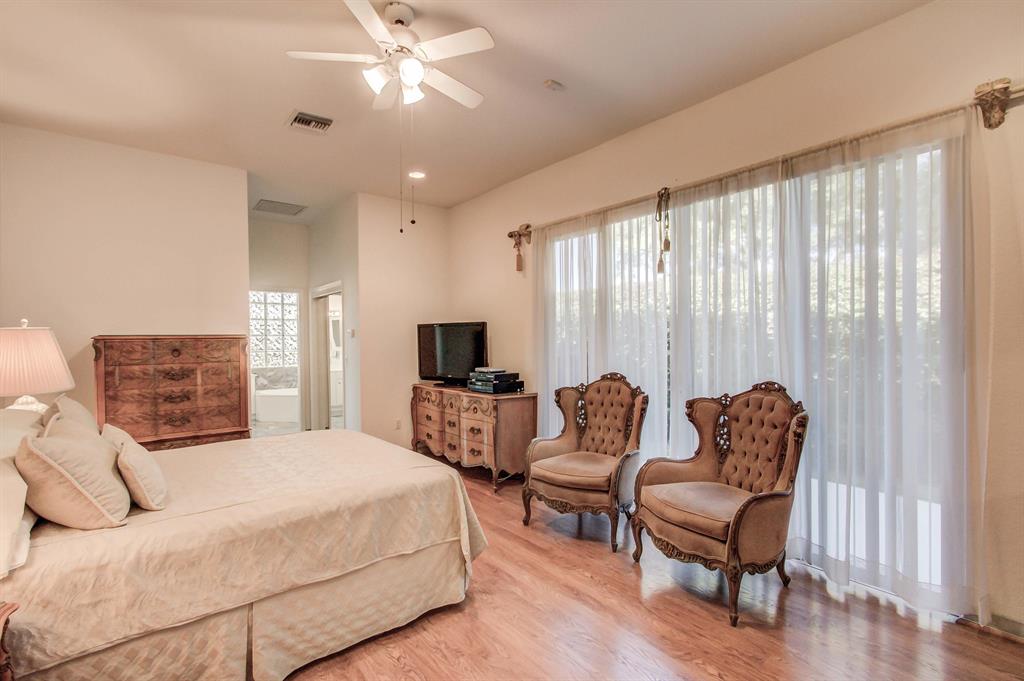 Amazing ''Parkside'' subdivision home boasts a fabulous floor plan with two master suites and two family or guest suites, plus a den / fifth bedroom off the welcoming foyer. The five Bathrooms include 2 Master Baths that features marble, glass block and Jacuzzi tub. A Gourmet delight with Kitchen that features high gloss white cabinetry, granite counters, marble back splash, wonderful large Pantry for storage and opens to Family Room and Breakfast area. 12 foot ceilings in most areas. Three Car Garage with an Attic storage space. Large Screened in Patio with new age material for easy cleaning. Three A/C zones plus a security system. ''Parkside'' amenities include 24/7 Guard Gate, Tennis Courts, Club House, Basketball, plus Playground. Low HOA. No membership fee. Easy to show.