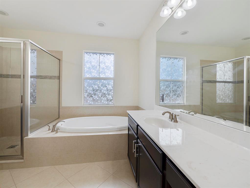 Being sold by original owners and in almost new construction condition! This charming lakeside, 4 bedroom, 3 bathroom home, with a 2 car garage is located in the gated community of PortoSol. Minto's Palm Beach Sydney model boasts a beautiful open layout, showcasing a neutral canvas and wall to wall, west facing lake views. Perfect for watching sunsets! The first floor features tile flooring on a diagonal, a family room, dining room, 1 bedroom, a full bath, and a modern kitchen with stainless steel appliances, wood cabinets, granite counter tops, recessed lighting and a breakfast area. Upstairs, the bedrooms are carpeted and the spacious master suite offers a huge walk in closet and a master bath with a sink/vanity combo, a shower and a relaxing tub. The second floor is also