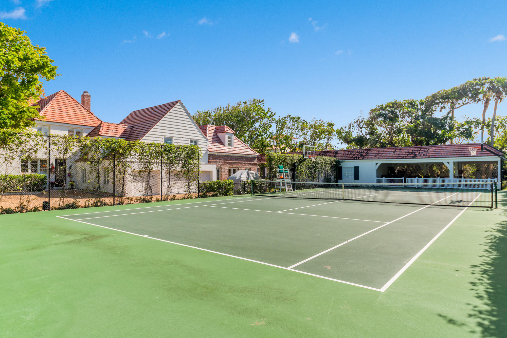 Location, location, location on one of Palm Beach's sought after ''EL street'' estate ocean blocks, close to shopping, between the bridges, airport! A contemporary-meets-traditional spectacular renovation to this John Volk Tudor-style distinguishes itself amongst the great society architect's work. It is a special sanctuary facing south on an oversized lot (1.33 acres). It boasts a 2/1 guest house with living room and kitchen, plus a pool house with two cabana baths. Beautiful outdoor spaces with heated pool and tennis court. A true value opportunity!
