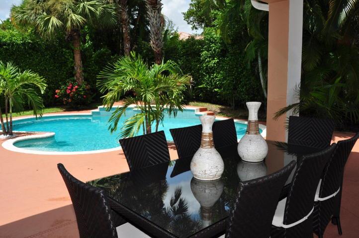 BEAUTIFULLY REMODELED & PRICED TO SELL! This lovely two-story of 5 BD + bonus room,4 1/2 baths designed in transitional style is light & spacious offering volume ceilings; newer main A/C; light wood floors in the living areas & bedrooms, Saturnia marble in the baths; renovated kitchen with white cabinets, granite counters, marble backsplash, stainless steel appliances & a charming breakfast nook; remodeled Master & secondary baths with marble & glass; laundry room with new cabinets, washer & dryer; French doors; custom closet design; freshly painted walls; central vacuum & water filtration systems; and a tropically landscaped private yard with a covered lanai,open patio with freeform pool & a grassy side yard. Can be purchased turnkey including furnishings & decor at an additional cost.