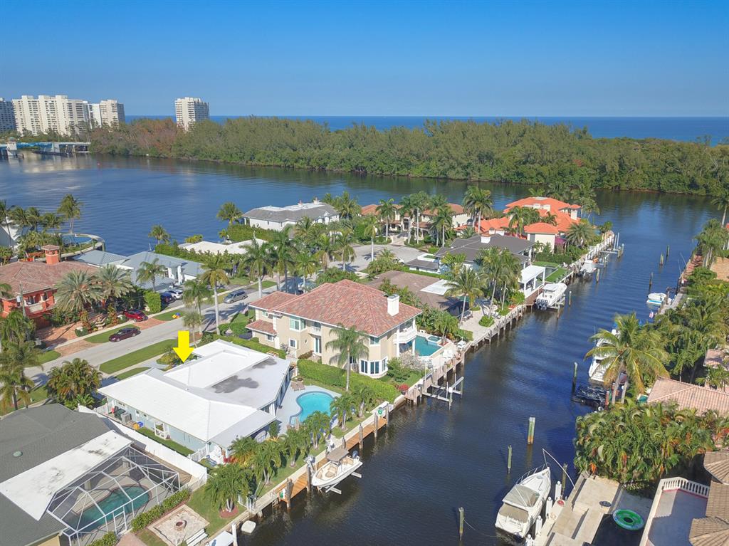 Bring your 80 FT Yacht and walk to the beach from this no fixed bridge deepwater estate with south facing in the rear just a few houses in from intracoastal.