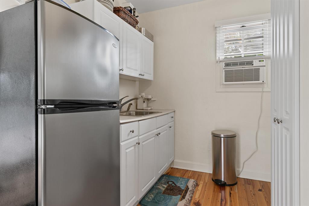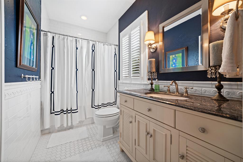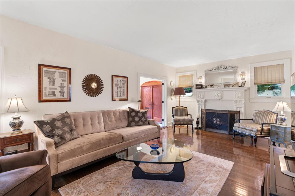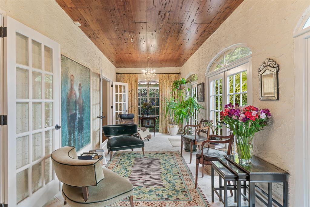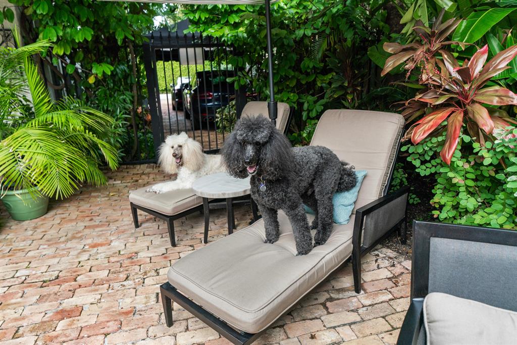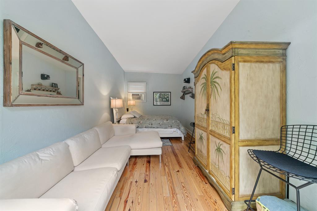 Stunning Mediterranean style home on the Intracostal block. The main house has 3 bedrooms and 2.5 baths with a separate 1 bedroom 1 bath guest house. This Contributing Belair Historic District home has beautiful architectural details arched doorways, fireplace, hardwood floors, high ceilings, beautiful wooded front door. Heated pool and spa that gets very good sunlight with lush mature landscaping. A large dog run at rear of property with Astroturf surrounding the deck. The property is in pristine condition with a large open living area and a beautiful entry room looking out to the hedged courtyard in front. There is a covered carport with a Chicago brick driveway entrance.