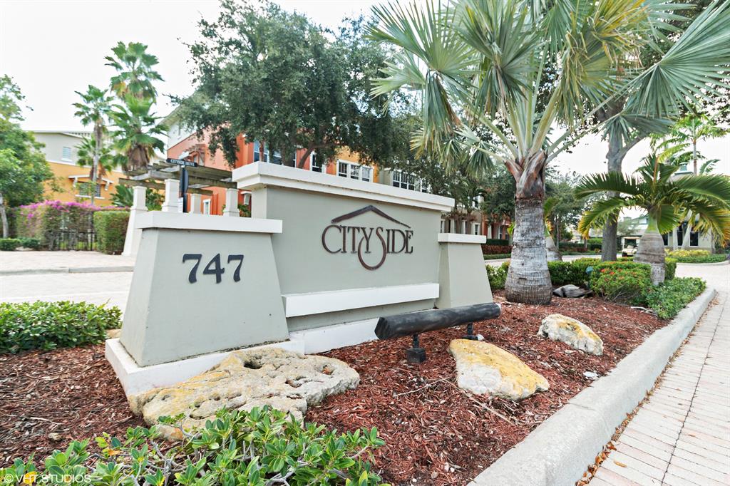 Cityside offers resort-style living with lakefront heated pool, upscale clubhouse w/full size catering kitchen, patio grill, 24 state of the art fitness center, movie theater, dance room, private locker rooms 1.7 mile running track & more. This gorgeous gated community is located close to City Place, outlet mall, Target & excellent restaurants. HOA fee includes: HD cable TV/internet, water, sewer, pest control, on-site property manager, 24 hour security & exterior maintenance. Tons of amenities in this gated community. Freshly painted throughout the interior, including garage, plus new carpet in bedrooms & on stairs. New a/c system in 2017 for both handler & condenser.