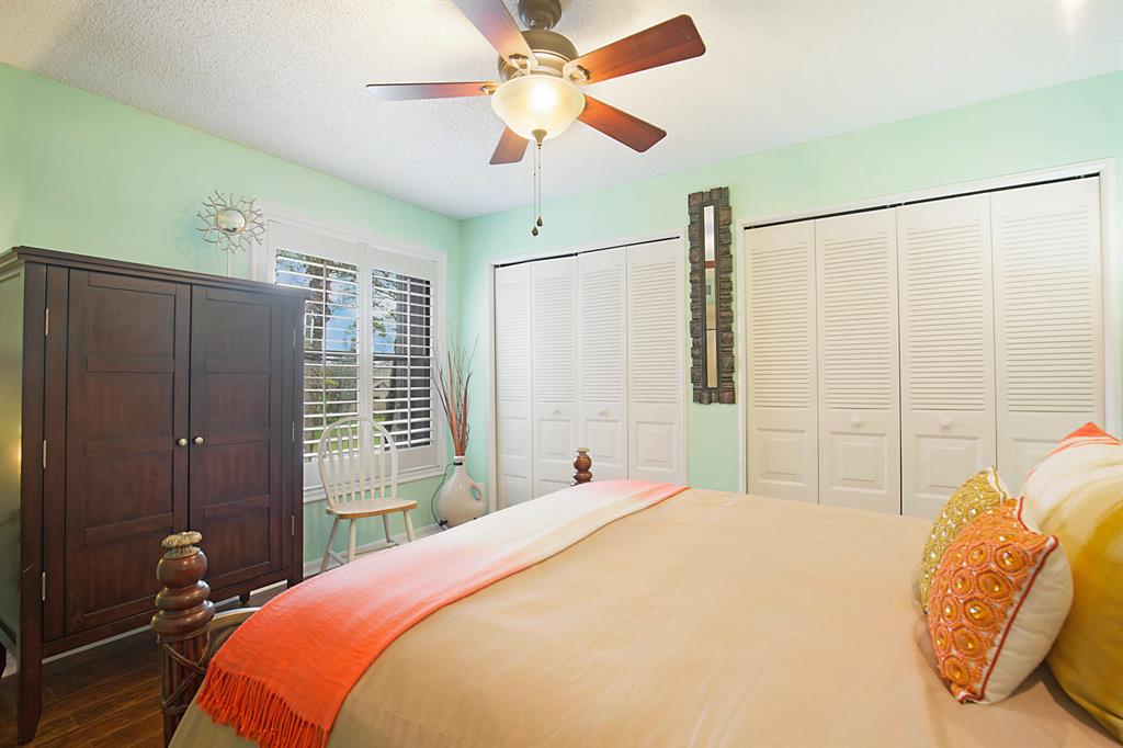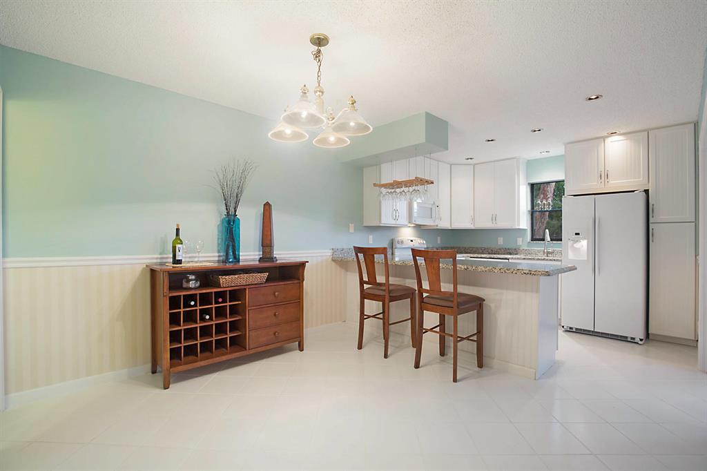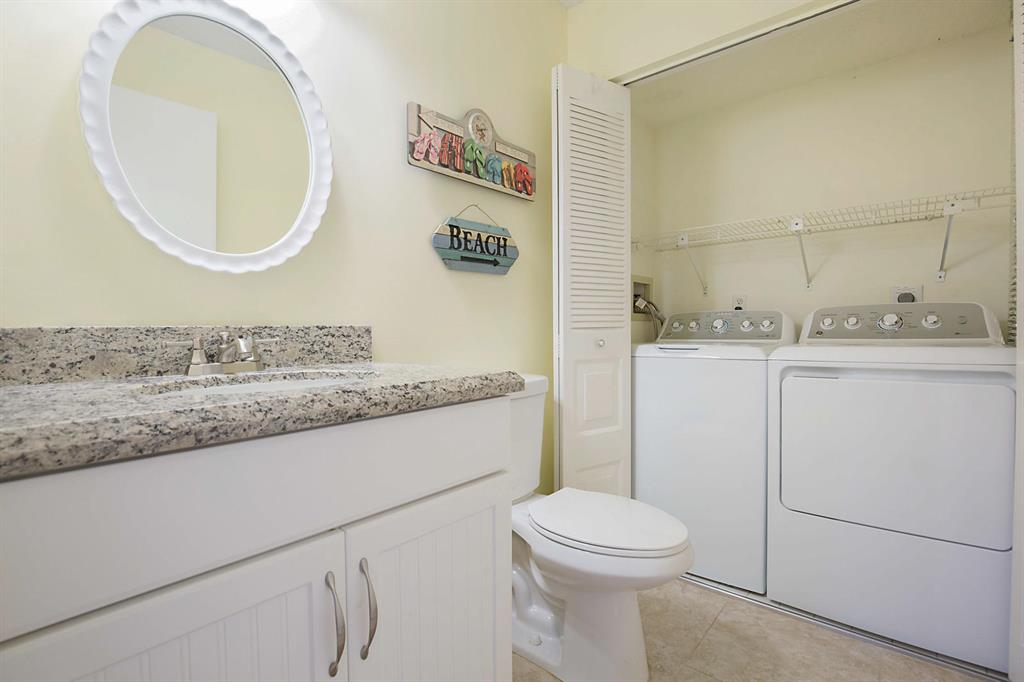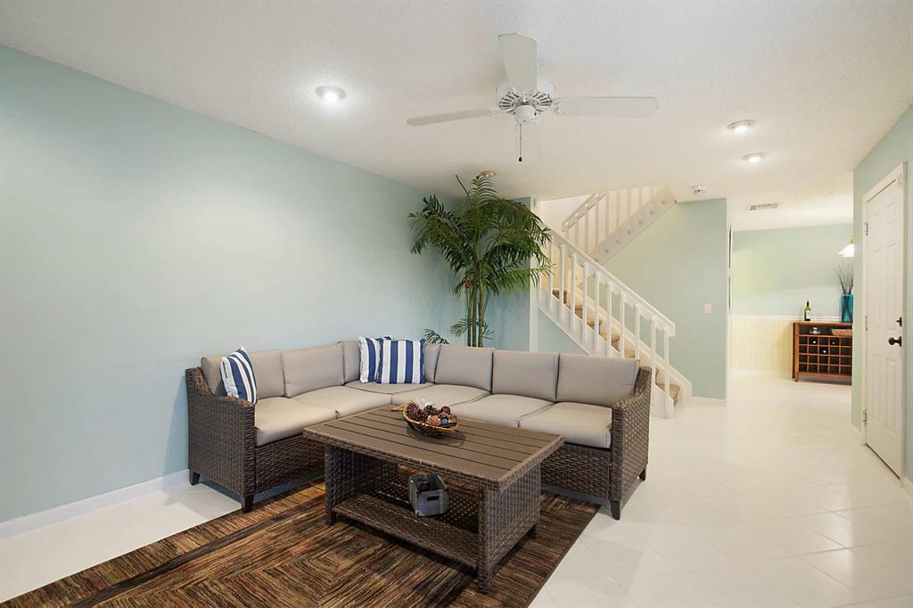 This is the cutest townhouse with a cool Florida 'beachy' feel. Updated kitchen w/white shaker cabinets, granite counters, expanded breakfast bar, newer appliances & adjacent dining area. Pretty powder room has been remodeled w/shaker vanity, granite counter, stone look tile, new commode and a FULL size washer & dryer that's only 2 years old.Spacious living room has recessed lighting. Upstairs you'll find all 3 bedrooms w/laminate floors, plantation shutters and two bathrooms. Both bathrooms have been updated w/wood vanities, granite counters, stone look tile, new lights, faucets & seamless enclosures. Oversized, screened, brick paver courtyard patio/porch is perfect for BBQ's & entertaining. Fabulous location with easy walk to elementary school, houses of worship, shopping & restaurants.