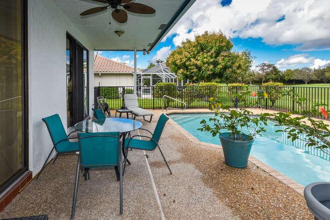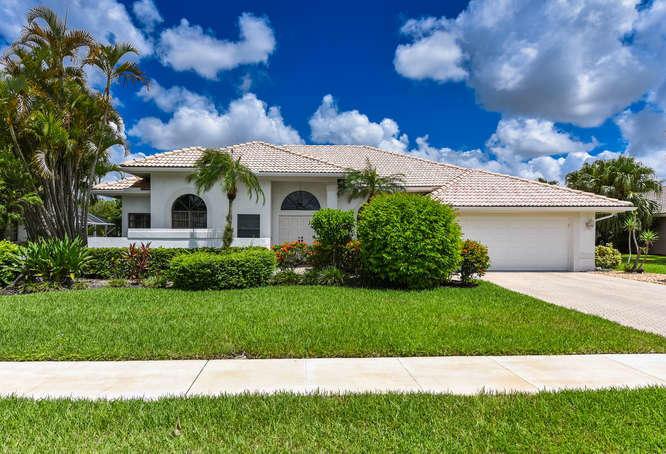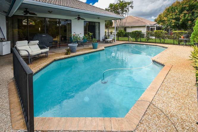 Great pool home in the all-age championship golf course community of Boca Woods. Light and bright with high ceilings. 3 bedrooms and 2 1/2 baths on 0.31 acres, situated on the 8th fairway of the challenging Lakes course. The home has a very large family room in the back of the house. And a 20 x 10 closet!!! Split bedrooms. A/C less than 1 year old. Full country club membership is required; $30,000 equity which is refundable when the home is sold and $35,000 non-refundable initiation fee. A renovation and expansion plan of the club has been approved. The dues are currently $16,053 plus tax per year and and allow you to enjoy 2 fabulous championship golf courses, Har-Tru tennis courts, Cabana Grill, fitness center and fine dining in the clubhouse.