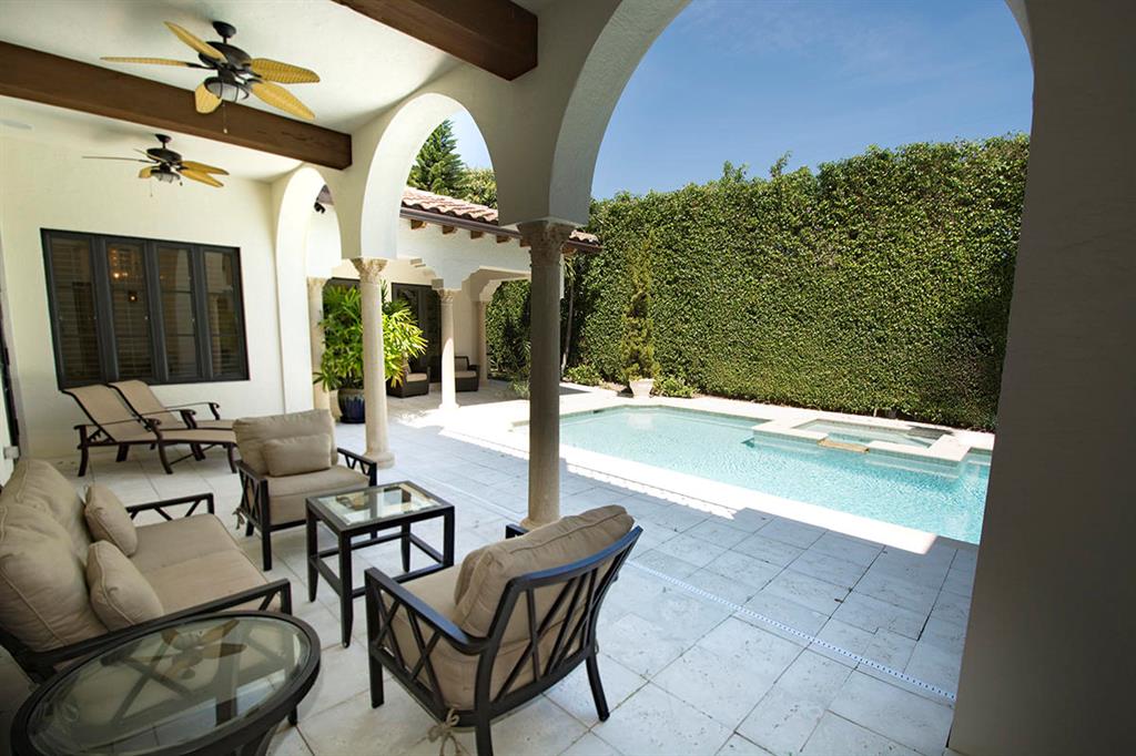 Your private paradise awaits you behind a lush Ficus hedge on this coveted South of Southern lake block of newer constructed homes. Built in 2006 and meticulously maintained, this modern Mediterranean is airy and bright. The grand sized living room features two walls of palladium windows and overlooks a covered loggia with a summer kitchen that borders the lovely private pool and lushly landscaped backyard. A chef's delight, the gourmet kitchen is adjacent to a convenient breakfast area and opens to a wonderful family room. On the ground floor, the decadent master suite opens to the lanai and pool and features a spacious bath with soaking tub, spa shower, and make-up vanity. The 3 upstairs bedrooms all access a huge open balcony perfect for star gazing.