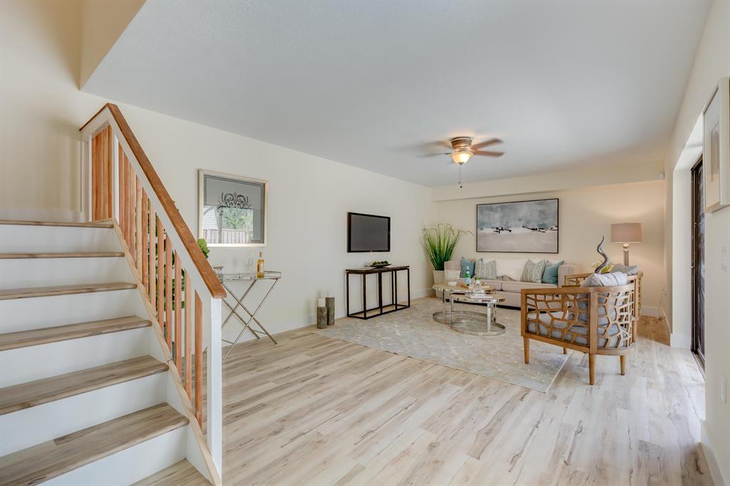 Gorgeous fully renovated townhouse. New flooring, wood shaker cabinets in kitchen with quartz countertops, herringbone backsplash, stainless steel appliances. All bathroom vanities custom built with quartz countertops as well. Bathrooms in all bedrooms. Master bedroom has a walk in closet, bathroom with custom frameless glass shower with subway tile throughout. Accordian hurricane shutters on all sliding glass doors. Community has HOA covers, water & sewer, roof maintenance, fence maintenance & grass. nd all bathroom vanities. Community amenities a pool, park, 8 tennis courts, volleyball and handball court, basketball court and playground.