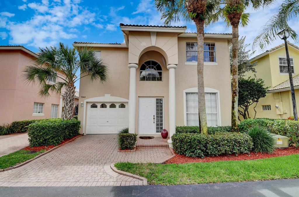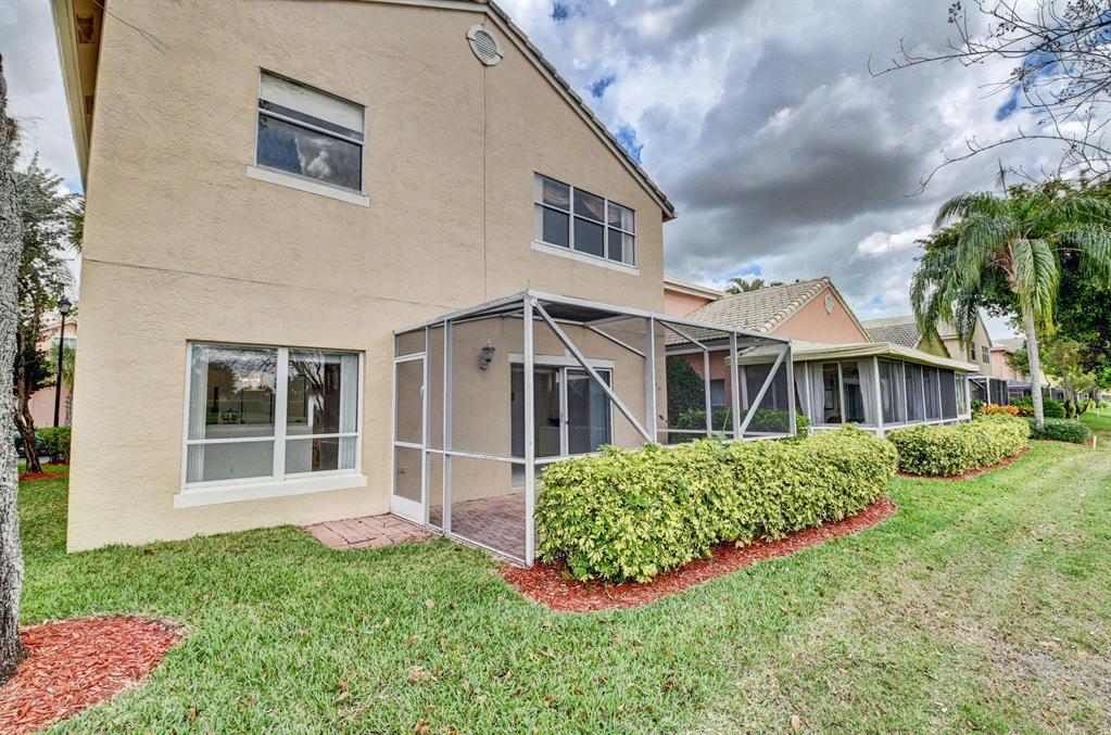 REDUCED TO SELL! Panache at Boca Pointe. A friendly, intimate single family home and guard gated community in a great Boca Location. Priced to sell to a lucky buyer looking for a fantastic layout and Southern exposure. This two story home is on a sought after golf course lot!! No club membership required. 4 large bedrooms upstairs and downstairs are the living room, dining room, separate kitchen open to family room, powder room and laundry room. Master suite has large walk-in closet. Long ONE car garage for storage. AC is 6 months old, hot water heater is 3 years old.LOW HOA fees cover alarm, cable with HBO, landscaping, paint exterior, roof cleaning and patio and driveway sealing.Steps to community pool.