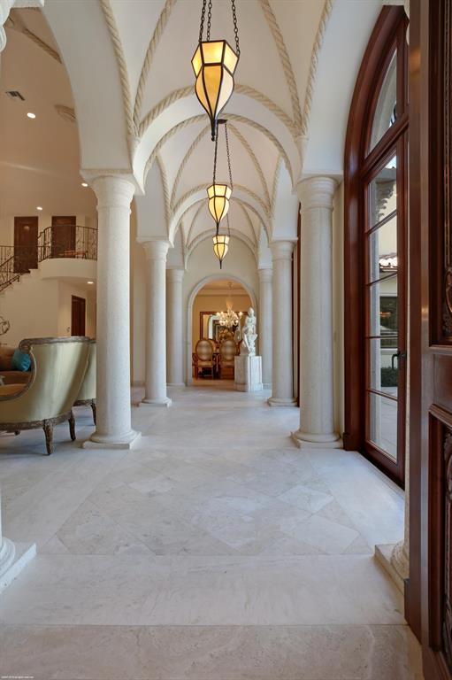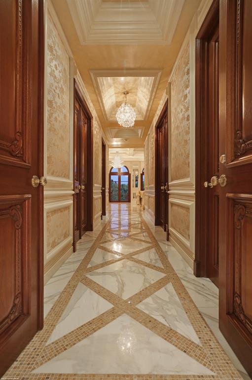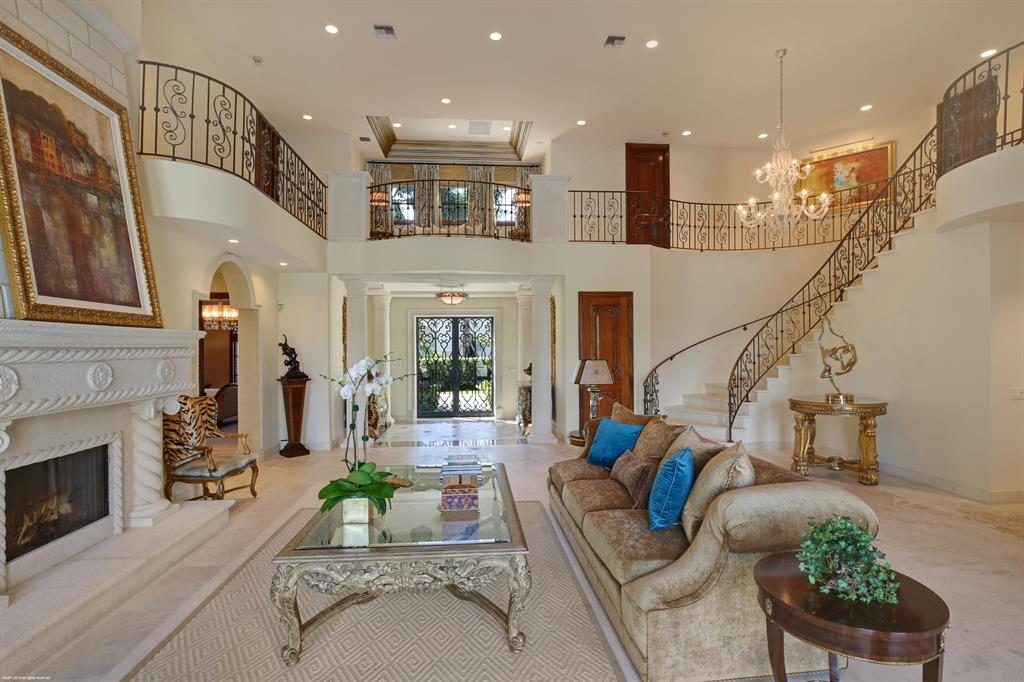 Enjoy the privacy of Everglades Island in this extraordinary 6 bedroom, 8-1/2 bath property with classic elegance and quality craftsmanship. This spacious floor plan with high ceilings, Tischler impact glass French doors, custom fireplace, and beautiful detailed ceilings make this property unique. The peaceful, lushly landscaped backyard overlooks the lake and the golf course making this the perfect setting for relaxing with family or entertaining friends! The large designer kitchen exudes quality with its Viking stainless steel stove, SubZero refrigerator/freezer, beautiful cabinetry and granite center island. Just off the kitchen, is a cozy breakfast area with built in seating for comfort and relaxation while enjoying your morning coffee. A generous sized family room is perfect for