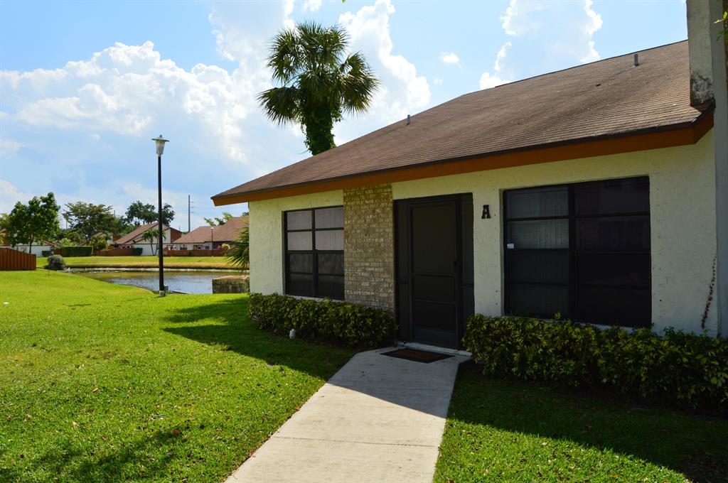 Beautiful move in ready 3 bedroom 2 bath townhouse with vaulted ceilings andspacious living areas. End unit situated on highly desirable cul-de-sac with lake view. Modern kitchen and bathrooms. Tile floor in living areas, engineered wood floor in master bedroom, and 2 additional bedrooms with waterproof flooring. Covered and screened patio with additional fenced backyard. All ages community with low HOA fee of just $135/month which includes clubhouse, tennis court and community pool! Near shopping, Wellington Mall, schools, Okeeheelee Park and major highways. Townhouse is modern, light, and shows beautifully!