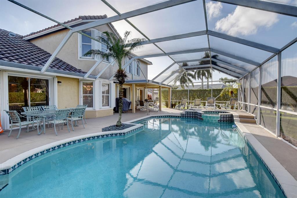 A TRUE GEM! Absolutely beautiful 5 bed, 3 & a half bath, plus office pool home on a huge corner lot in the very sought after Lakes at Boca. The moment you walk in, you will know you found ''the one''. The recent upgrades include marble countertops, 2100 sq ft of travertine marble floors, LG stainless steel appliances, new floors upstairs, a wood burning fireplace and much more. The open floor plan includes a top of the line kitchen with a walk in pantry, eat in kitchen, wet bar, & built in wine cooler. Walk outside to relax at the pool/spa or entertain on your oversized screened in patio with lush new landscaping. Master bed and office downstairs, LED lighting throughout, 2 Carrier ACs, & full accordion shutters. A+ schools, Low HOA, & a great clubhouse.Visit www.LakesatBocaPoolHome.com