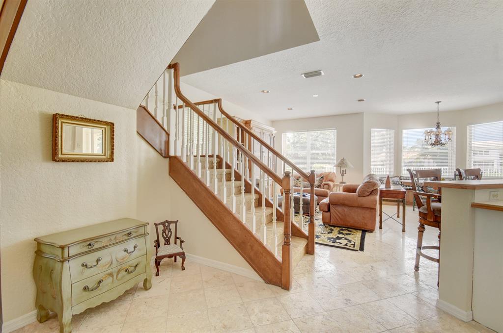 Tropical landscaping surrounds this 5 bed/ 4 bath pool home, situated on an expansive lot in a cul de sac offering privacy and lake views. Double door entry to living room, family room and dining and open kitchen, all overlook patio, pool and lake. There's a generous guest suite and full bath used as cabana bath. 2nd level has a large master suite with tastefully appointed luxury bath, huge closets. 3 more bedrooms and 2 more updated baths as well as open loft/office/den or playroom.This home has its own underground propane tank and full house generator staying on for 4 days.Lake water,very low bill Full house accordion hurricane shutters.TheShores has a resort style club house with pool, tennis, fitness and playground. Manned gated security and zoned for Boca's best school