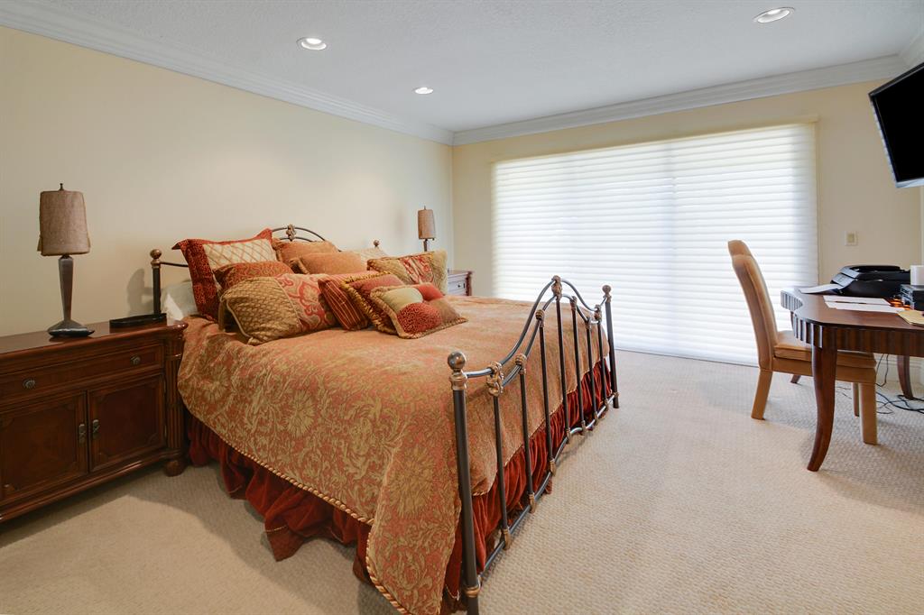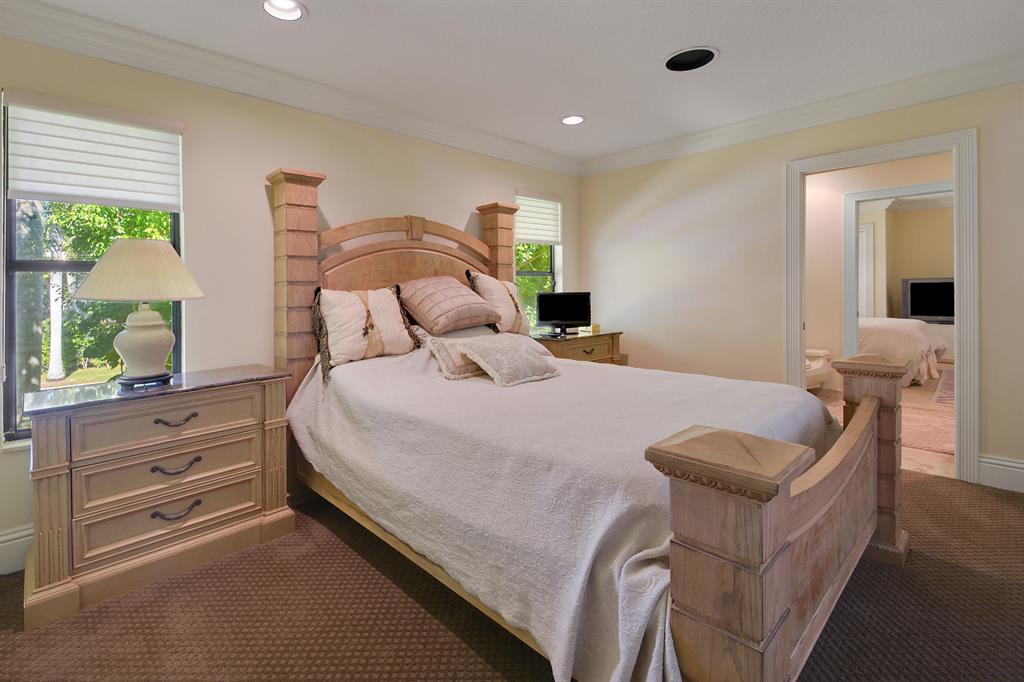 NEW ROOF!! Magnificent 2-story home on an oversized lot with luxurious finishes and architectural details featuring clean lines, volume ceilings, marble floors and French doors. The gourmet kitchen opens to the breakfast area and family room. The main floor master suite features luxurious master bath and 2 large built out walk-in closets. An office/den and ensuite guest bedroom are also located on the main floor. Three additional guest bedrooms are situated on the second floor. The lushly landscaped property features a resort style pool with beautiful lake and golf views. The information herein is deemed reliable and subject to errors, omissions and changes without notice. All measurements are approximate.