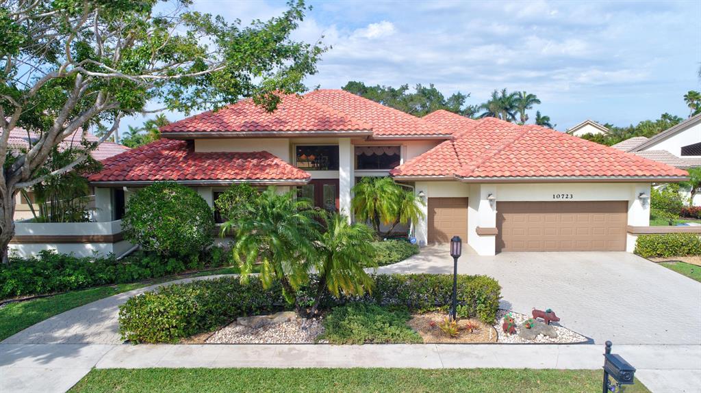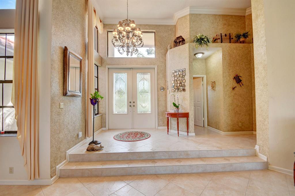 SHORT SALE! MEMBERSHIP AND EQUITY REQUIRED. MINIMUM AMOUNT $55,000 DUE ON OR BEFORE CLOSING...THIS AMOUNT CAN NOT BE FINANCED. Truly unique paradise in Stonebridge Country Club. This updated waterfront home has 3 bedrooms, 3.1 baths, 2 bay garage and golf cart garage (complete with golf cart), decorative circular driveway, tropical mature landscaping, neutral tones, crown molding, volume/cathedral ceilings in main rooms and is light bright and very inviting. Updates include full storm protection (accordion shutters throughout), newer A/C 5 years old, roof (2005), newer hot water heater (1-year old), newer washer and dryer (1-year-old), pool motor 5-6 years old and central vacuum.