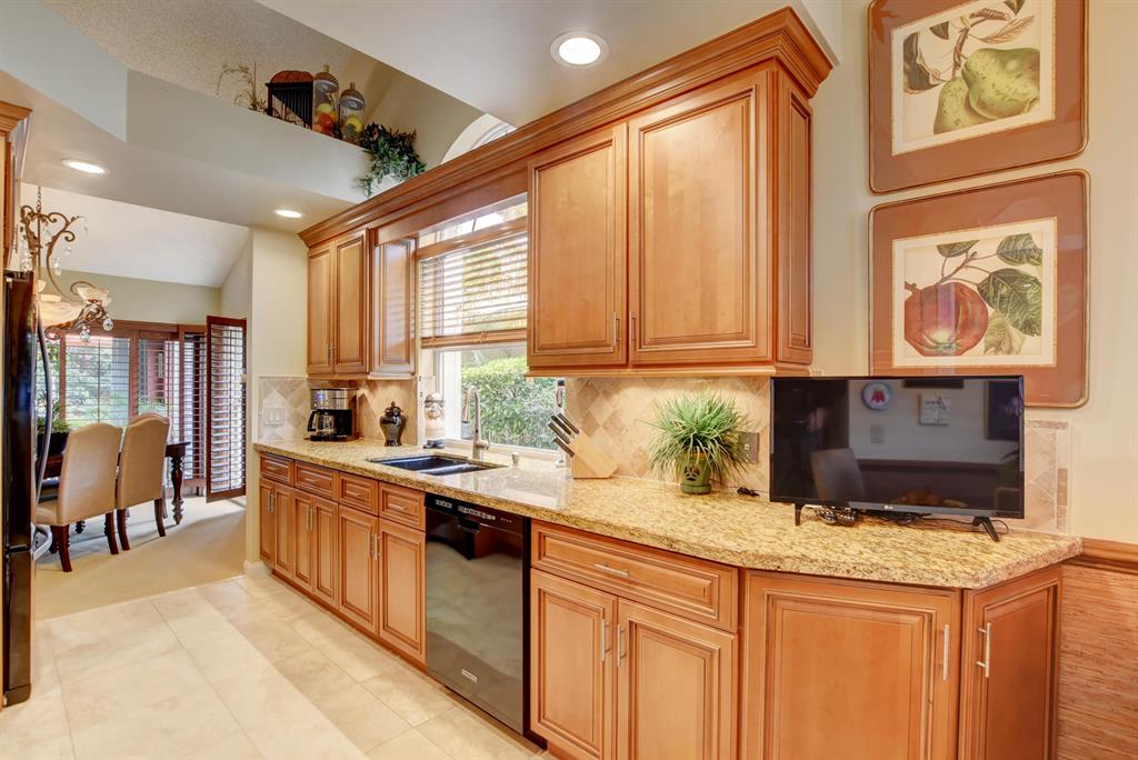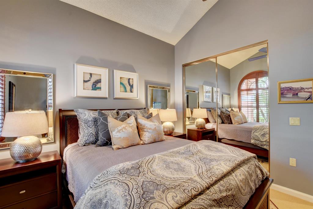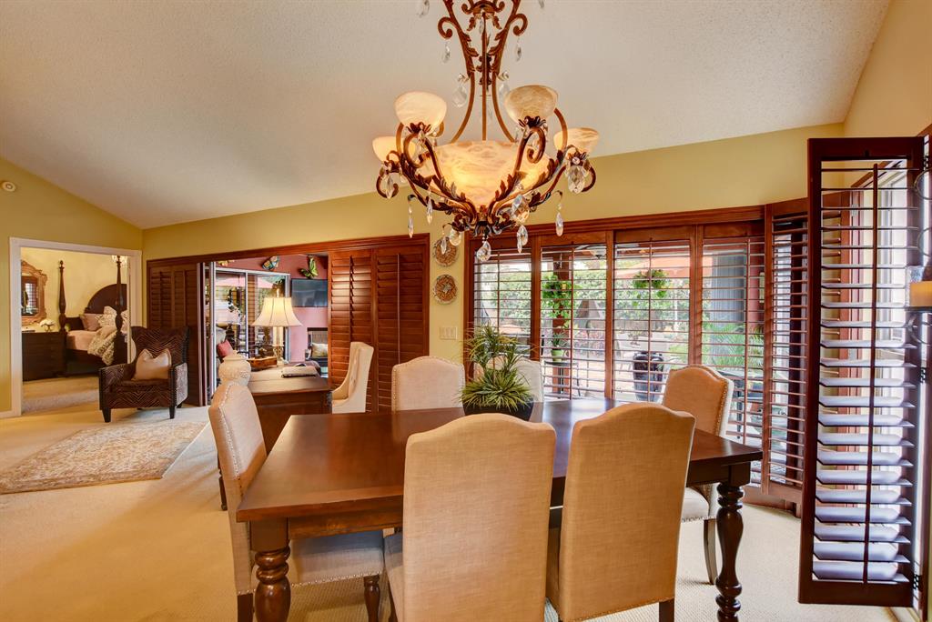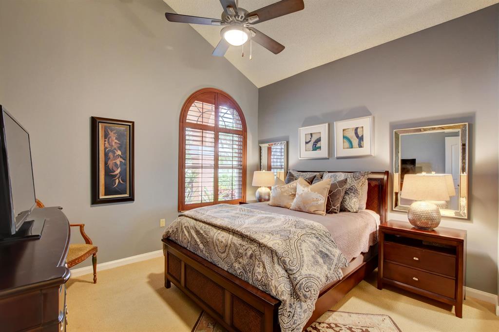 Beautifully designed and renovated home located on desirable and meticulously landscaped lot in gated community of Saratoga Bay!Impressive upon entry, this entire home is adorned with custom wood Plantation shutters, vaulted ceilings, newer fixtures and fans. Lovely and bright open floor plan with separate dining area and generous living/great room with custom built-in bar. Gourmet eat-in kitchen with solid wood cabinets, large refrigerator with French doors, granite countertops and new GE stainless steel induction cooktop. Spacious master suite and master bath has new toilets, dual sinks, separate tub and shower. Guest bath completely renovated with custom vanity, all new light fixtures and mirrors, granite countertops, custom tile work and frameless shower & dual shower heads.
