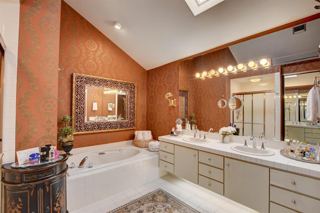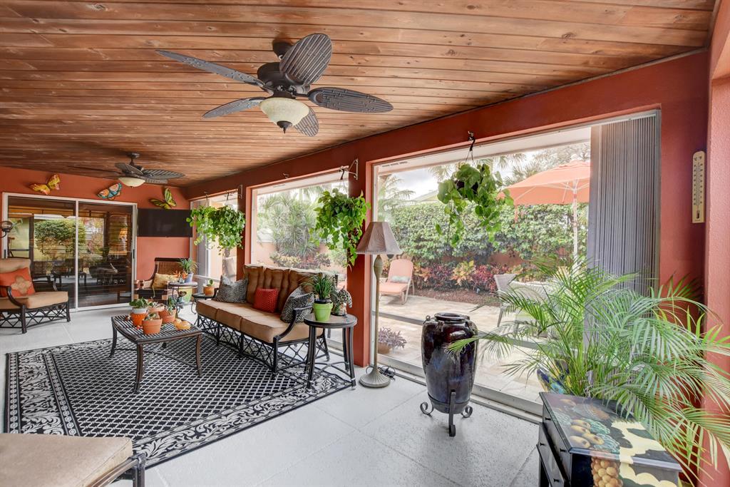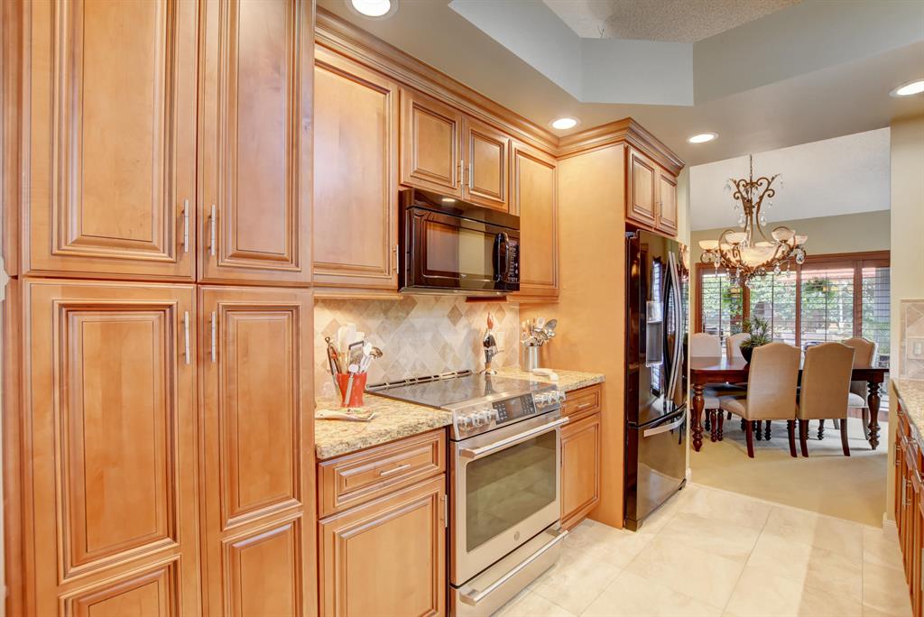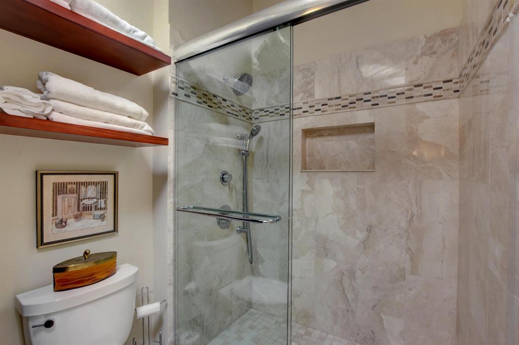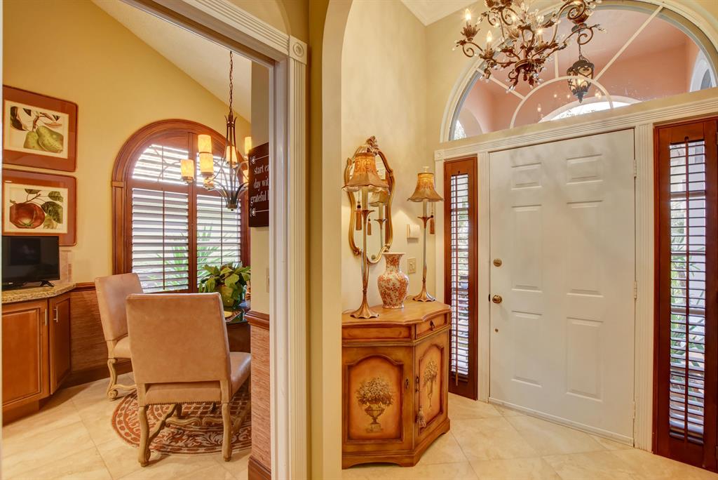 Beautifully designed and renovated home located on desirable and meticulously landscaped lot in gated community of Saratoga Bay!Impressive upon entry, this entire home is adorned with custom wood Plantation shutters, vaulted ceilings, newer fixtures and fans. Lovely and bright open floor plan with separate dining area and generous living/great room with custom built-in bar. Gourmet eat-in kitchen with solid wood cabinets, large refrigerator with French doors, granite countertops and new GE stainless steel induction cooktop. Spacious master suite and master bath has new toilets, dual sinks, separate tub and shower. Guest bath completely renovated with custom vanity, all new light fixtures and mirrors, granite countertops, custom tile work and frameless shower & dual shower heads.