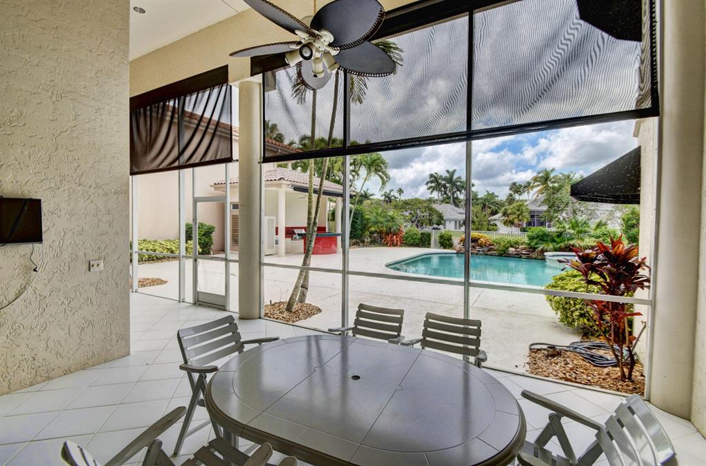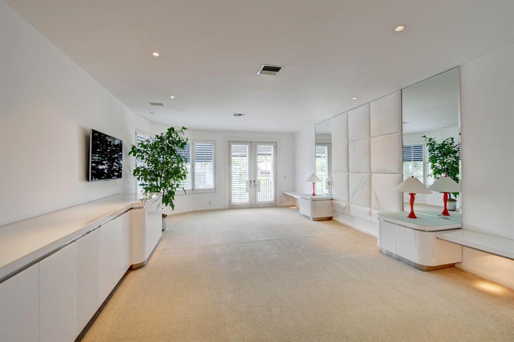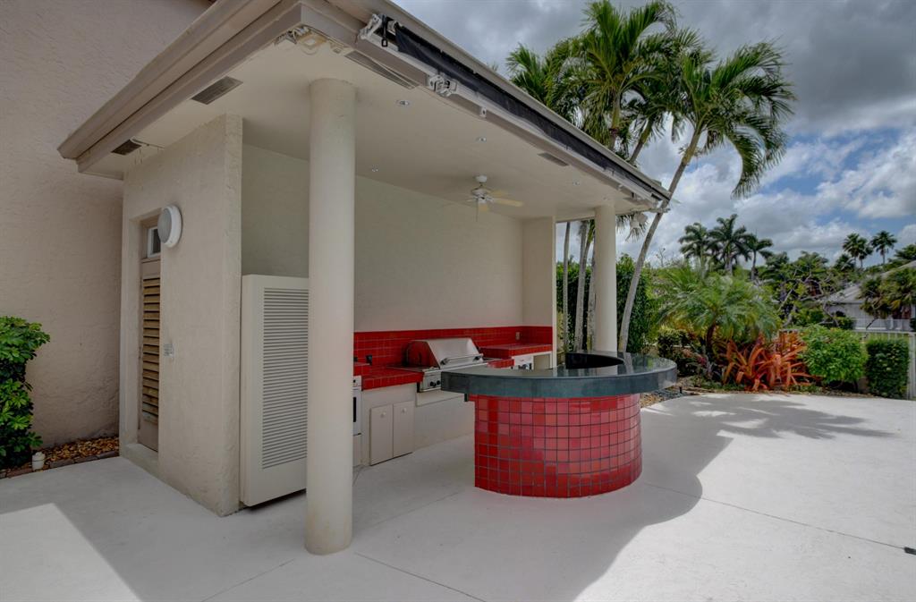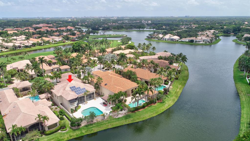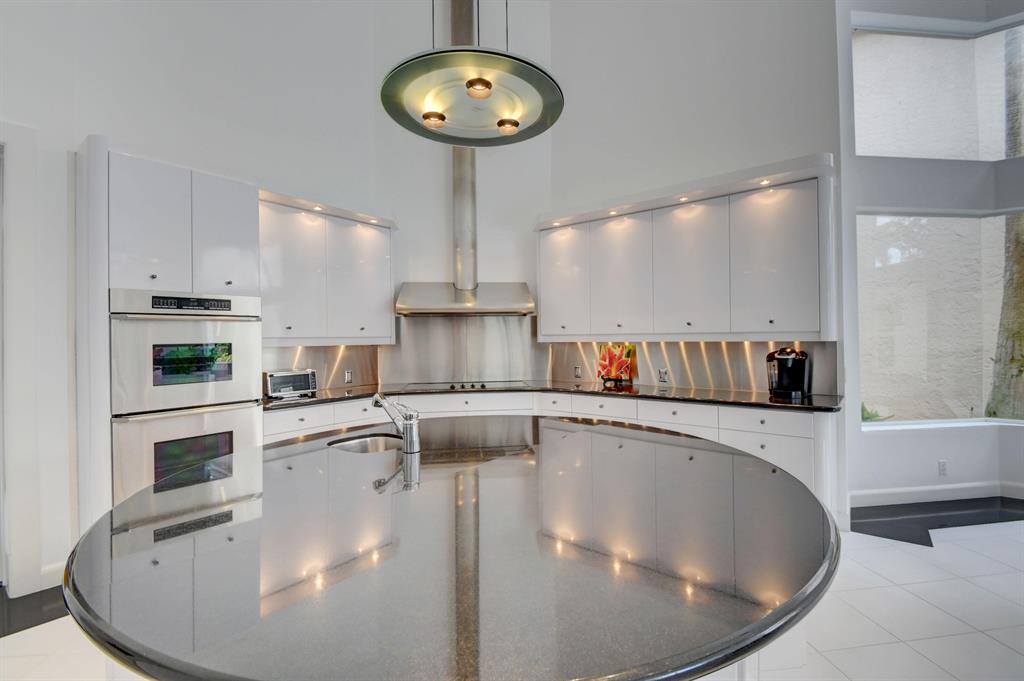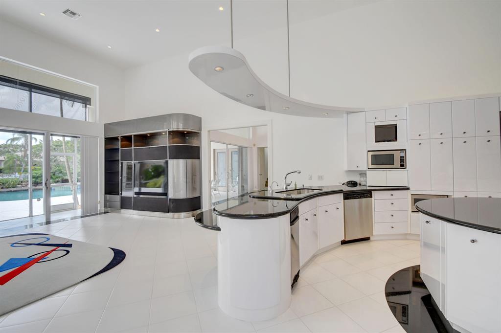 The gorgeous landscaping draws your eye to the immaculate grand foyer. Step on to a cloud of white tile enlightened by tons of natural light. The main entrance offers a full bar, formal dining room, and formal living room. The unique design of the kitchen offers guests a panoramic experience since the kitchen opens up to the family room. Granite countertops, an abundance of storage, and a fabulous breakfast bar make this kitchen ideal for entertaining and intimate meals simultaneously. The master bedroom is part of a master suite including extra large outfitted closets, his and hers bathrooms, a terrace over the pool and lake, an exercise room plus full executive office and bathroom. Guest bedrooms are located on the first and second floor complete with en suite bathrooms and sizable