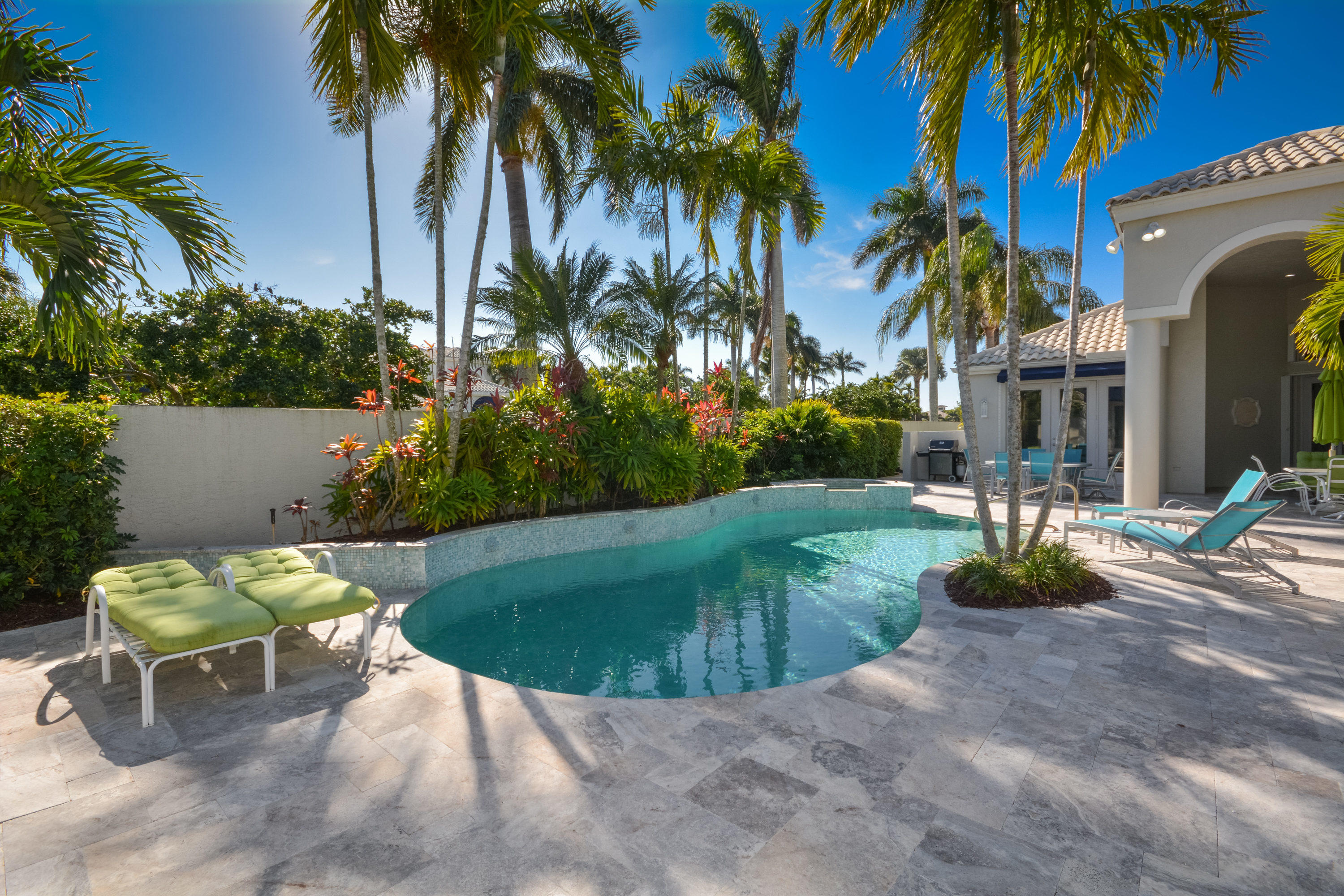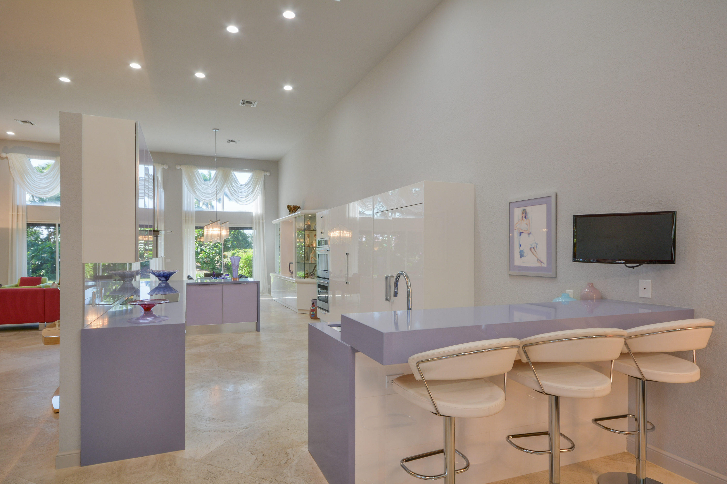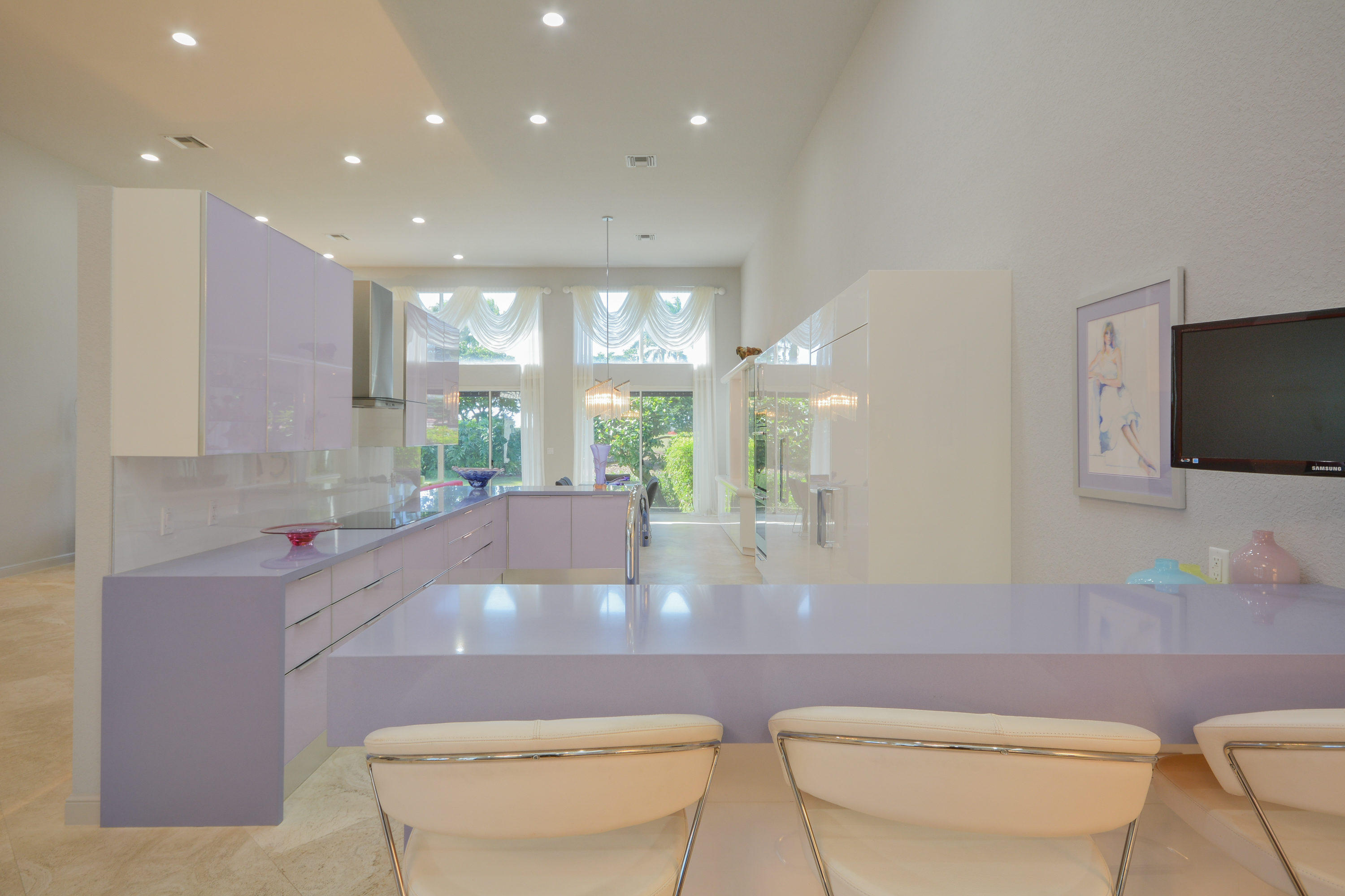 MOTIVATED SELLER!! Move In Ready! Just bring your furniture and tooth brush!! Immaculate and bright 4 bedroom, 4.1 bath contemporary courtyard home situated on a private corner lot with golf course views. This home is a true gem offering a modern Aran Cucine Italian Kitchen with white laquer & lilac glass cabinets, including a huge white laquer Italian coplanari pantry, lavender hue quartz countertops with waterfalls and Porcelanosa tile backsplash. Jenn air top of the line appliances including a double wall oven, induction cooktop, 48'' refrigerator, and Asko dishwasher. This home's living space is completely renovated, with an open floor plan in the great room, kitchen, dining room, and family room. Full house hurricane accordion shutters and a natural gas generator.