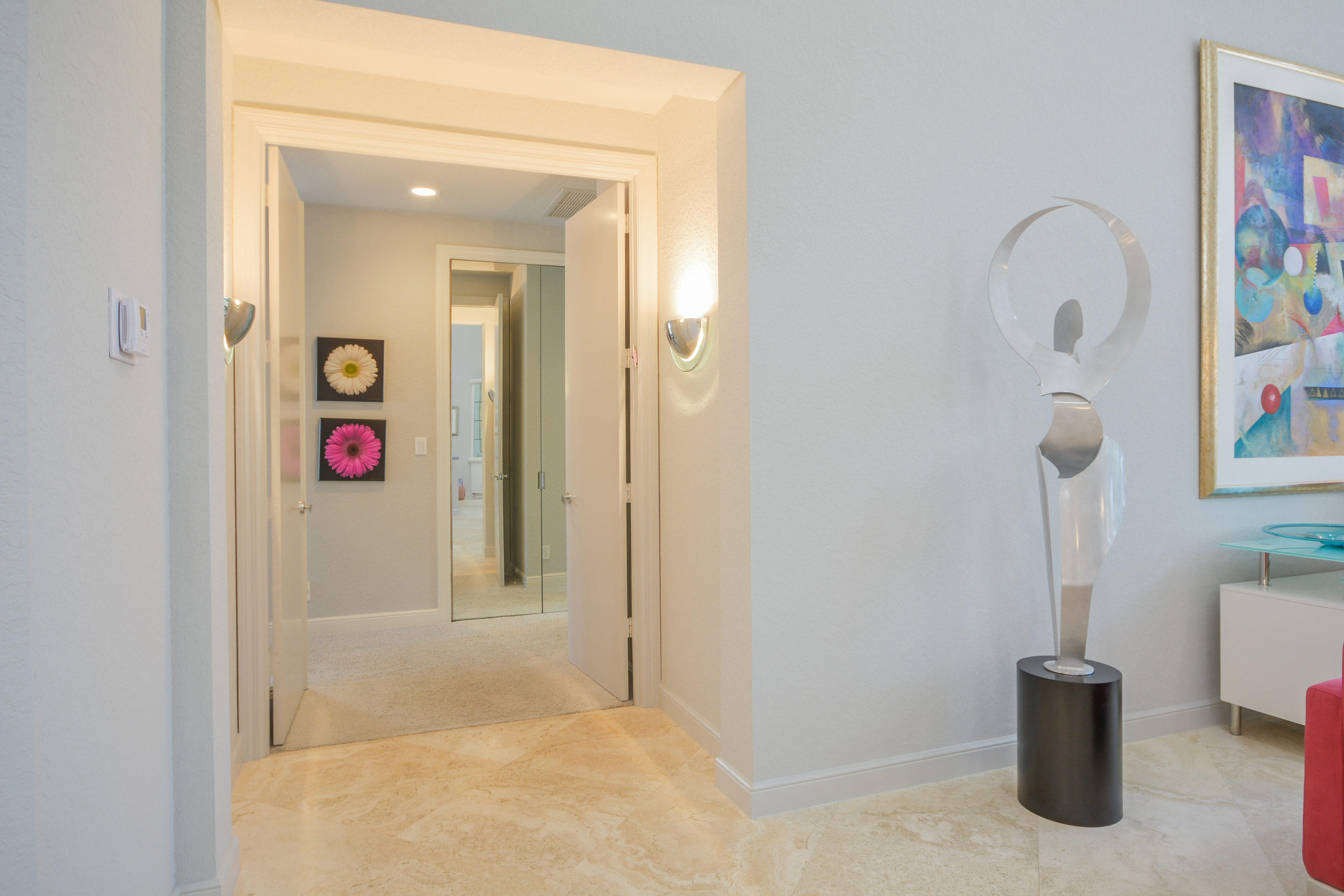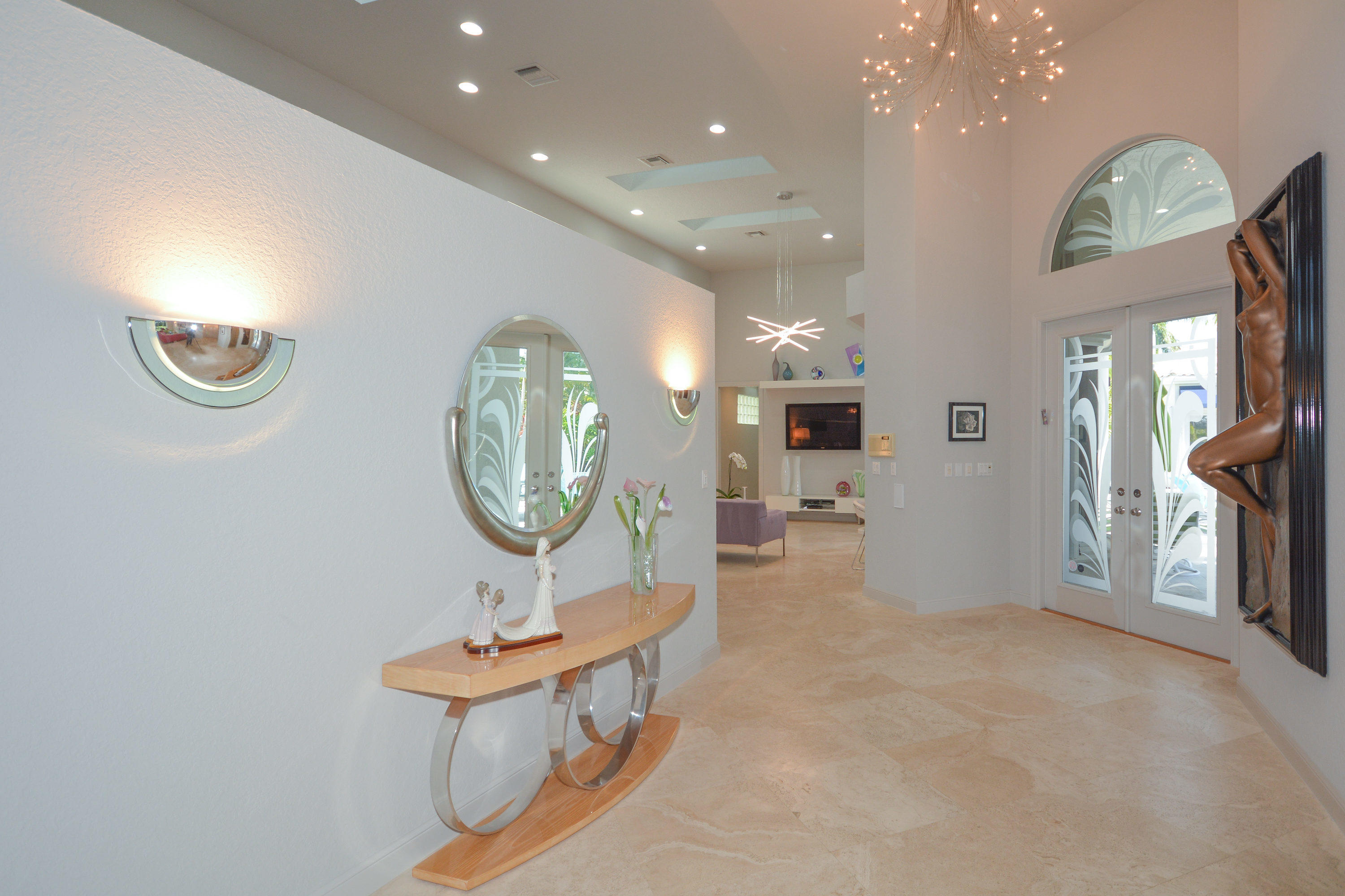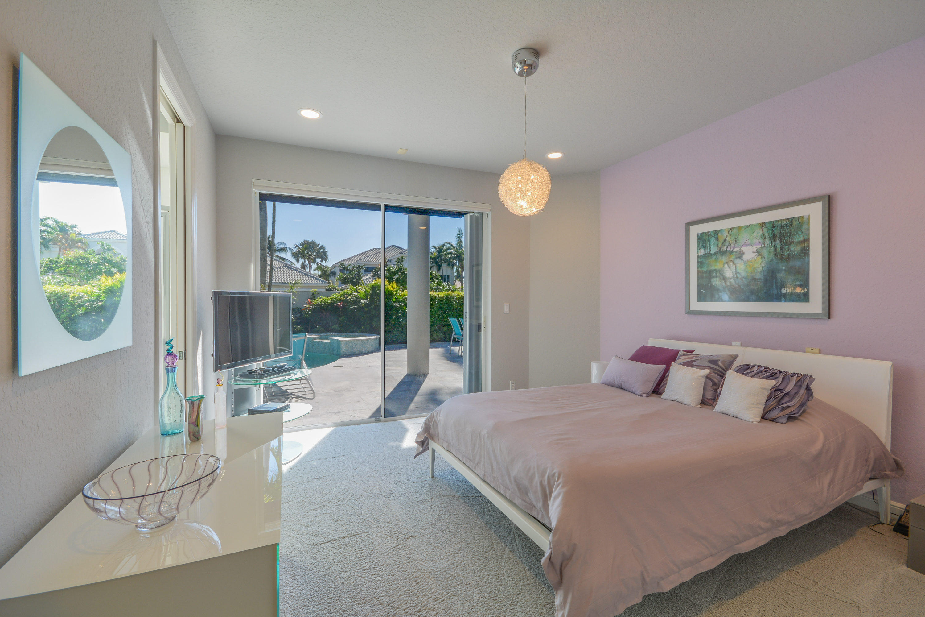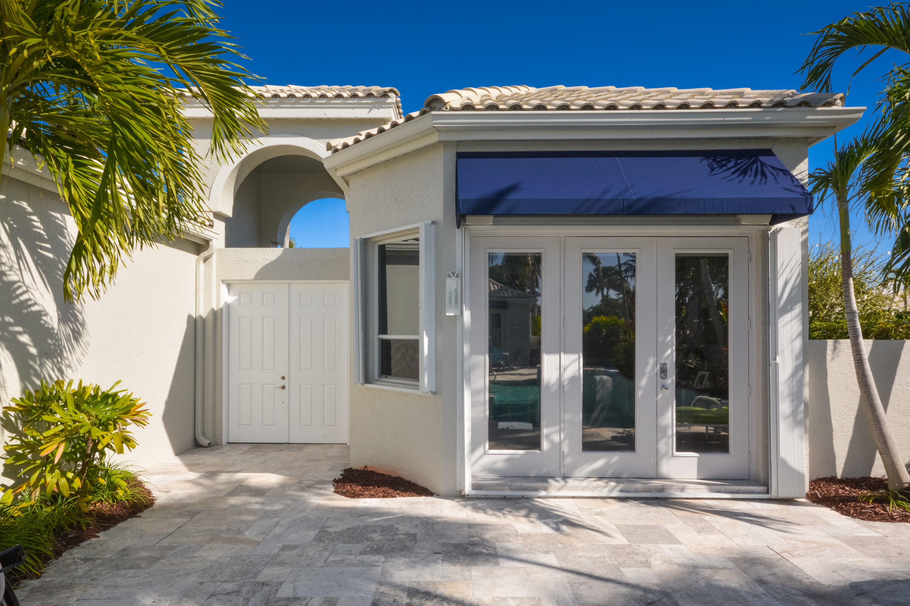 MOTIVATED SELLER!! Move In Ready! Just bring your furniture and tooth brush!! Immaculate and bright 4 bedroom, 4.1 bath contemporary courtyard home situated on a private corner lot with golf course views. This home is a true gem offering a modern Aran Cucine Italian Kitchen with white laquer & lilac glass cabinets, including a huge white laquer Italian coplanari pantry, lavender hue quartz countertops with waterfalls and Porcelanosa tile backsplash. Jenn air top of the line appliances including a double wall oven, induction cooktop, 48'' refrigerator, and Asko dishwasher. This home's living space is completely renovated, with an open floor plan in the great room, kitchen, dining room, and family room. Full house hurricane accordion shutters and a natural gas generator.