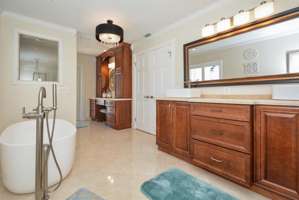 Your new home search ends here! GORGEOUS turnkey 5 bedroom, 3 bath home on nearly half an acre with amazing long lake views. This home has been totally renovated. An ideal split bedroom plan with marble floors in all the livings areas and new porcelain tile floors in the bedrooms. Beautiful kitchen with a large island, solid wood cabinets, granite counters, glass tile backsplash, and stainless steel appliances including double wall oven and wine fridge. Large master suite with his & her walk-in closets, porcelain tile floors, and crown molding. Marble master bathroom features a separate shower and freestanding tub, dual sinks, built-in vanity, and cabana door leading out to the patio/pool. The other two full bathrooms are updated with marble & quartz.