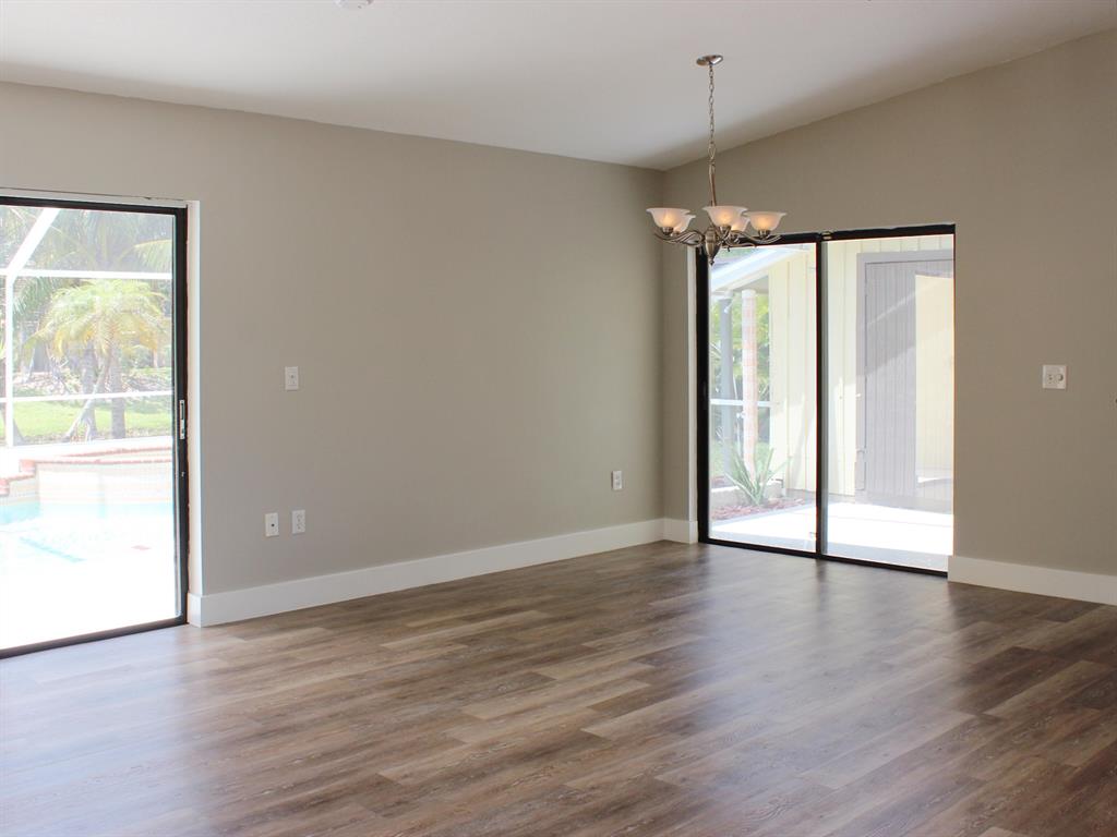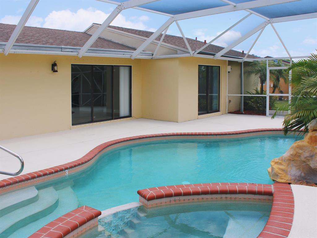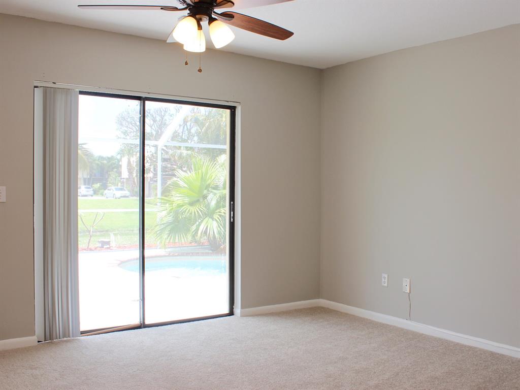 BEAUTIFUL! 3 bed, 2 bath home with 2 car garage & amazing pool on premium lake lot. From the moment you walk through your double door entry you are greeted with stunning lake & pool views from your foyer. The interior of the home has been freshly painted & features neutral tile throughout the living areas which give a very airy feel. The formal living area is light & bright with large sliders out to the back patio. The kitchen features, stainless steel refrigerator, dishwasher, range and bar stool seating. The kitchen has a breakfast bar & is open to the family room. The family room is light & bright with natural light from large sliders that open up to the patio and pool area for an extended living area.