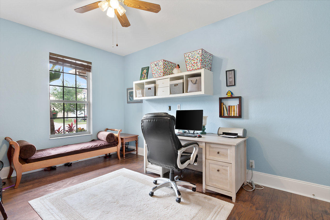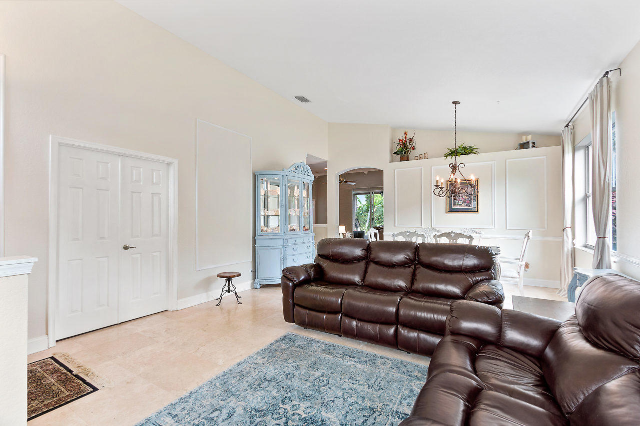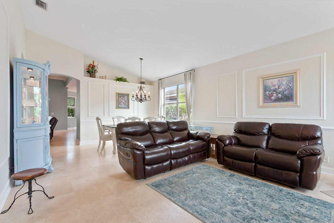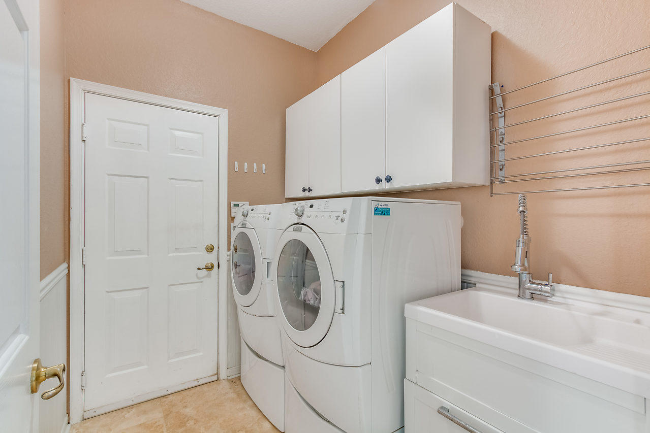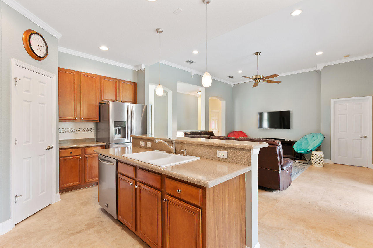 BEAUTIFUL! 3 bed plus den, 2 bath POOL home with 2 car garage & large fenced in yard in the highly desirable gated community Stonehaven! Eye catching curb appeal welcomes you insides where you will be impressed by the spacious layout & upgraded travertine flooring that accentuates the open-flowing floor plan. Beyond the elegant formal living & dining rooms is a chef's dream kitchen featuring newer stainless steel appliances, 42'' cabinets with pull out shelves, large pantry, & breakfast area overlooking the pool. The upgraded kitchen is open to the family room which is bright with natural light from sliders that lead out to a covered patio & provide beautiful views of the pool! The crown molding is another stunning detail! The master suite offers upgraded flooring,