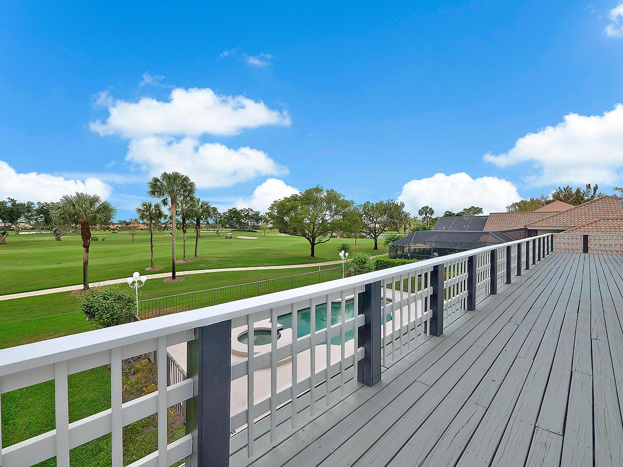 GOLF MEMBERSHIP REQUIRED DEPENDING ON AVAILABILITY OF SOCIAL MEMBERSHPS. 2 STORY HOME WITH A 65 ft 2ND FLOOR ROOF DECK AFFORDING UNBLOCKED LAKES/GOLF COURSE VIEWS. 4 B/R'S (master on 2nd) + OFFICE. 3.5 BATHS. 2 CAR + GOLF CART GARAGE. OPEN FAMILY ROOM WITH F/P. KITCHEN WITH Bkfst BAR. Large Laundry. FRENCH DOORS FROM FAMILY Room have direct access TO LARGE SCREENED PORCH & PRIVATE POOL. AC'S 03/2020. WTR HTR's 2005/2016. ROOF DECK 2020. NEWER POOL FINISH. NEW IMPACT DBL. GARAGE DOOR. 1X UPFRONT TOTAL FEES APPROX. $69-$85K - ANNUAL COSTS ranges from APPROX. $22-$28K PER YR depending on Memb. level. Fees inc. dues/no tip service chg/renov. charges/trail fees/taxes. $300. HOA INC. CABLE/INTERNET/24HR MANNED GATE/ALARM. ALL AGES/DATES/SIZES/FEES SUBJ TO VERIFICATION. $2k per yr. min. food/bev.