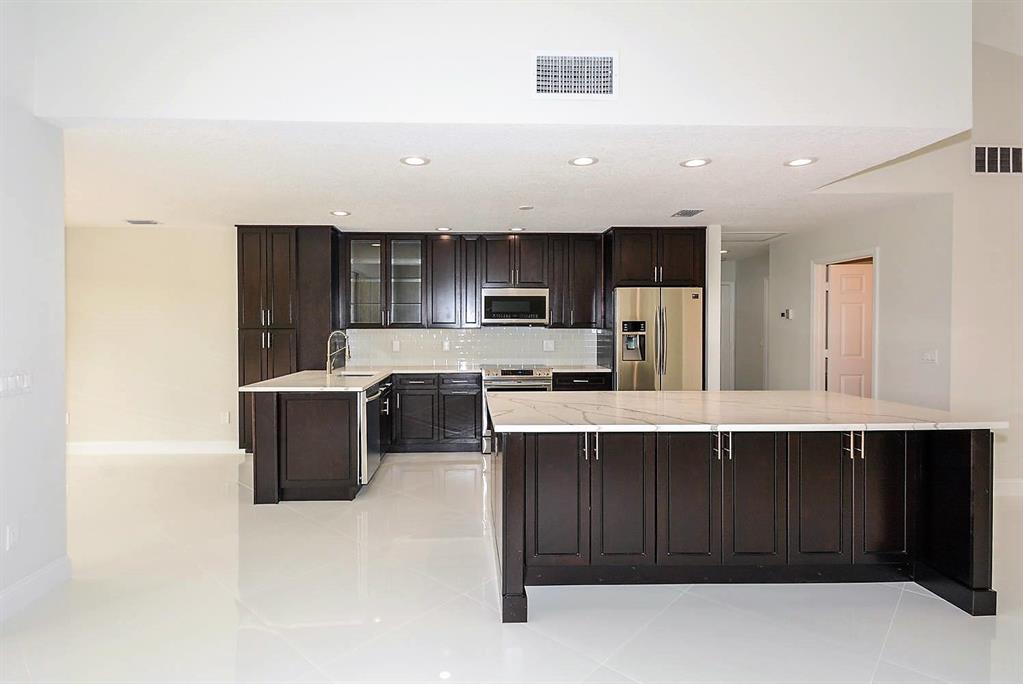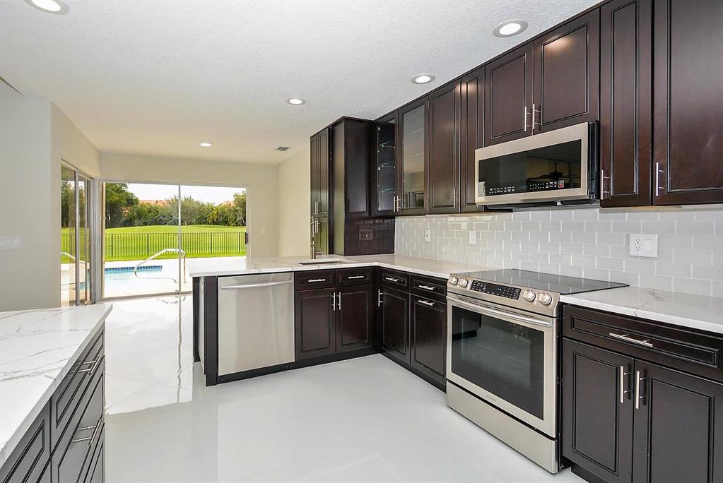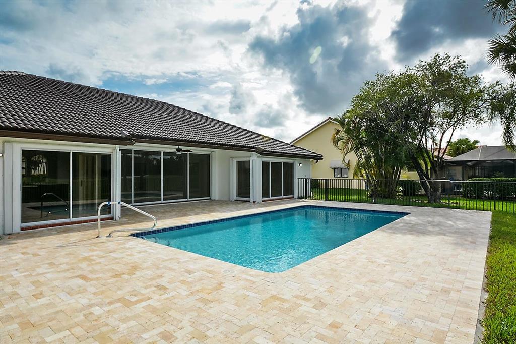 Stunning Renovation! Beautiful Beautiful Beautiful! This home lies on an oversized lot with golf course views. Porcelain tiles throughout. New kitchen with all the bells and whistles. Gorgeous countertops, top of the line stainless appliances. All three baths have unique designer finishes. Freshly painted inside and out. Oversized fenced in lot with grassy area. Full hurricane protection. Mandatory membership to Boca Woods Country Club. Currently $60,000, $30,000 fully refundable when you sell. $30,000 non-refundable dues. 2 championship golf courses, driving range, putting greens, tennis, etc. Mandatory Application to Boca Woods CC. Bond goes up $5,000 end of Oct.