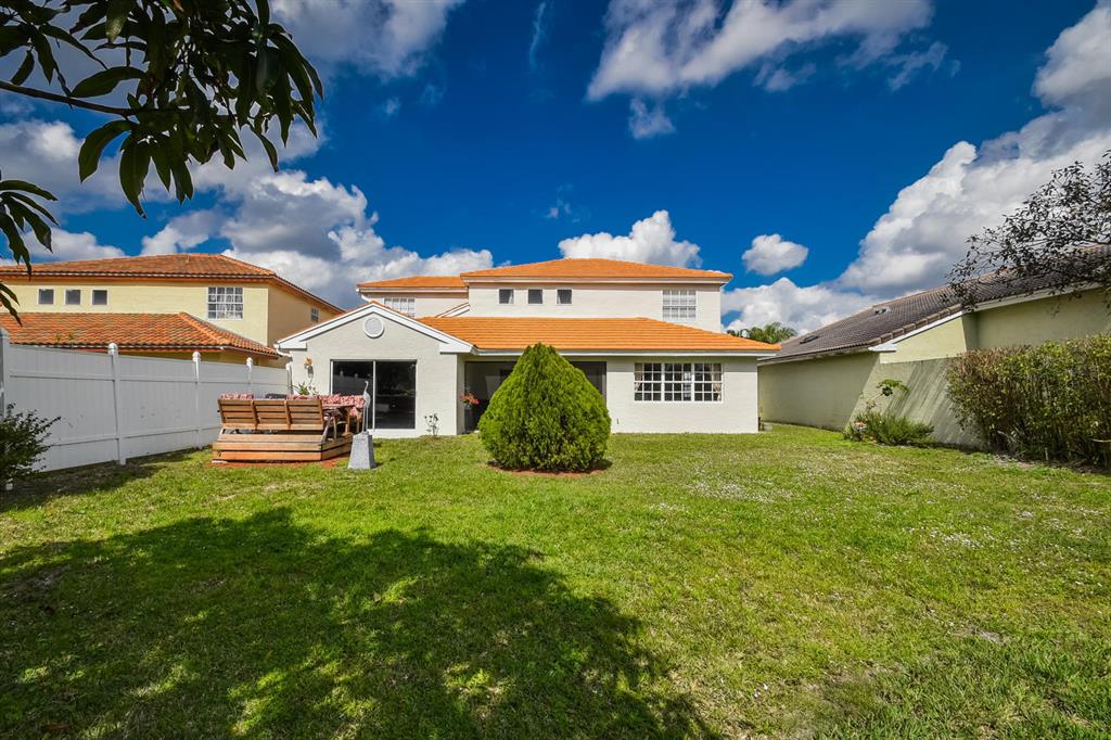 Newly painted spacious home with a great backyard. Updated kitchen with new stainless appliances and granite counter tops. Master bedroom is on the main floor and has walk in closet space as well as Brazilian 3.4'' thick wood floors. Main house has neutral tile on the diagonal. Staircase and 3 bedrooms upstairs all have Brazilian wood flooring. This home is light and bright and sited in the lovely community of Lacrosse in The Lakes at Boca. Fantastic amenities. Interior laundry room. Formal Dining rm. Family and living areas offer peaceful views overlooking the extended backyard. No rear neighbors! Low HOA includes Cable HBO and internet. Fitness, heated pools, playgrounds, tennis, basketball and astro turf soccer field. Manager is onsite. Minutes from schools, shopping & houses of worship