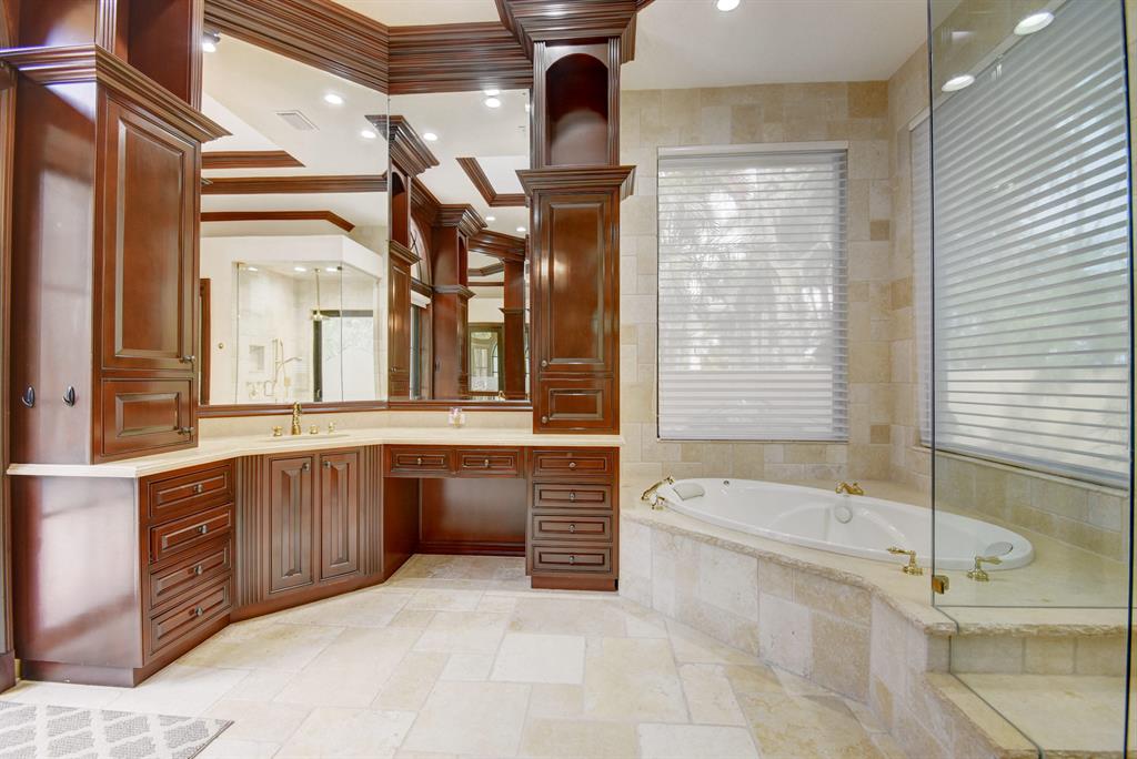Sensational estate home offering 6 bedrooms, 5 full bathrooms & a powder room, plus a large office & a generous second floor loft. Impressive features of the property include a new kitchen, French doors in every entry way, spectacular soaring picture windows, crown molding, 23 ft. ceilings, Jerusalem stone & hardwood flooring throughout, 2 working fire places (1 in the master bedroom), a wet bar located upstairs & balconies from every room on the second floor. The focal point of the home is the new large & epicurean kitchen with 2 sinks, 2 dishwashers, 2 ovens, 2 warming drawers, a center island & a wine fridge. The master bedroom is very spacious with beautiful dark wood closet systems. The spectacular bathroom features an abundance of drawers & floor to ceiling custom cabinetry.