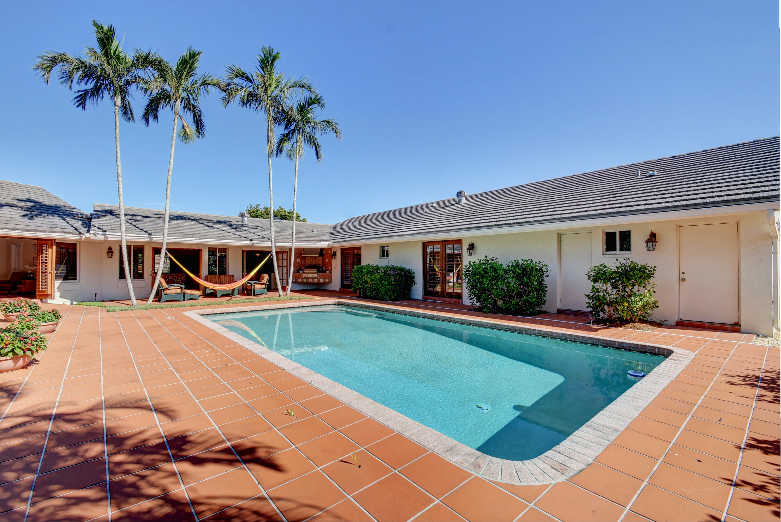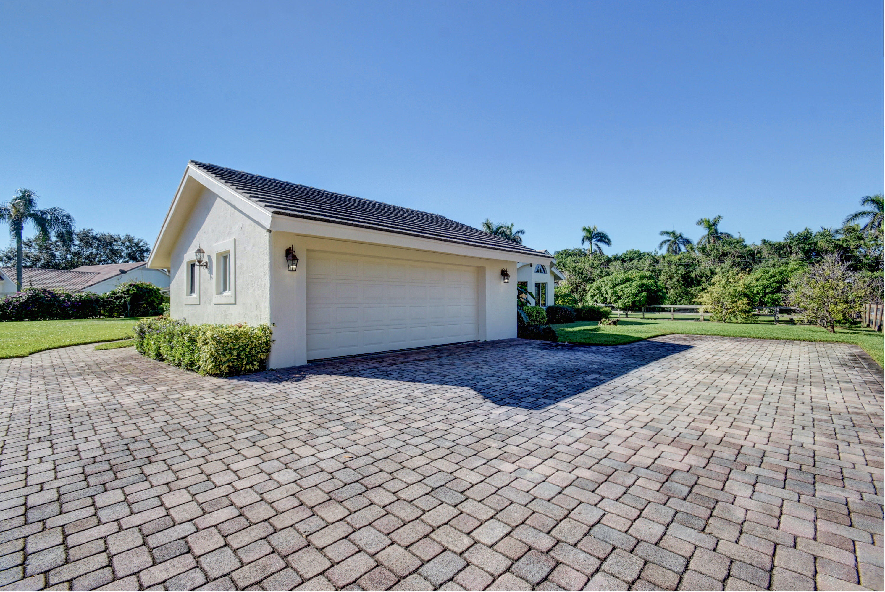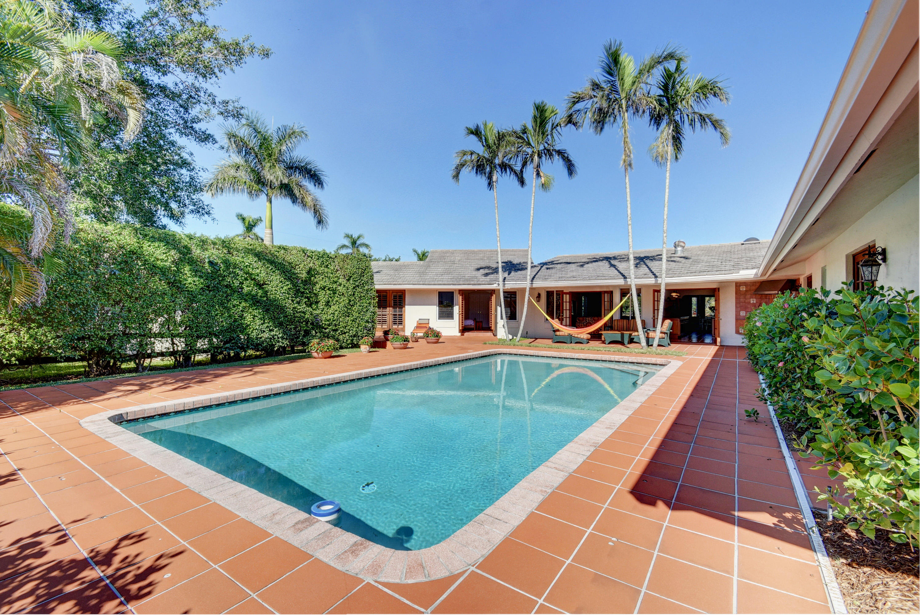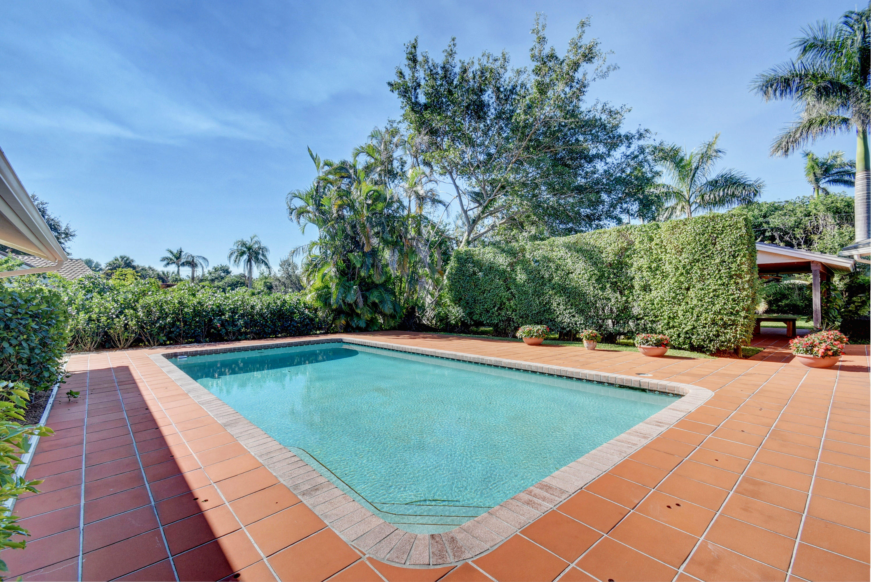 This rare 1 story 5 bdrm, 31/2 bth (plus office) home sits on over 1 acre of stunning greenery. The oversized kitchen features 2 islands, a generous amount of cabinetry, gourmet appliances & a wine refrigerator. This home offers a split bedroom plan with the master bedroom & office on one side & the auxiliary bedrooms each with a large walk in closet on the other side. Extra features include plantation shutters & crown molding throughout, central vacuum, a large laundry room & hurricane panels for the windows. French doors, along the back of the home, open to the very sunny pool which is south facing. There is an abundance of covered & uncovered outdoor patio for eating vignettes all around the pool. Adjacent to the pool is a smaller structure which can be used for a gym, office or storage