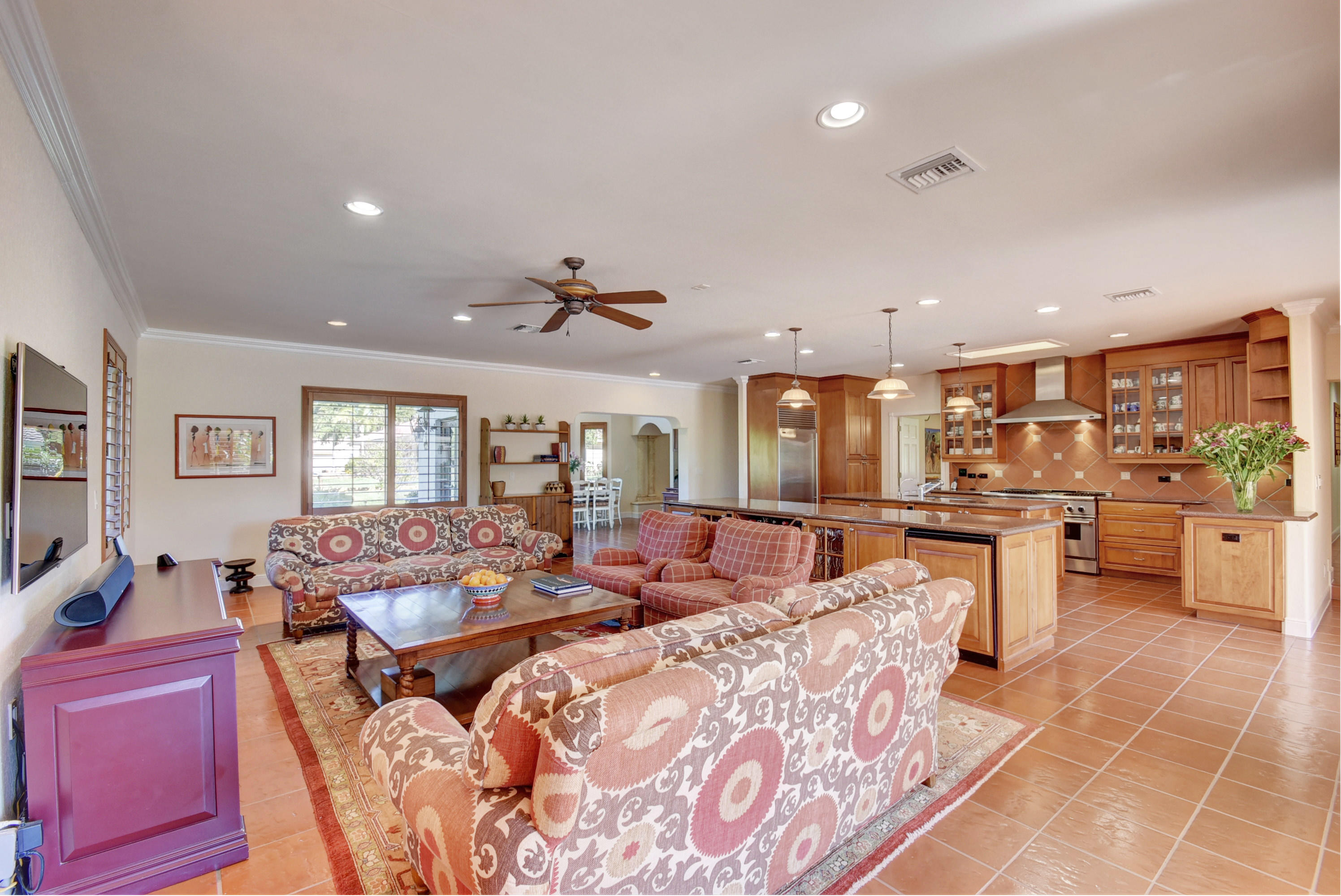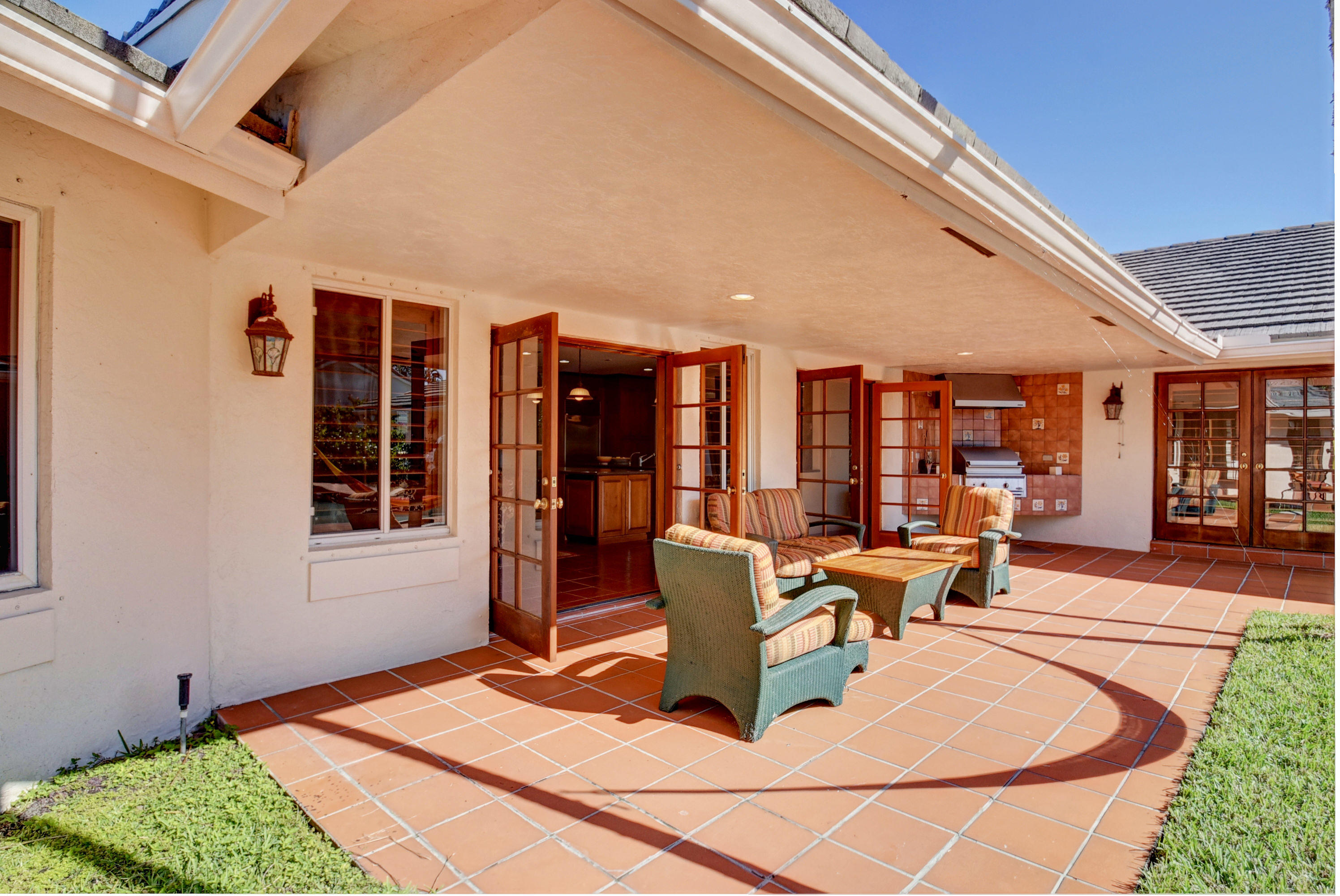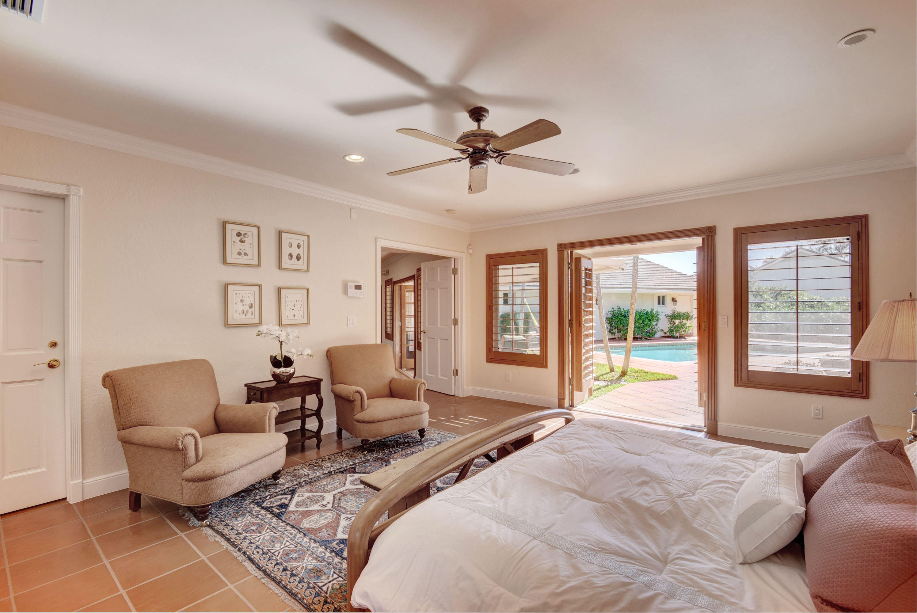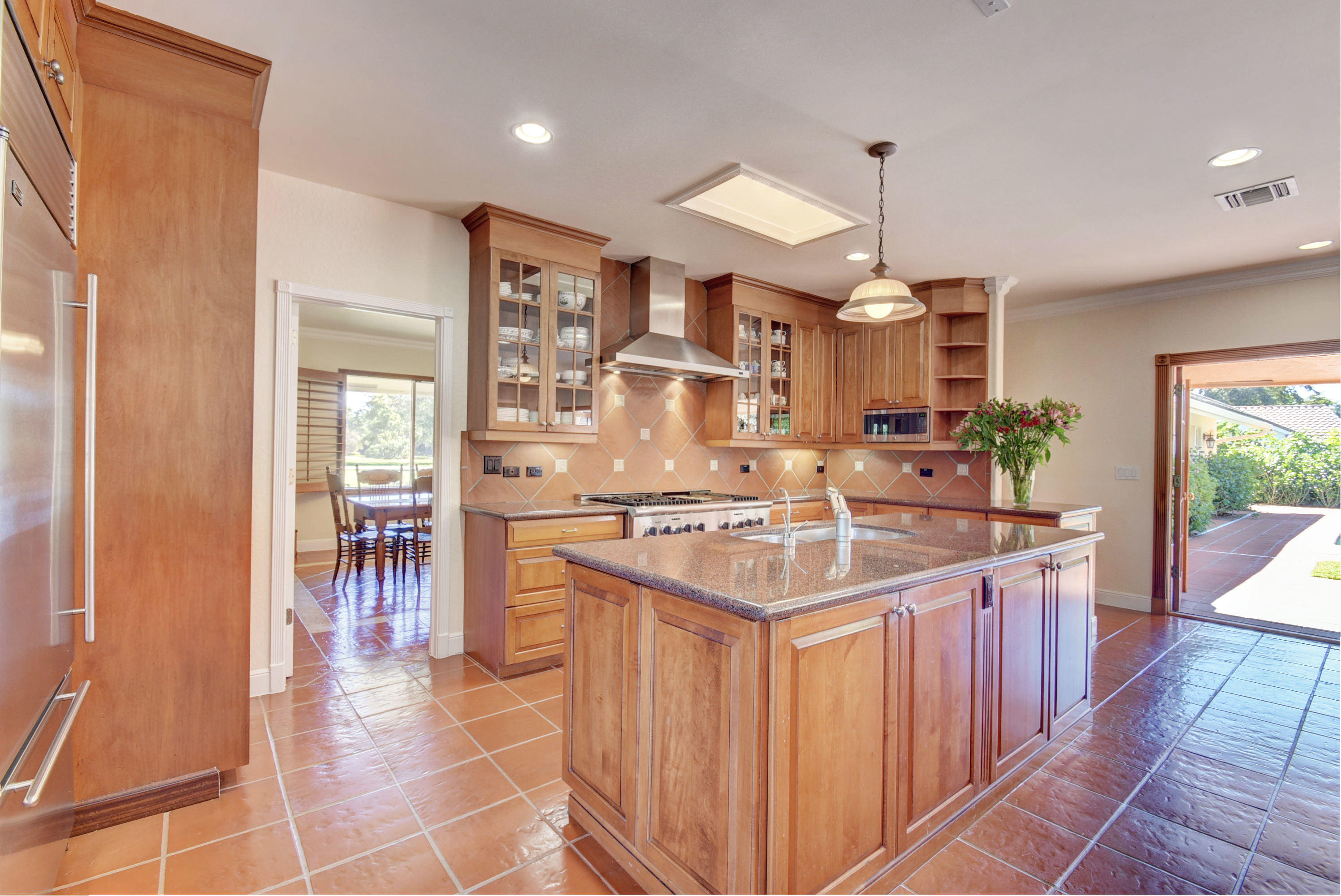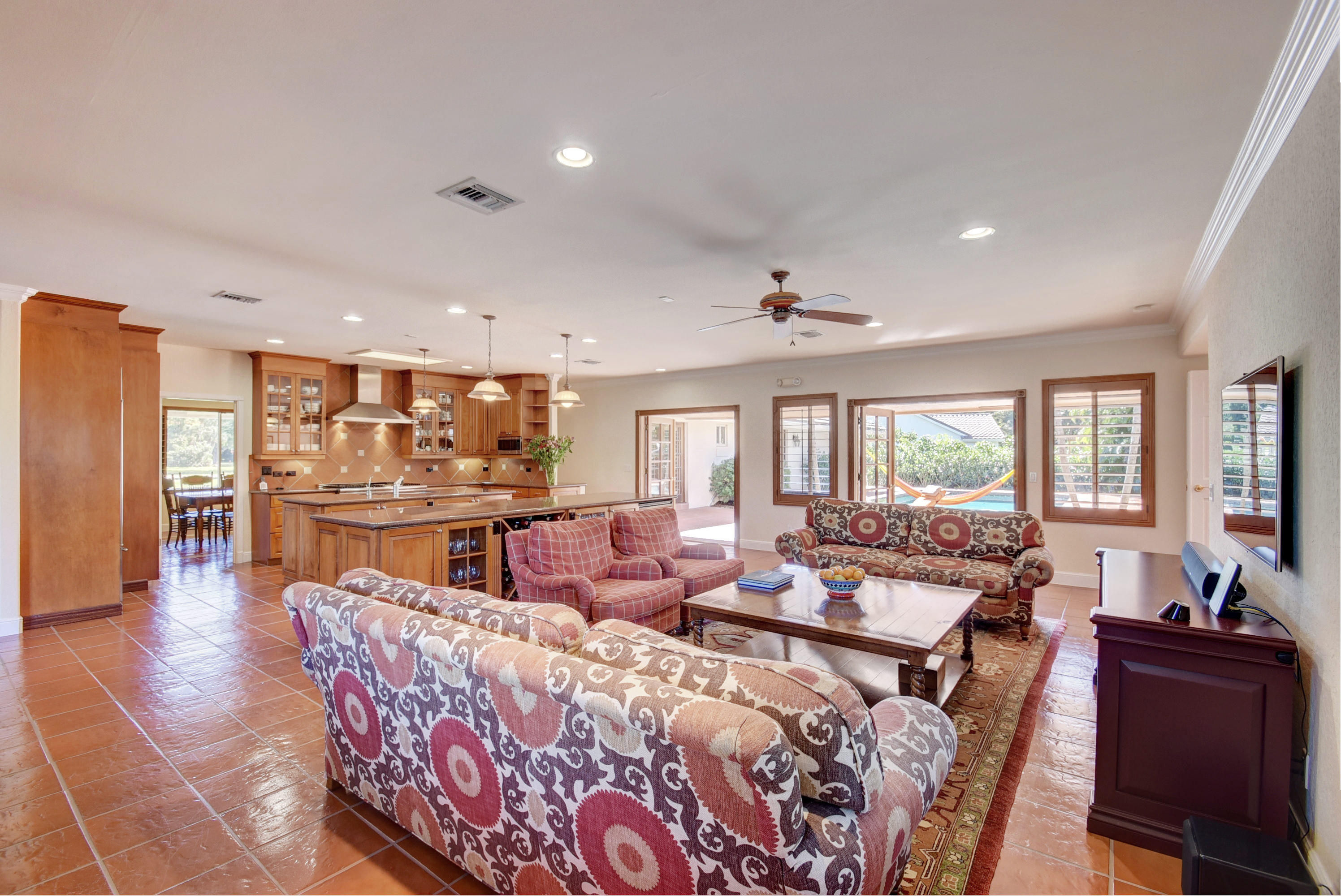 This rare 1 story 5 bdrm, 31/2 bth (plus office) home sits on over 1 acre of stunning greenery. The oversized kitchen features 2 islands, a generous amount of cabinetry, gourmet appliances & a wine refrigerator. This home offers a split bedroom plan with the master bedroom & office on one side & the auxiliary bedrooms each with a large walk in closet on the other side. Extra features include plantation shutters & crown molding throughout, central vacuum, a large laundry room & hurricane panels for the windows. French doors, along the back of the home, open to the very sunny pool which is south facing. There is an abundance of covered & uncovered outdoor patio for eating vignettes all around the pool. Adjacent to the pool is a smaller structure which can be used for a gym, office or storage