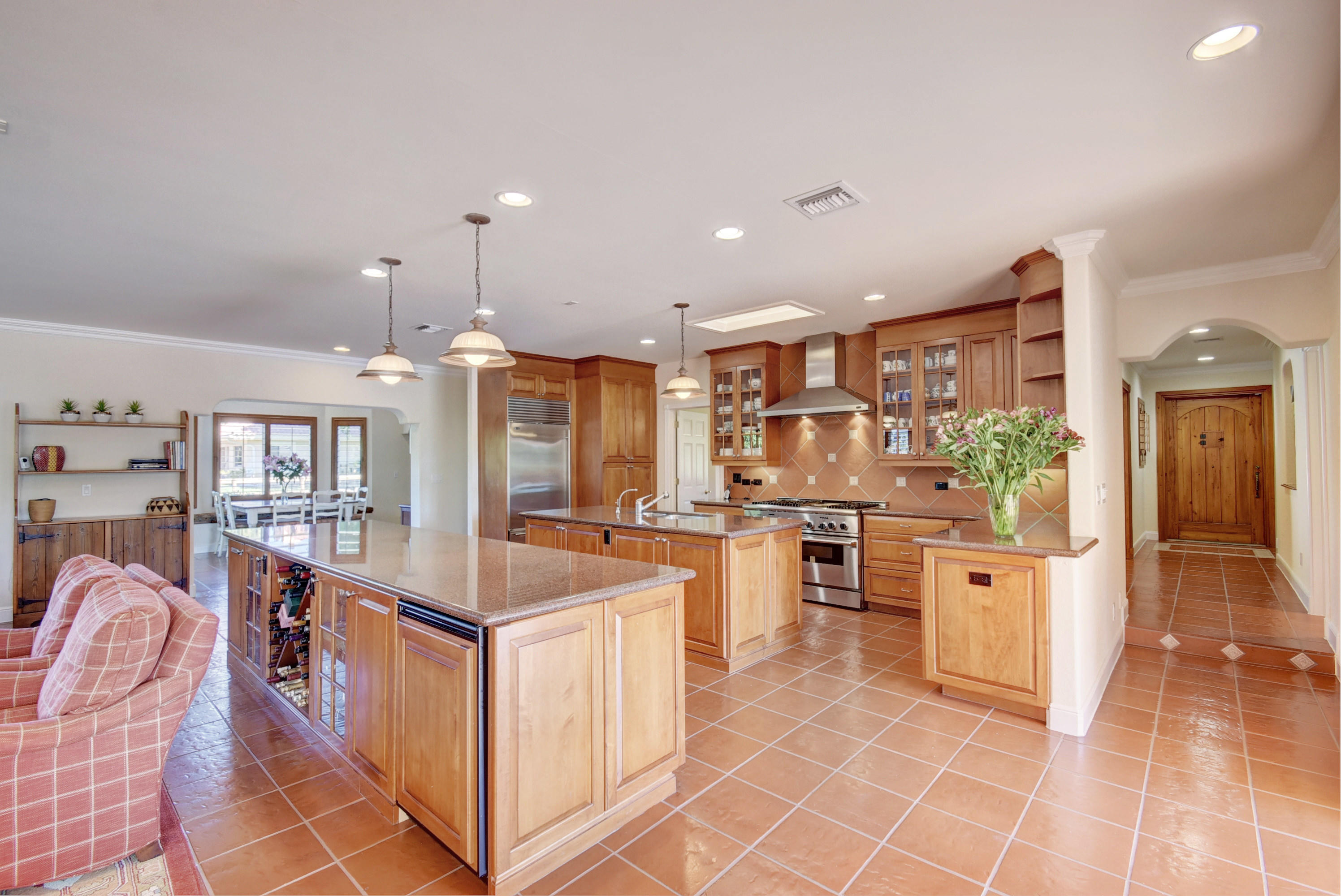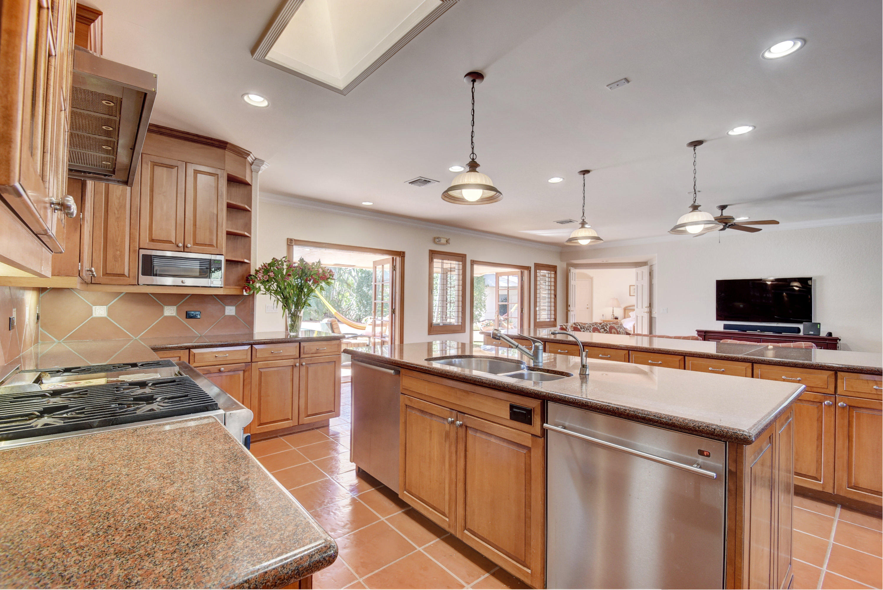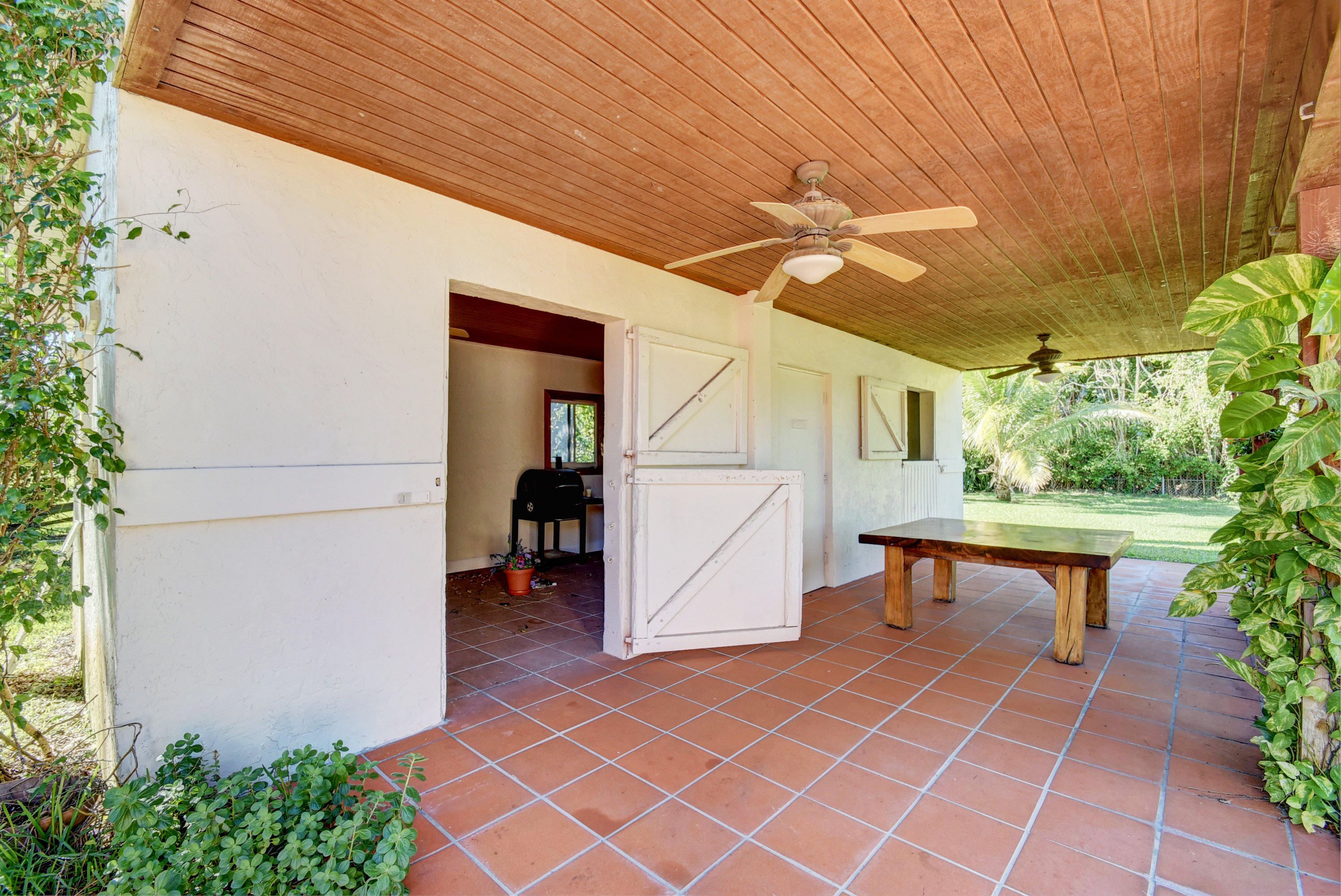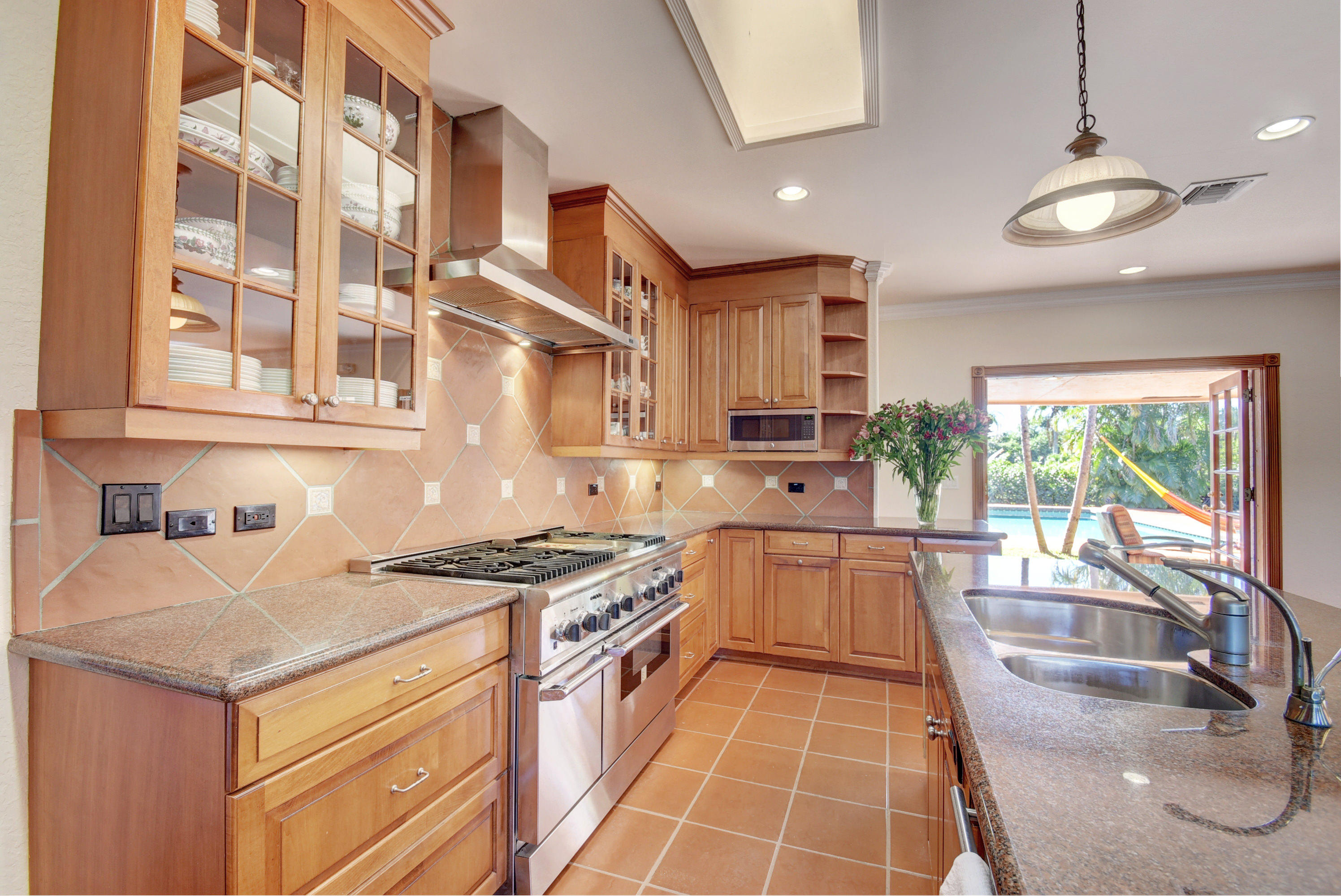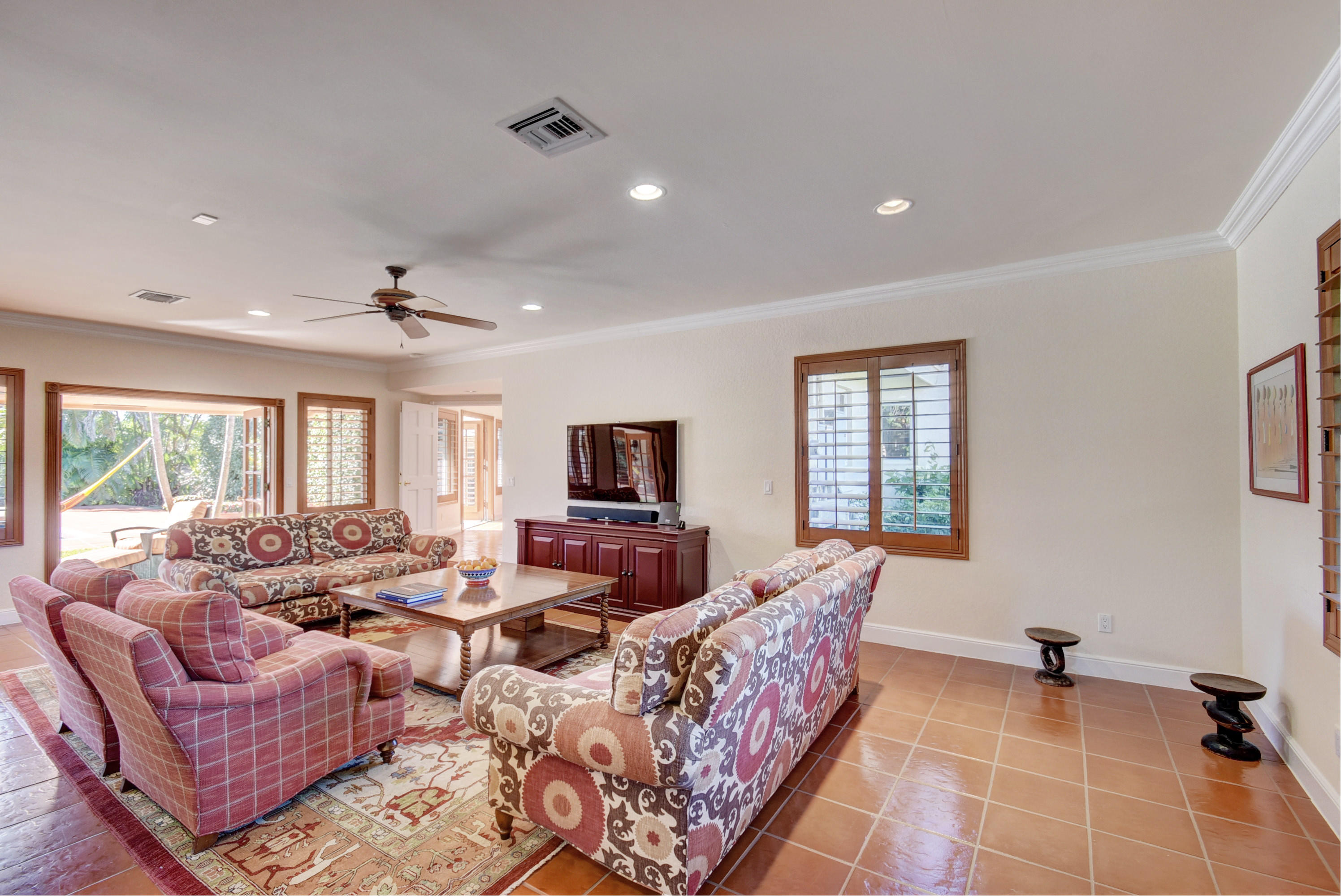 This rare 1 story 5 bdrm, 31/2 bth (plus office) home sits on over 1 acre of stunning greenery. The oversized kitchen features 2 islands, a generous amount of cabinetry, gourmet appliances & a wine refrigerator. This home offers a split bedroom plan with the master bedroom & office on one side & the auxiliary bedrooms each with a large walk in closet on the other side. Extra features include plantation shutters & crown molding throughout, central vacuum, a large laundry room & hurricane panels for the windows. French doors, along the back of the home, open to the very sunny pool which is south facing. There is an abundance of covered & uncovered outdoor patio for eating vignettes all around the pool. Adjacent to the pool is a smaller structure which can be used for a gym, office or storage