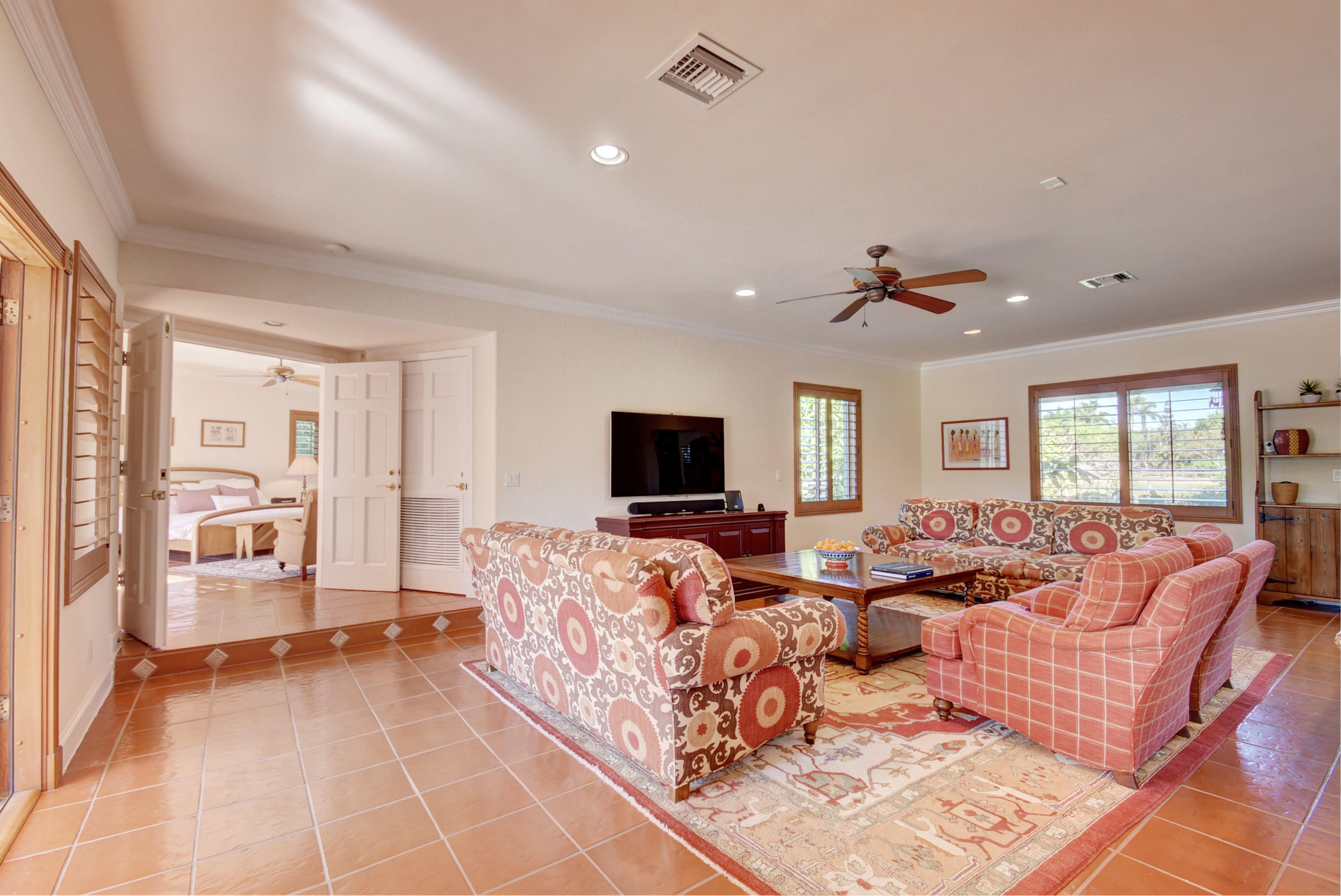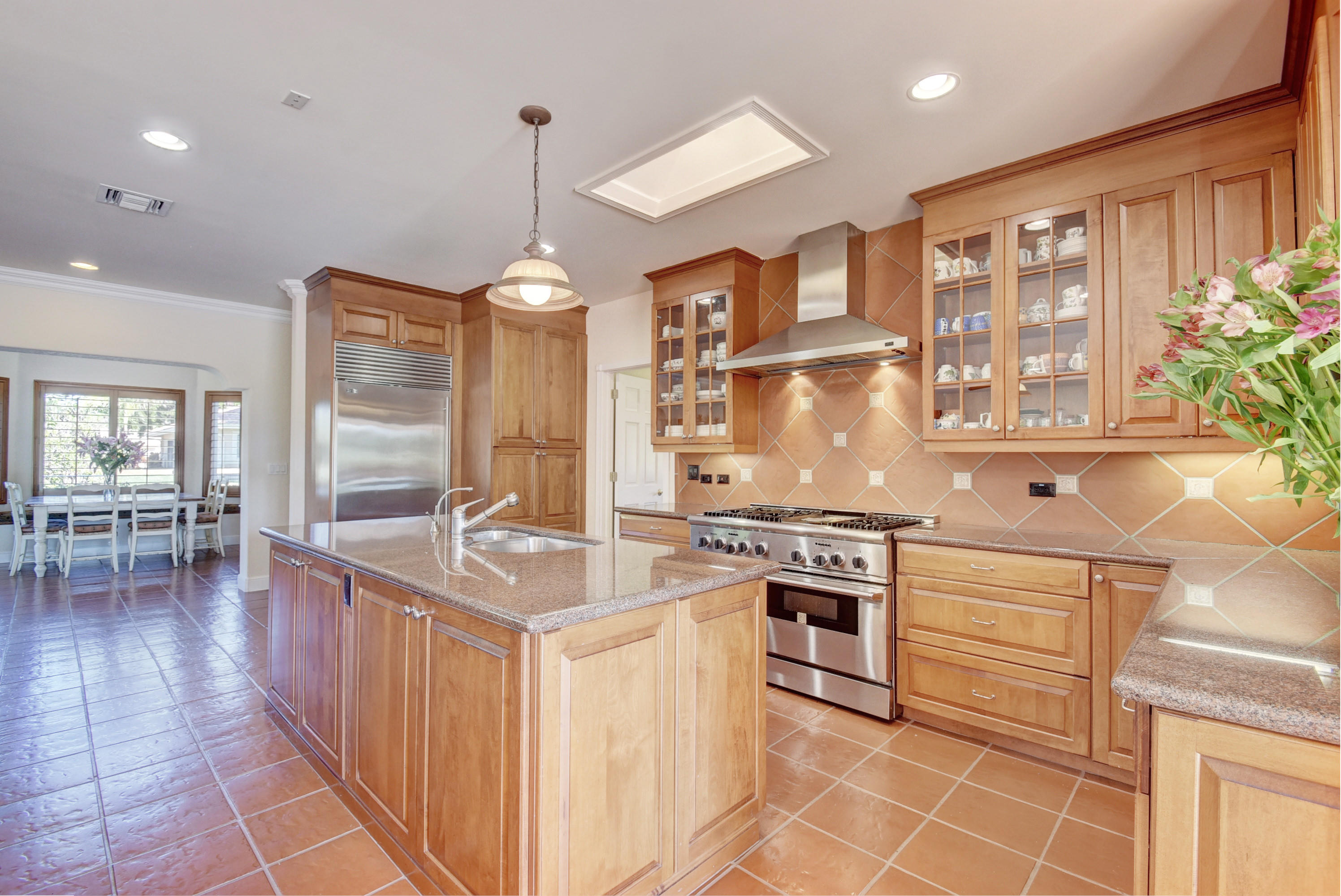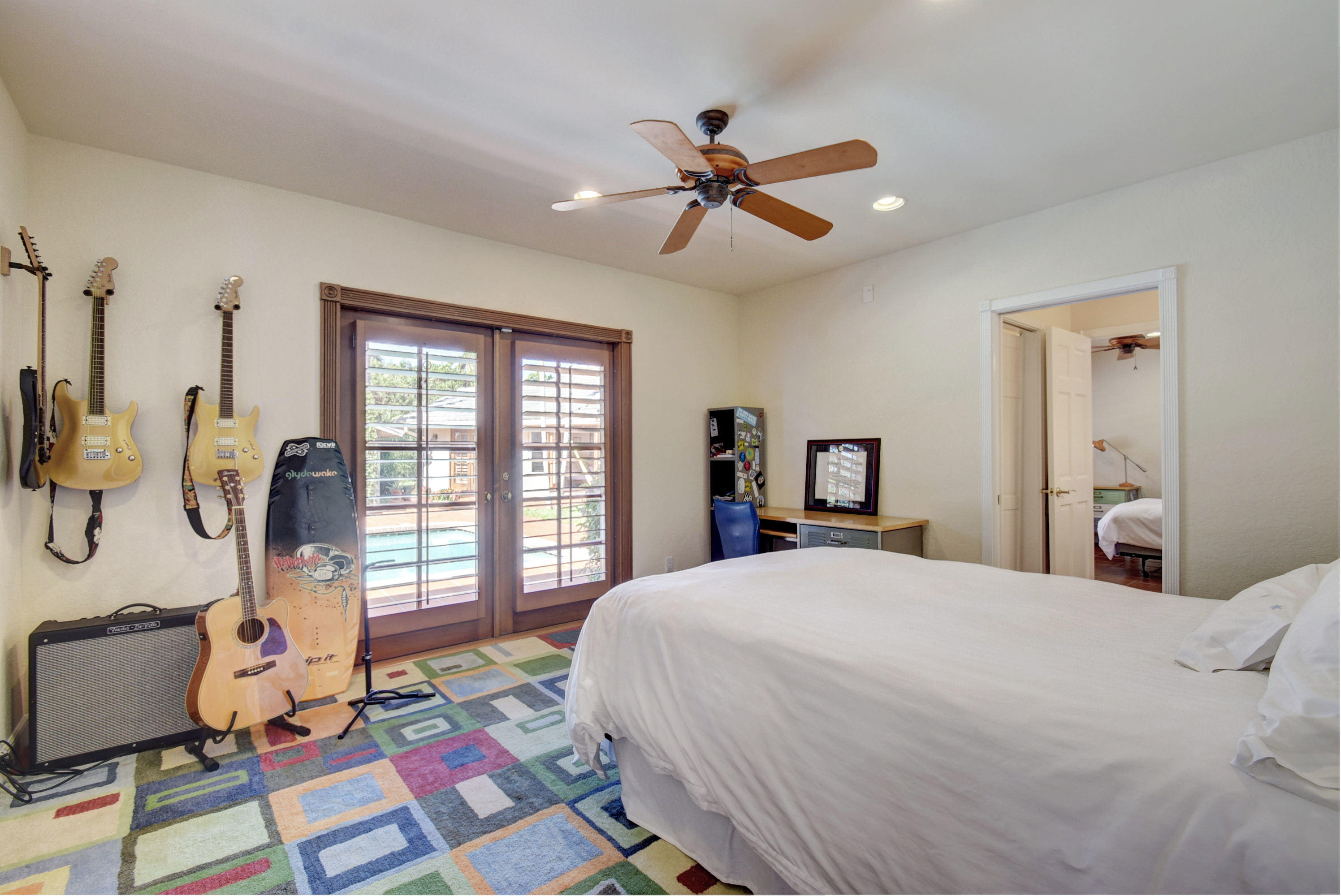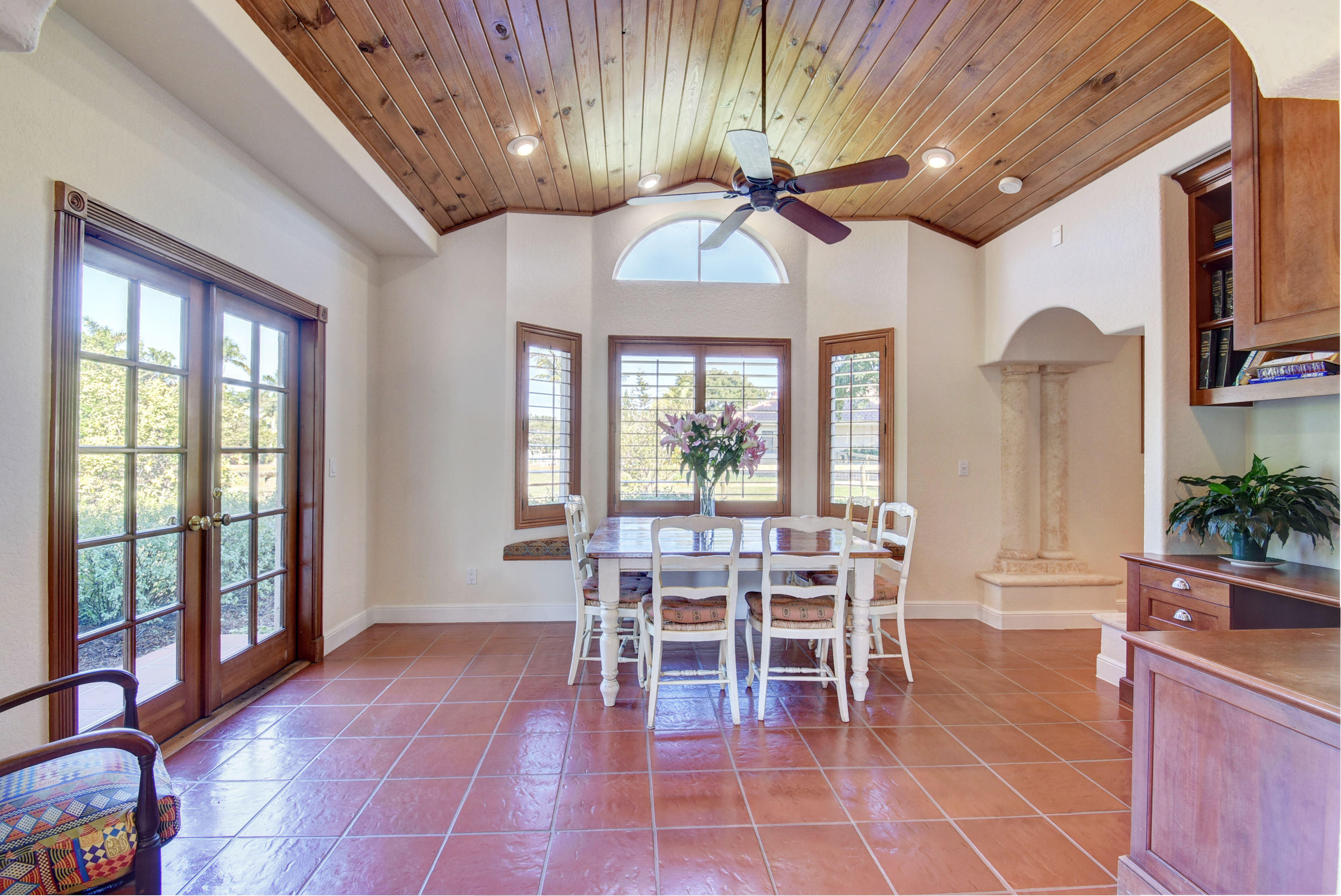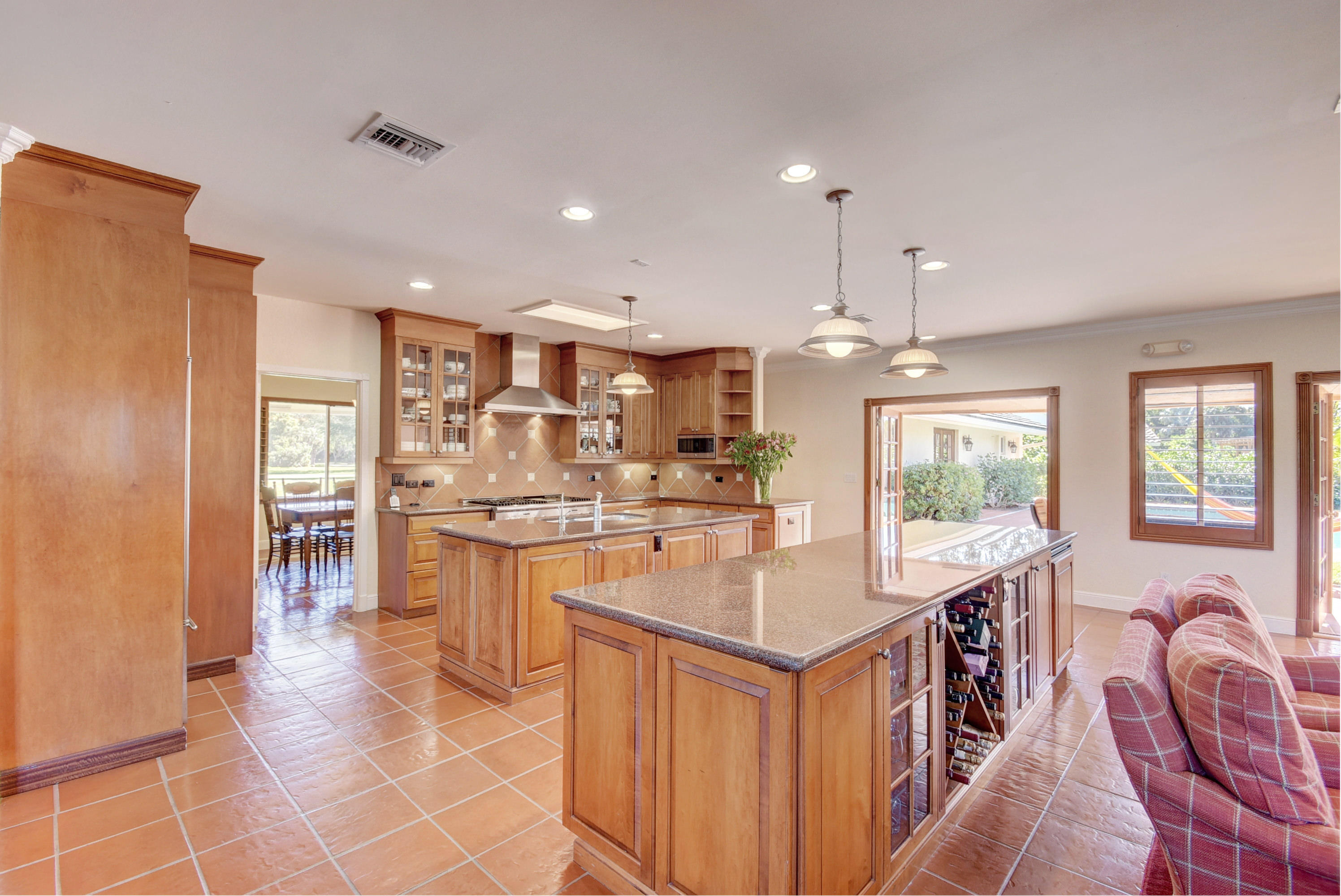 This rare 1 story 5 bdrm, 31/2 bth (plus office) home sits on over 1 acre of stunning greenery. The oversized kitchen features 2 islands, a generous amount of cabinetry, gourmet appliances & a wine refrigerator. This home offers a split bedroom plan with the master bedroom & office on one side & the auxiliary bedrooms each with a large walk in closet on the other side. Extra features include plantation shutters & crown molding throughout, central vacuum, a large laundry room & hurricane panels for the windows. French doors, along the back of the home, open to the very sunny pool which is south facing. There is an abundance of covered & uncovered outdoor patio for eating vignettes all around the pool. Adjacent to the pool is a smaller structure which can be used for a gym, office or storage
