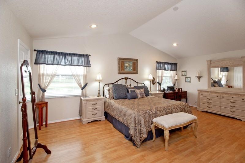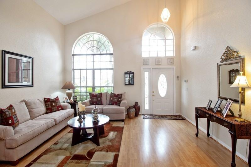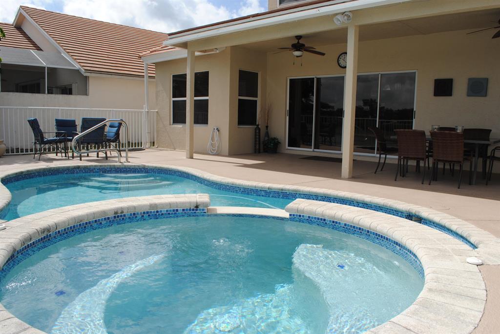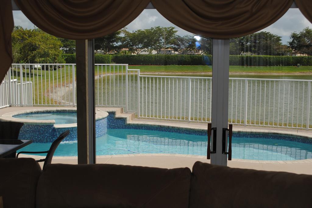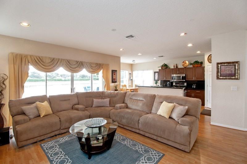 Incredible opportunity to own a lakefront house that is extremely clean, bright, and well maintained. No rear neighbors, just amazing and relaxing water views. One bedroom and a full bathroom downstairs. Upstairs you will find a very large Master bedroom plus another two bedrooms, plus two full bathrooms. Master features two large walk-in closets. Fully fenced-in patio has a large covered area, a freeform pool, spa with waterfall feature, and a great open area that overlooks the lake. Kitchen features granite counter tops, cook's island, stainless steel appliances and a spacious breakfast nook. Laminate floors throughout, except in bathrooms. Convenient storage closet inside the 2 car garage. Top rated schools. Low HOA fees. Access to Community clubhouse and ammenities. Manager on-site.