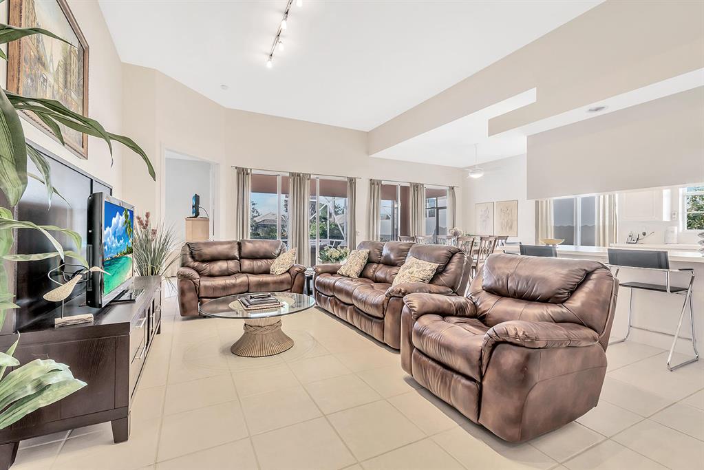 Wonderful lakefront, pool home in Riverwalk, a luxurious, waterfront, gated community! Seller prefers to sell turnkey. Step inside and be wowed by soaring volume ceilings, spacious living areas and an open floor plan with lots of natural light! The open kitchen is light and bright with lots of cabinetry space! All of the bedrooms are also spacious and the master suite offers a luxurious master bathroom. Step outside and enjoy expansive lake views! This lovely home also offers a large laundry room with lots of storage space! Look no further! This home has it all. Live the resort lifestyle in Riverwalk a luxurious, waterfront, 24 hour manned gated community which offers 3 resort style pools, a fitness center,