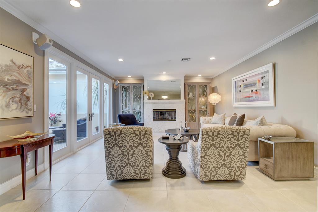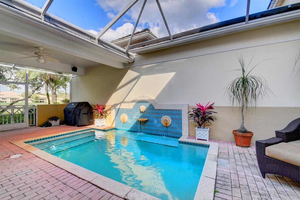 Recently renovated two-story townhome with expansive golf course views features open and airy living room with fireplace, high ceilings and extensive high-hat lighting. The open kitchen boasts stainless steel appliances, granite countertops and backsplash, and an oversized pantry. Beautifully remodeled master and secondary bathrooms upstairs with neutral tile and custom closet designs. Charming covered patio area with retractable awning allows cooling off in your own private splash pool. Additional highlights include impact glass French doors and plantation shutters. The roof is approximately 6 years old and the A/C system is about 5 years old. The required membership allows you to enjoy the country club lifestyle and all the amenities that Woodfield has to offer.