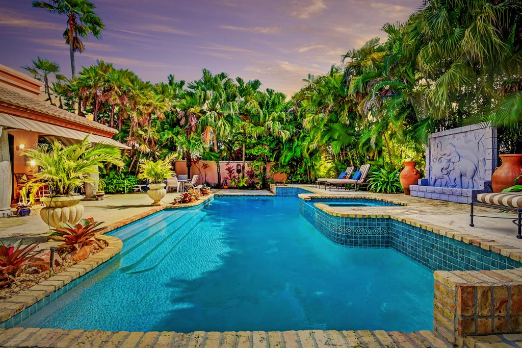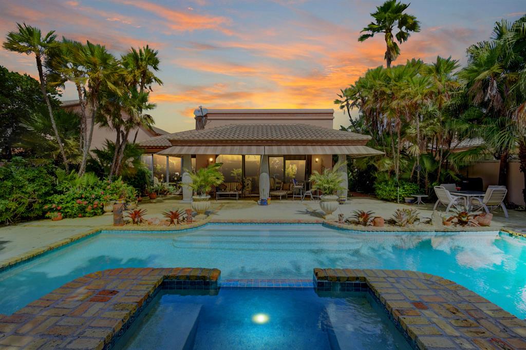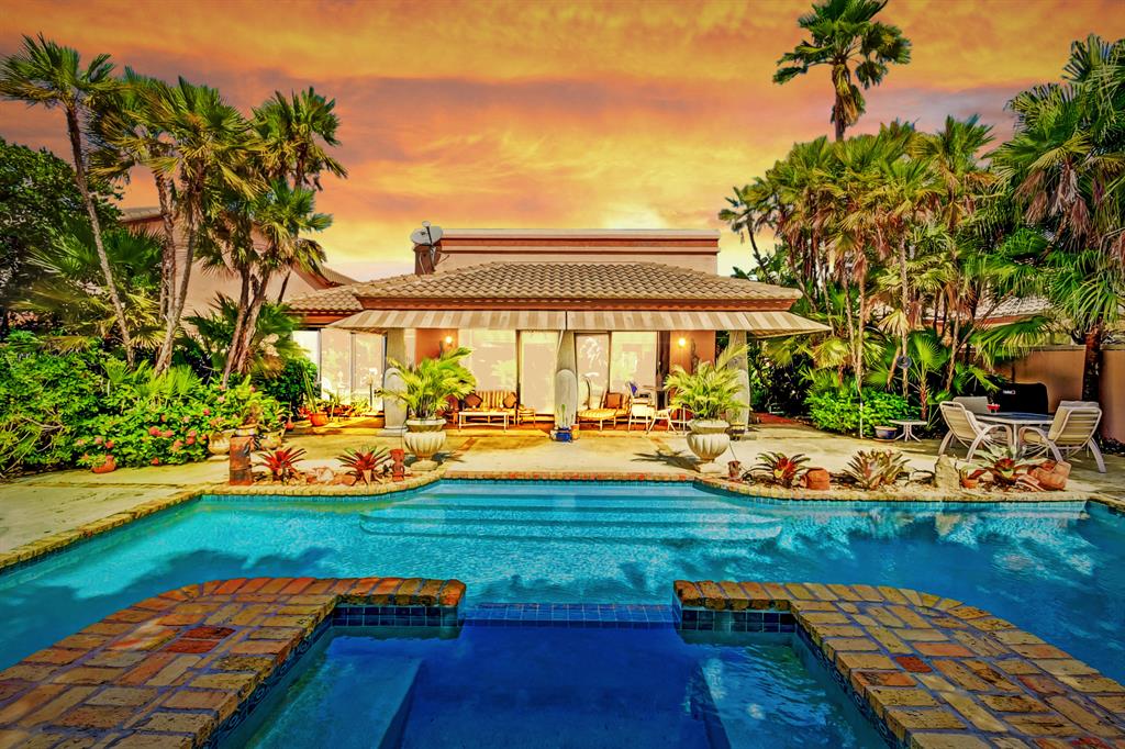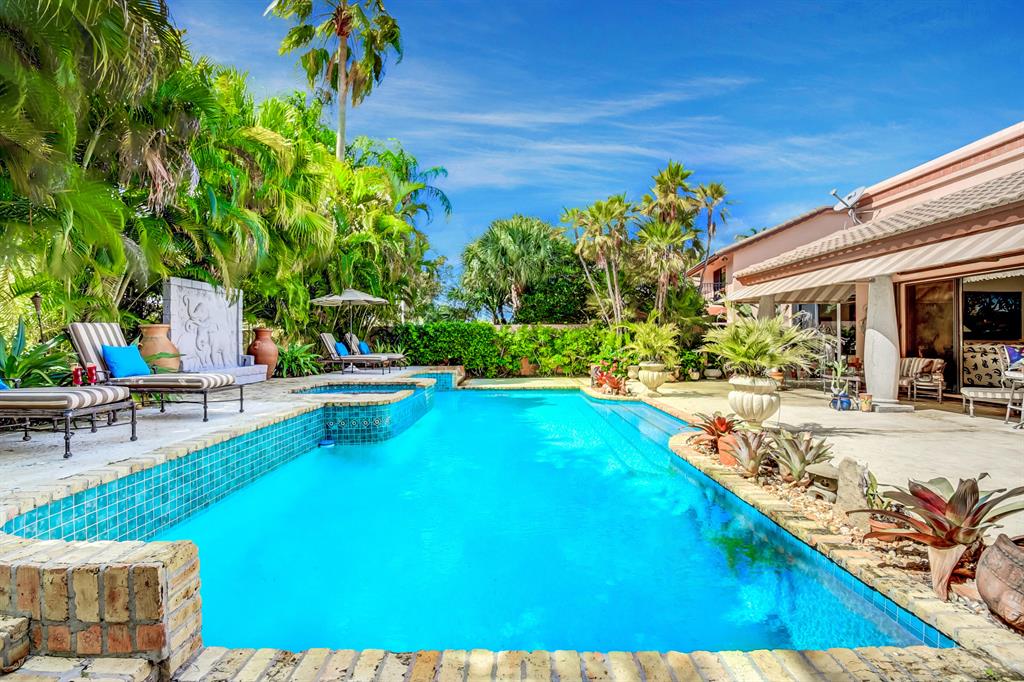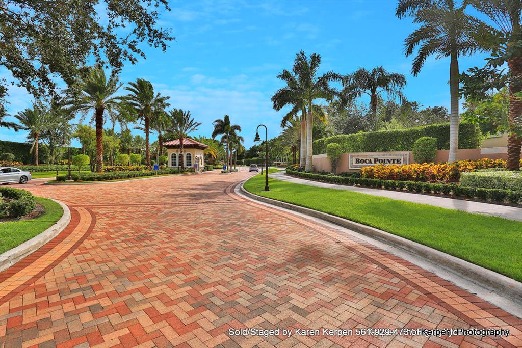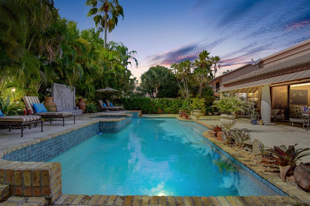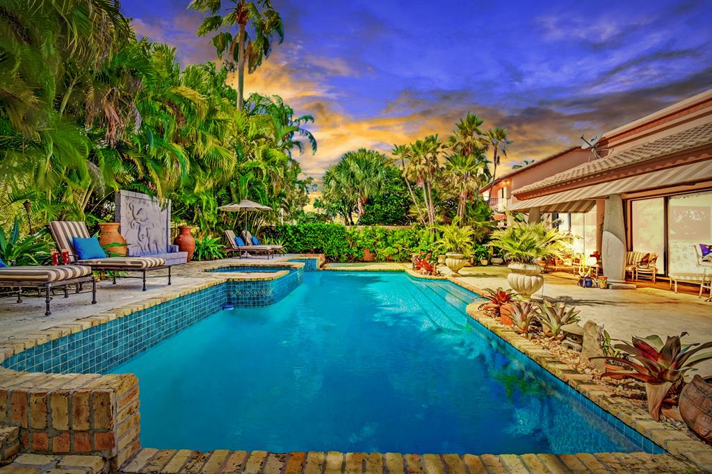 Updated Mediterranean one story single family home in prestigious Villa Flora section of Boca Pointe. This home is unlike and much better than others you have seen before! ''It's all about the enormous heated pool & huge lot!!'' Amazing indoor and over the top outdoor space! Larger than the other lots, this home features a pool that's about double the size of the average pool. Waterfalling from the raised spa, with Chicago Brick pavers around. New roof from 2016 and 500 Gallon gas/propane tank that keeps the generator going for over a week during a hurricane. This very desirable ''Extended Capri'' model w/3 bedrooms features soaring ceilings, spacious open floor plan, fabulous foyer entrance w/sky light, to the clay tile flooring throughout except bedrooms with newer berber carpet