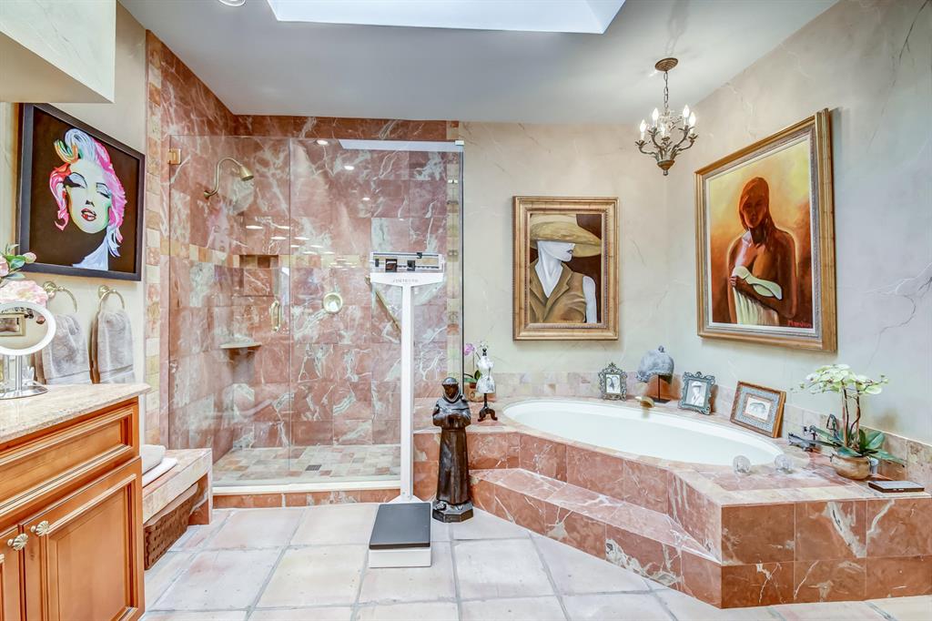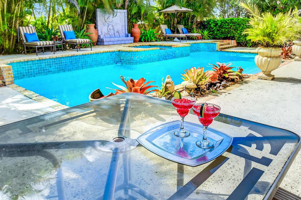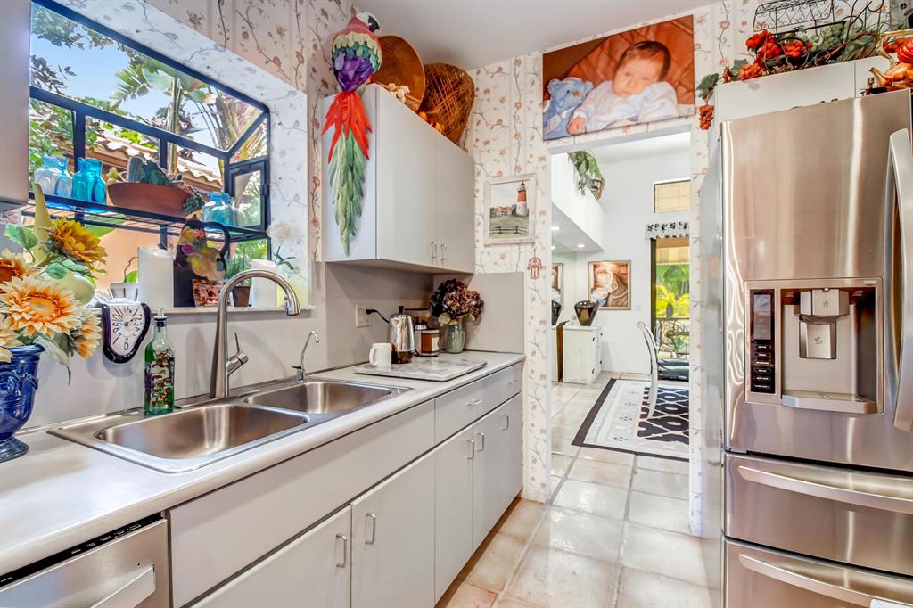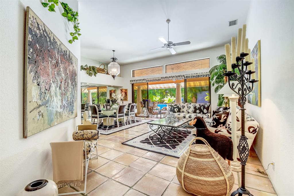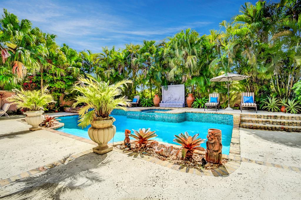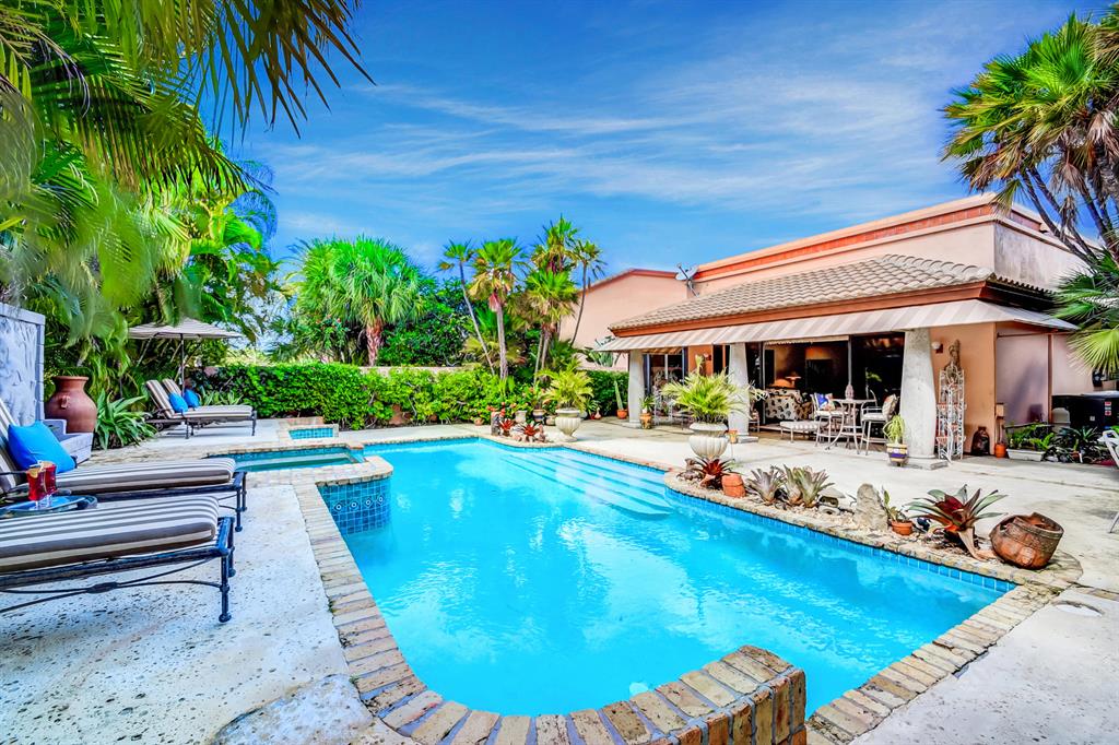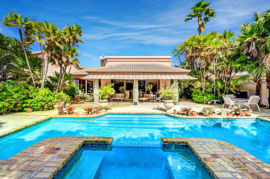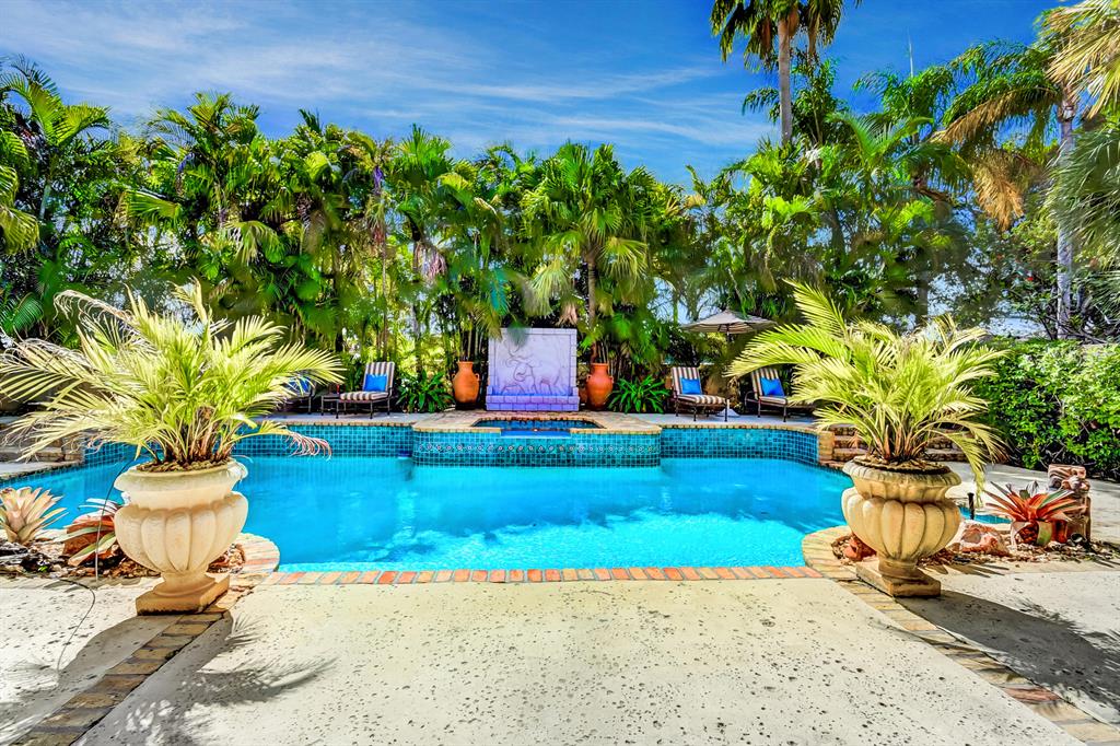 Updated Mediterranean one story single family home in prestigious Villa Flora section of Boca Pointe. This home is unlike and much better than others you have seen before! ''It's all about the enormous heated pool & huge lot!!'' Amazing indoor and over the top outdoor space! Larger than the other lots, this home features a pool that's about double the size of the average pool. Waterfalling from the raised spa, with Chicago Brick pavers around. New roof from 2016 and 500 Gallon gas/propane tank that keeps the generator going for over a week during a hurricane. This very desirable ''Extended Capri'' model w/3 bedrooms features soaring ceilings, spacious open floor plan, fabulous foyer entrance w/sky light, to the clay tile flooring throughout except bedrooms with newer berber carpet
