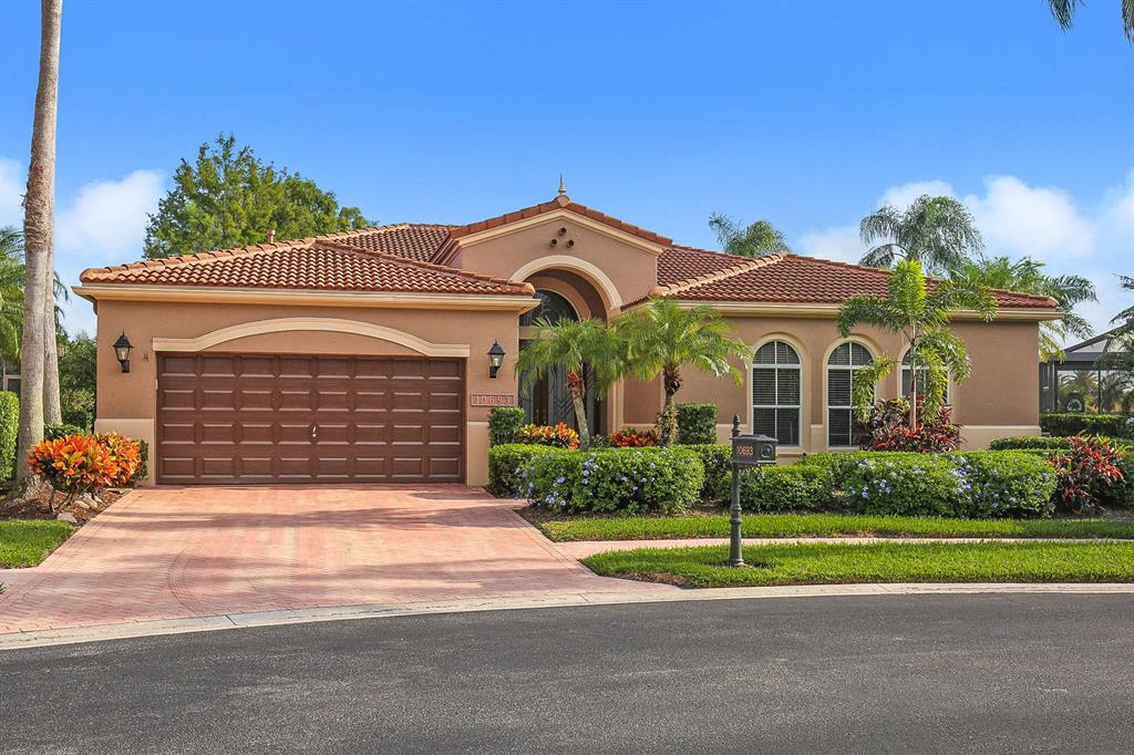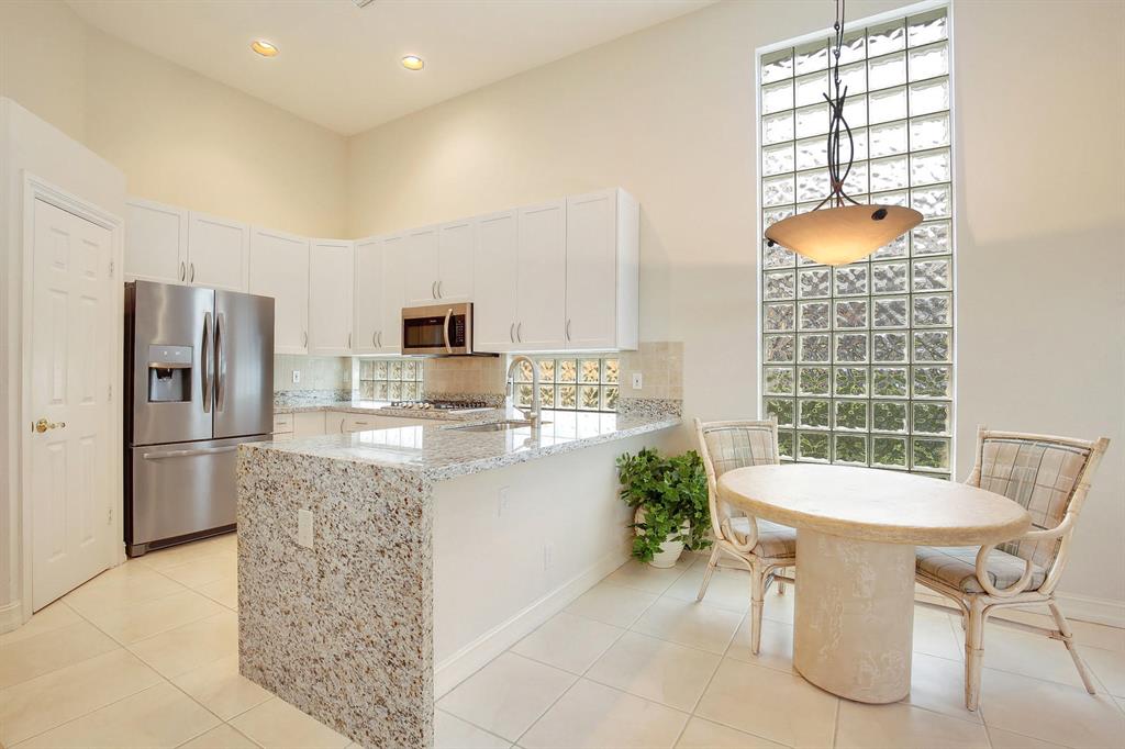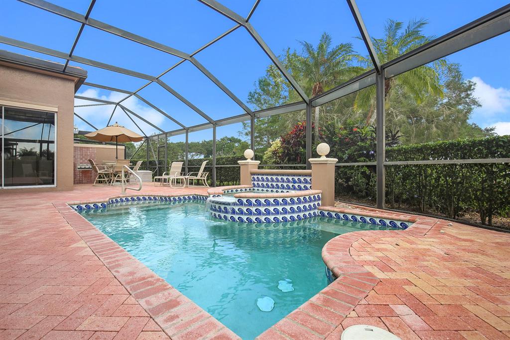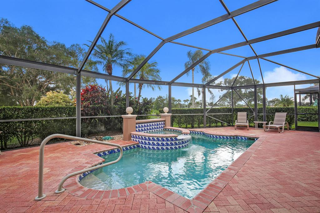 Golfer's Paradise! Double fairway and water views with SE exposure! 3BD+Den/3BA. Gorgeous BRAND NEW KITCHEN with white cabinets, waterfall edge counter top , NEW STAINLESS KITCHEN APPLIANCES, NEWER ROOF 2015, NEWER GUTTERS & DOWNSPOUTS, NEWER POOL HEATER Extended screen patio and garage. Light and bright! NEW Up-dated bathroom cabinets! Den has custom built-in and desk. Extended pool patio and built-in grill. Fabulous location within the club! Furniture is negotiable.
