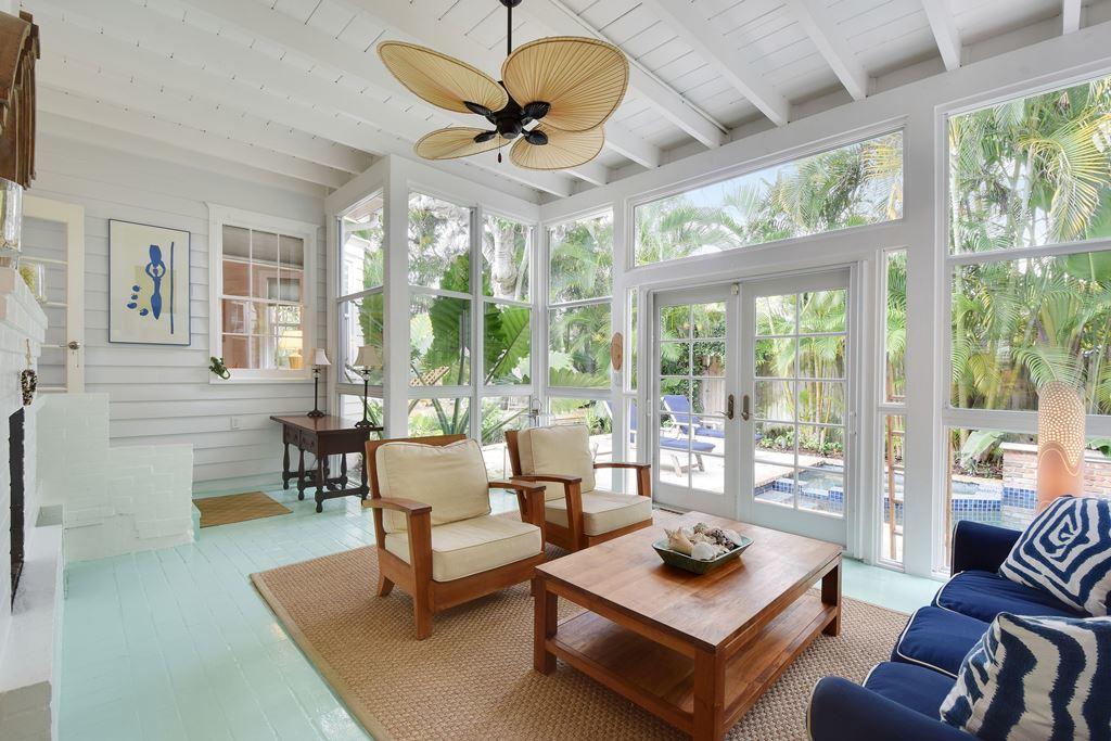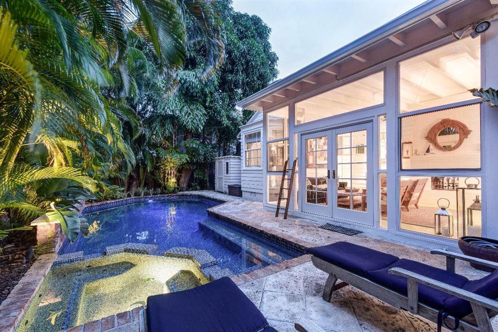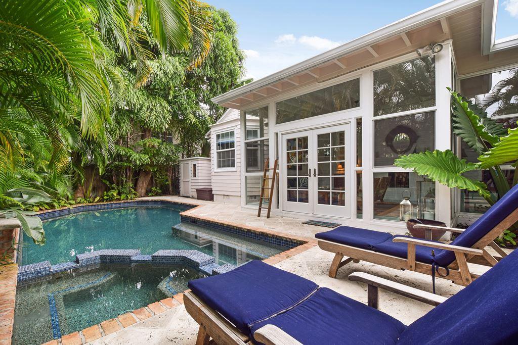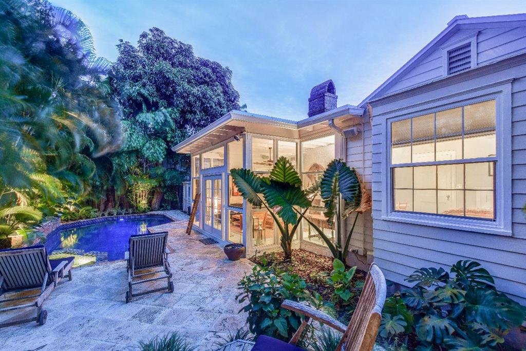 Enjoy coastal living at its best in this beautiful 2,100 sq. ft. 3 bed/2 bath Key West Cottage nestled in the Historic El Cid neighborhood. This casual and comfortable home is located on a quiet street, half block from the Intracoastal waterway and pedestrian/bike promenade which stretches to beautiful downtown West Palm Beach. The charming vintage character has been carefully preserved, while tasteful modern updates like an open concept kitchen-living floor plan and high-vaulted wood beam ceilings add an airy feel to the laid-back, coastal atmosphere. This unique and inviting home also features original hardwood floors, a pass through fireplace, and a spectacular sunroom with soaring floor to ceiling impact windows and painted brick floor which provide seamless