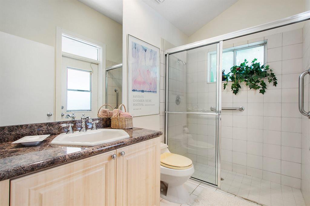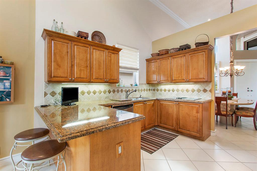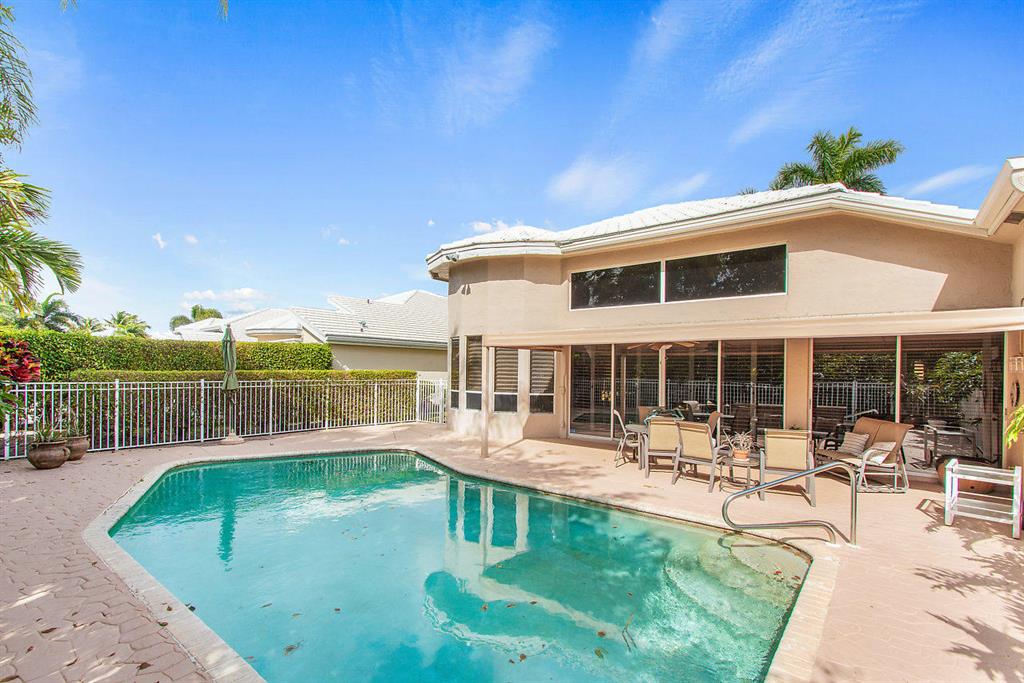 Located on a quiet cul de sac in the enclave of Huntington Park in Polo CC, this one story pool home features an open floor plan, expansive rooms, volume ceilings, his and her master baths, private den, and plantation shutters. The southern exposure brings sunlight into the updated kitchen that features a surround of windows in the breakfast area.A very private pool and patio make entertaining a breeze.The residence has a classic contemporary feel and the perfect home for South Florida's casual lifestyle.Pool heater not warranted.