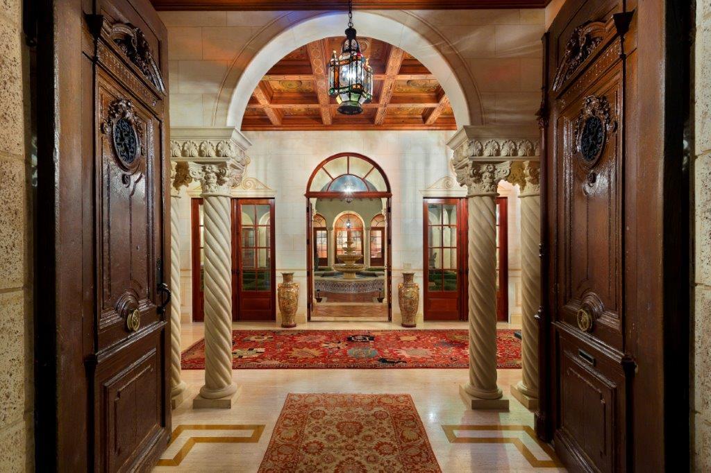 Grande Villa on Via Bellaria on over one acre in the heart of the Estate Section. Enjoy impressive and private gardens, engaging indoor and outdoor seating and entertainment areas which beautifully surround warm and inviting interior spaces. The home has 14' ceilings on both floors, formal living and dining rooms, master BR has peaks of the ocean w/his & her baths and closets, fun gathering rooms, separate cabana with full bath, basement storage. Two 2-car garages, full house generator. Beach access via keyed entrance at the top of Via Bellaria.