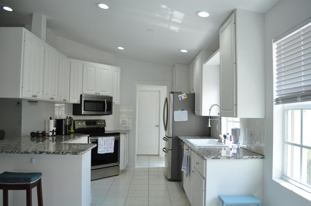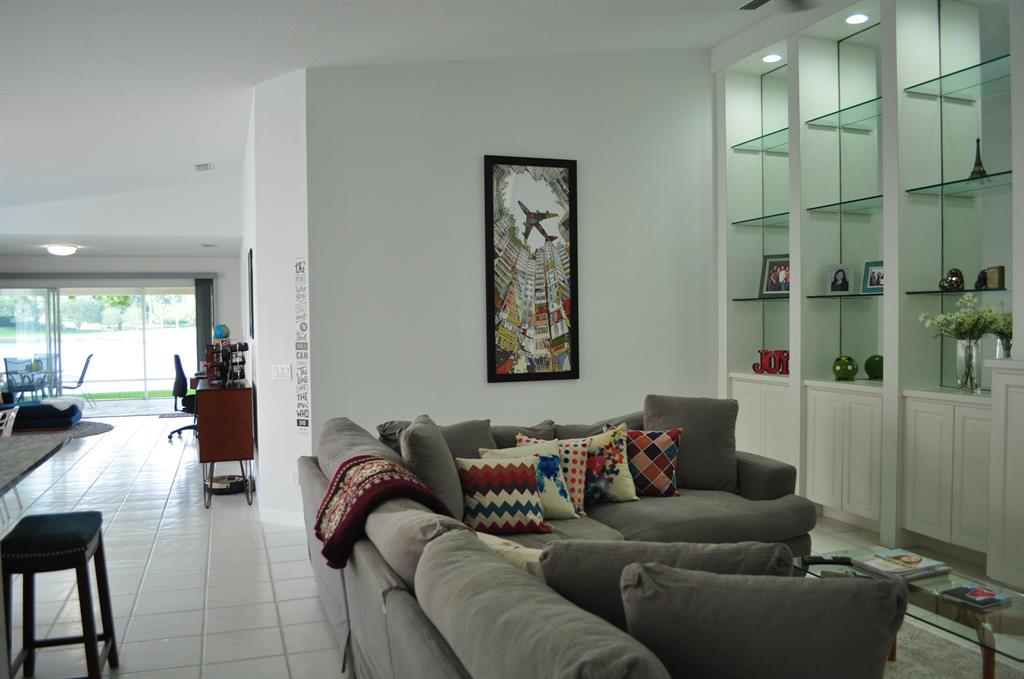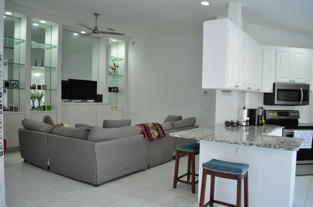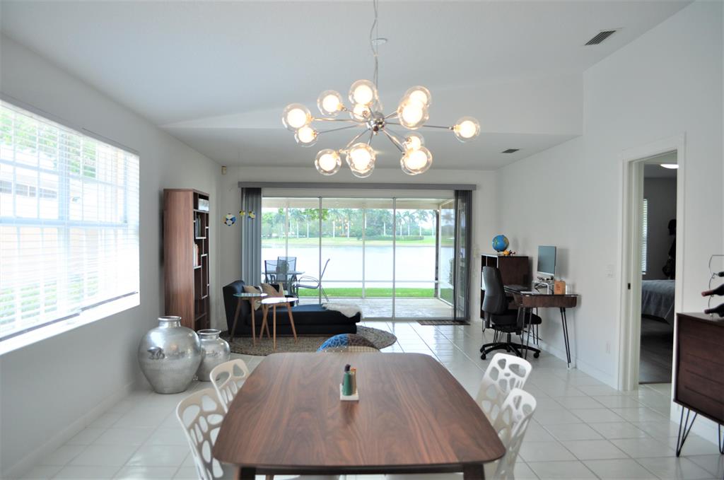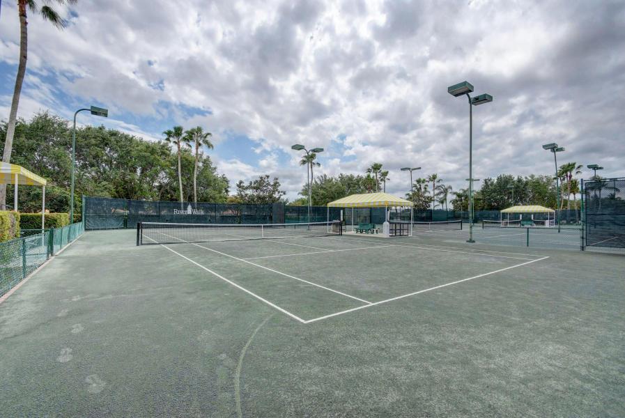 Modern updated home. Super light and airy with a touch of glam! New modern furniture included in sale! Low HOA fees that include a lot!Featuring a renovated kitchen with new stainless steel appliances and granite counter tops. New modern tone wood flooring in bedrooms, walk in closets in both rooms, updated bathrooms, new washer & dryer in laundry room, accordion hurricane shutters on all windows and glass doors plus hurricane grade garage door. large screened in lanai with expansive private lake view! Plus a 2 car garage! Riverwalk offer excellent amenities such as manned gated entrance, 2 community pools, tennis courts, Post office, gas station, salon, convenience store, restaurant, gorgeous mature landscaping and so much more.