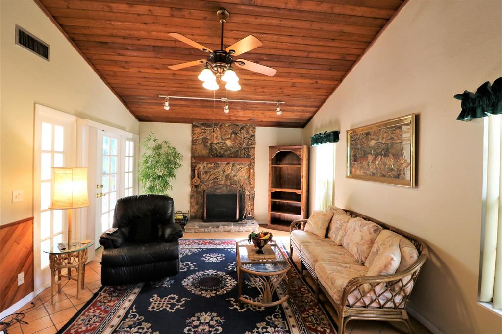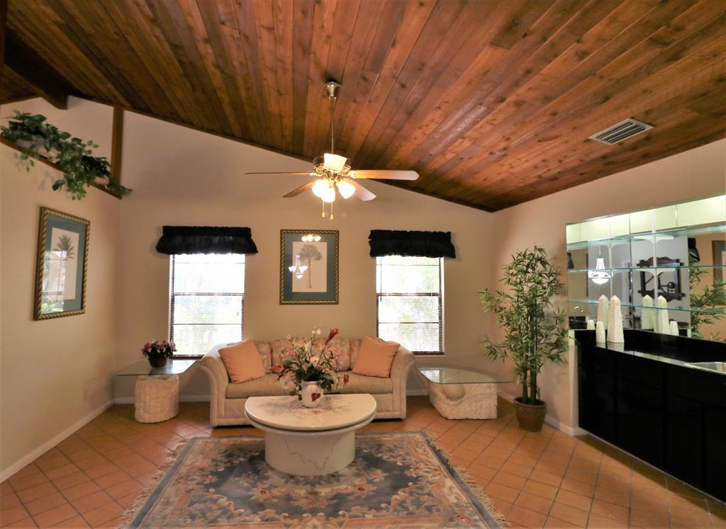 THIS CHARMING HOME IS SITUATED ON A CUL-DE-SAC AND HAS THE FEEL OF A COUNTRY GET AWAY WITH A TOUCH OF YOUR OWN PRIVATE OASIS. ONCE INSIDE, YOU WILL NOT BELIEVE HOW SPACIOUS AND COZY IT IS. FROM THE VAULTED CEDAR CEILINGS, TO THE WOOD BURNING FIREPLACE. UPDATED KITCHEN AND TILE THROUGHOUT. POUR A DRINK FROM YOUR PERSONAL WET BAR AS YOU SIT BY THE FIRE. STEP OUT ONTO YOUR TROPICAL PARADISE TO ENJOY YOUR BEAUTIFUL FENCED IN BACK YARD WITH FRIENDS AND FAMILY! 1 CAR GARAGE WAS CONVERTED TO AN OFFICE/WORK SHOP WITH 2 WORK BENCHES THAT STAY, BUT IT CAN BE CONVERTED BACK INTO A GARAGE. AN ADDED BONUS ARE THE AMENITIES THE COMMUNITY OFFERS: CLUB HOUSE WITH POOL TABLES, LARGE SWIMMING POOL, HANDBALL COURTS AND A GYM.