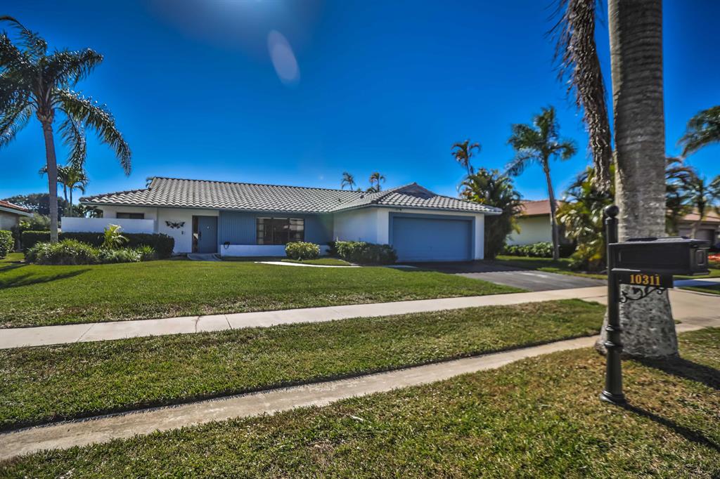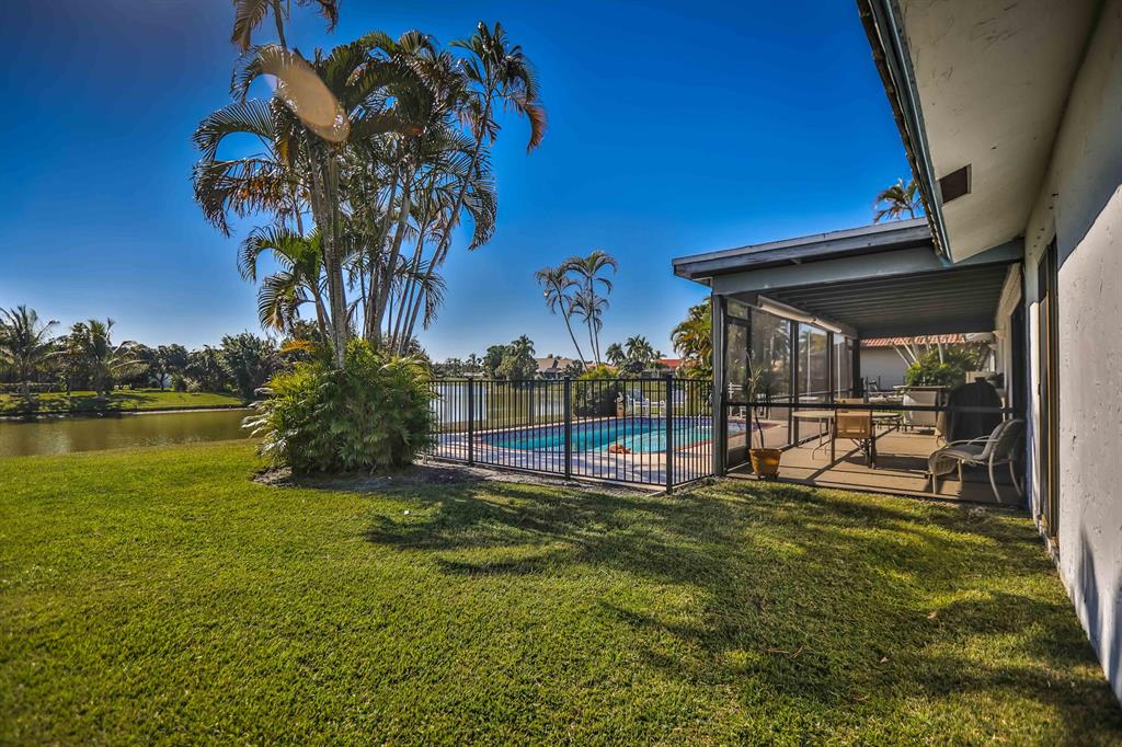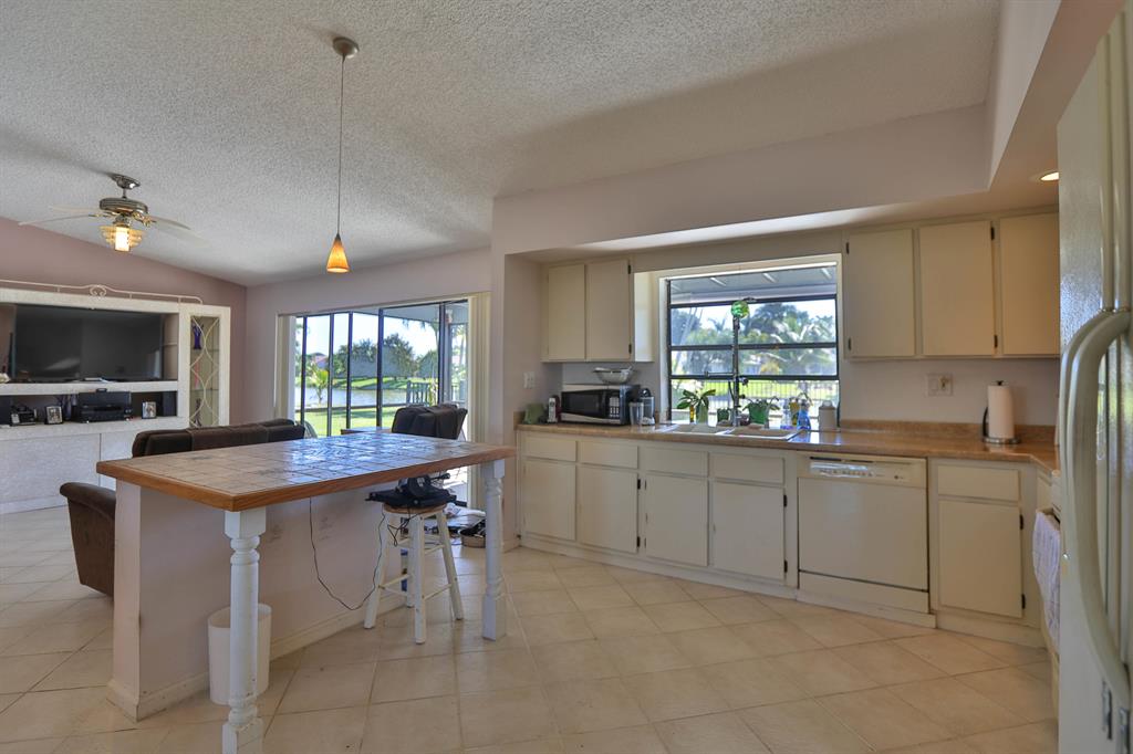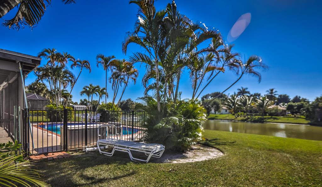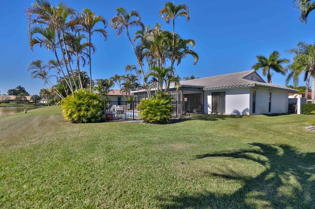 Opportunity knocks. This charming 3 bedroom 2 bath pool home features a split bedroom floor plan with an open kitchen, high vaulted ceilings in the main living areas, and lots and lots of natural light. Cast your gaze at the long, stunning lake views from the pool deck, covered patio, and family room. The home features a 2005 roof, but the interior is a bit dated, so find the inner designer in you and personalize it to your own tastes. Located in Boca Greens, a quiet golfing community with NO mandatory membership and a 24 hour manned gate, just west of 441 in prestigious Boca Raton. Enjoy breathtaking lake-front sunsets from your pool, short walks to the driving range to work on your game, and the privacy of the neighborhood. Enter the full property address online for an HD tour