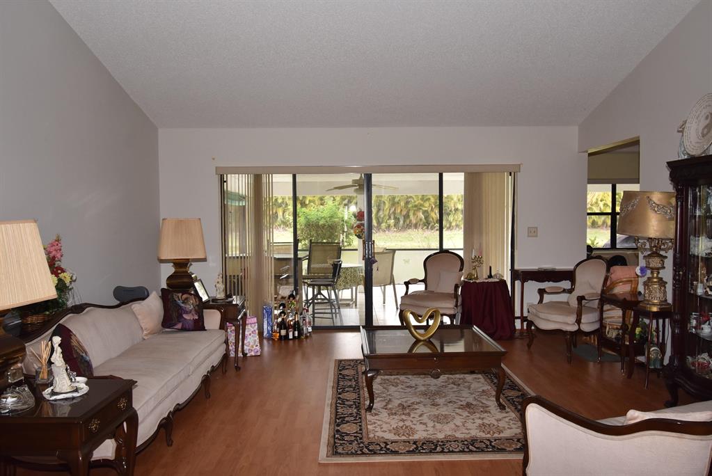 Superior Location! Pet Friendly Single Family 3 bed 2 bath home backs up to the 4th hole of adjacent country club. Sprawling open floor plan welcomes you with a generous formal living area w/vaulted ceilings and sliders leading to fabulous expanded enclosed screened patio overlooking canal and golf course. Kitchen opens to family room and add'l set of sliders to patio which makes entertaining a breeze. Laminate flooring throughout homes with tile in bathrooms - no carpet here! Spacious master bedroom w/dual sinks and step down shower in master bath. A/C Inst May '16, Wtr Htr Nov '12, BFS Prem Warranty on ALL appliances! Just a 5 min walk away to Pool/Clubhouse/Library & Tennis Courts nearby. Low Maintenance fees. Close to everything grocery stores, food, shopping, medical centers, & more!